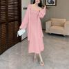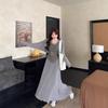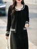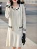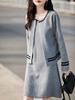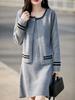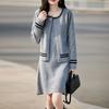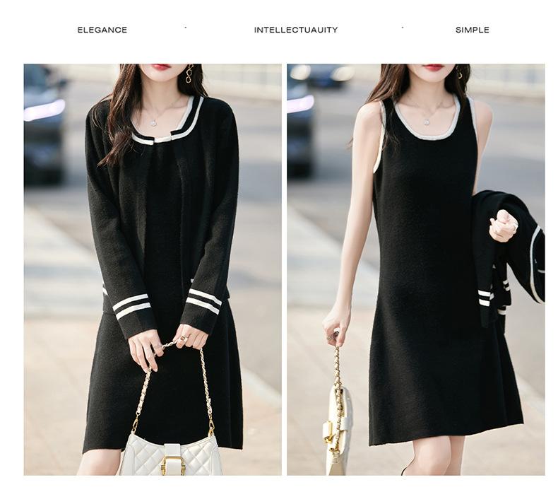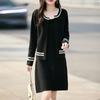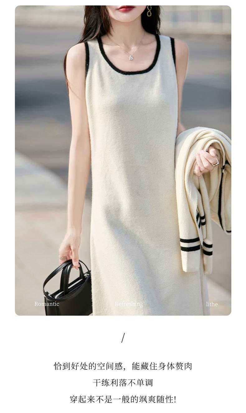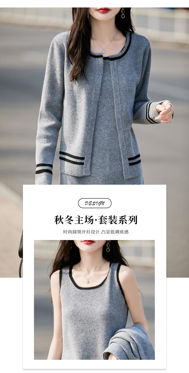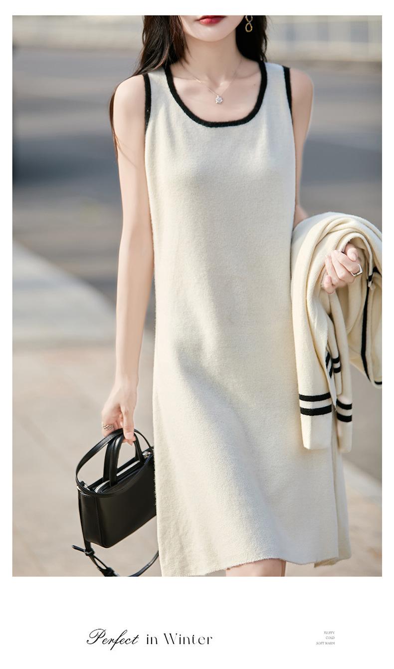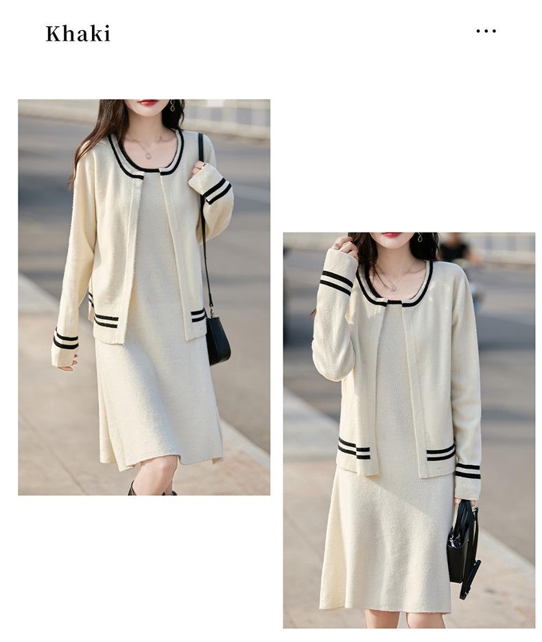2025 Otoño/Invierno Nuevo Estilo 100% Lana Pura Set Vestido Cárdigan para Mujer Suelto Bloque de Color Capas Conjunto de Dos Piezas