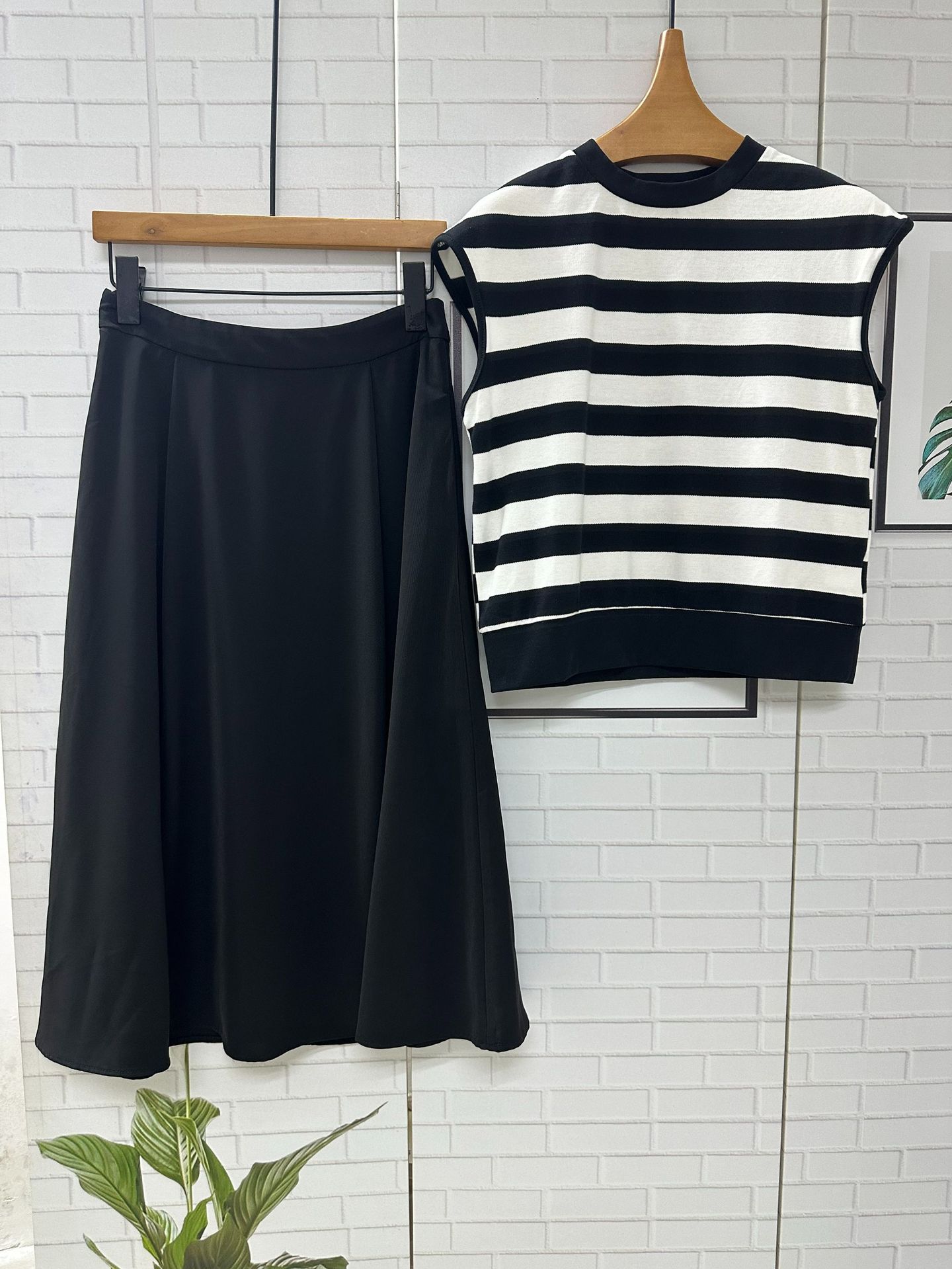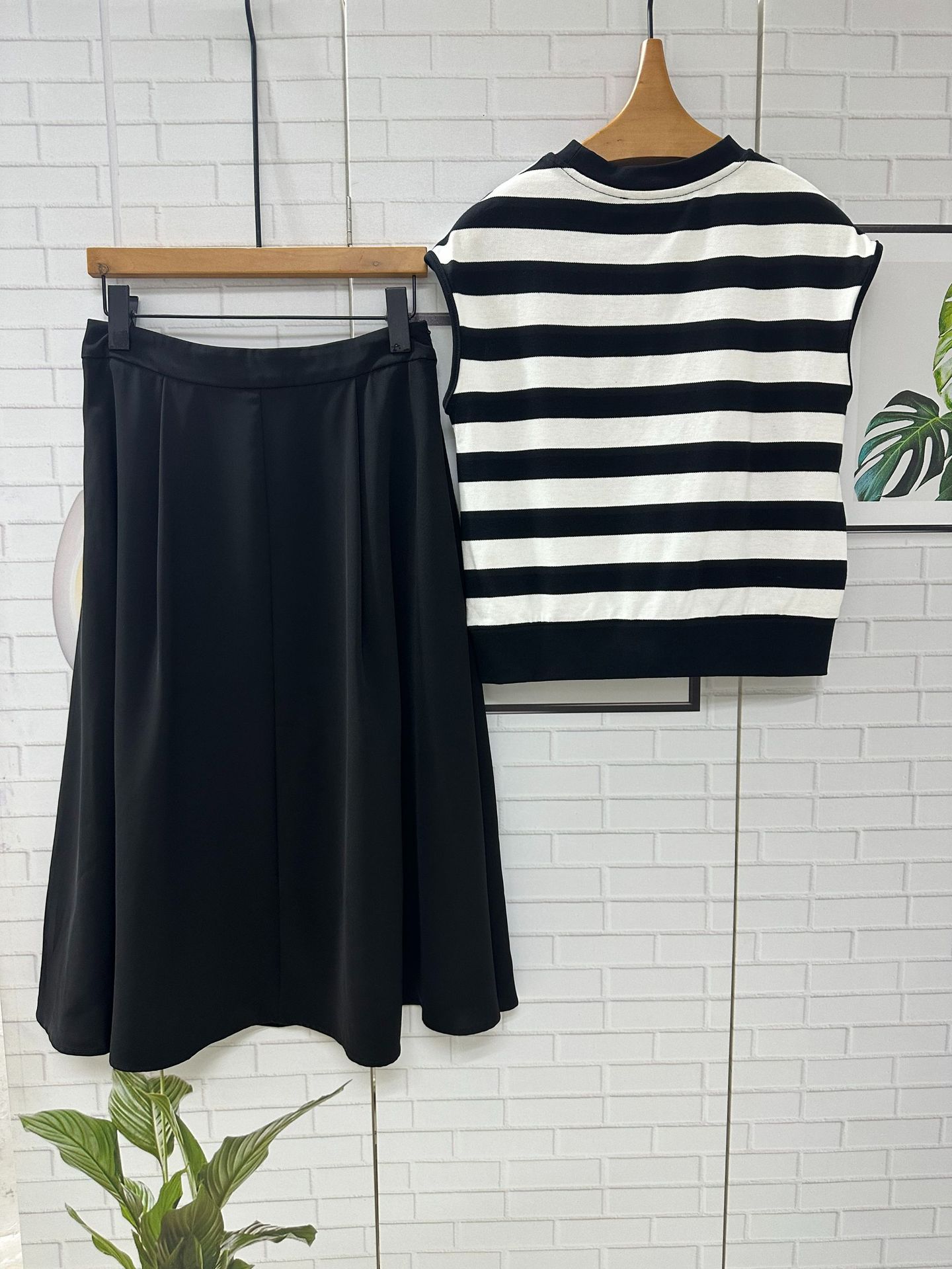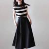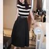 Falda de Traje a Rayas Verano 2025 Nueva Falda Ropa de Mujer Vestidito Negro Falda de Cintura Alta Falda Midi Falda de Dos Piezas