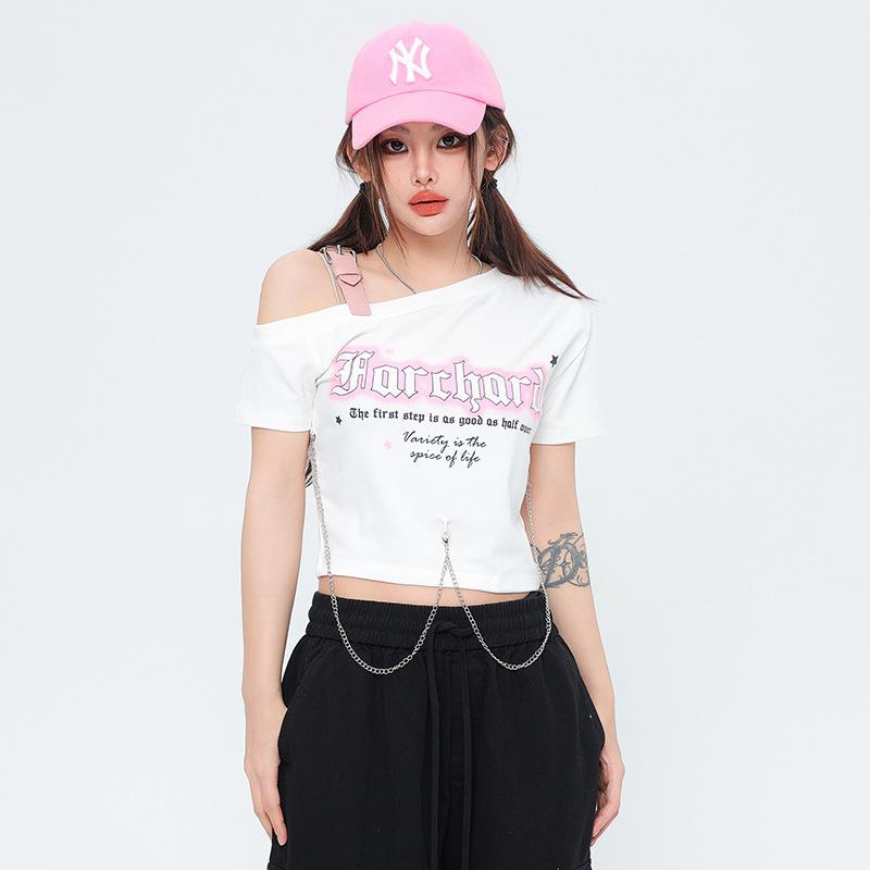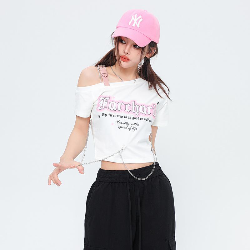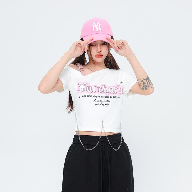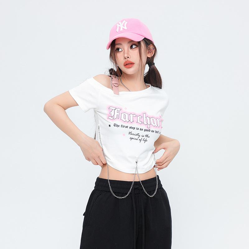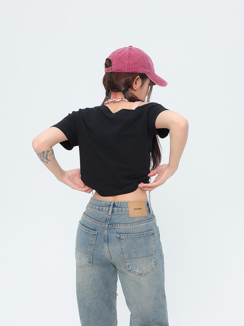 Diseño Nicho Retro Americano Dulce Cool Spice Top de Tirantes Moda de Marca Ombligo Corto Manga Corta Camiseta Moda Femenina