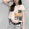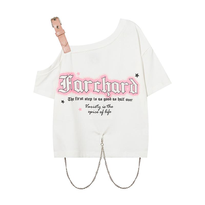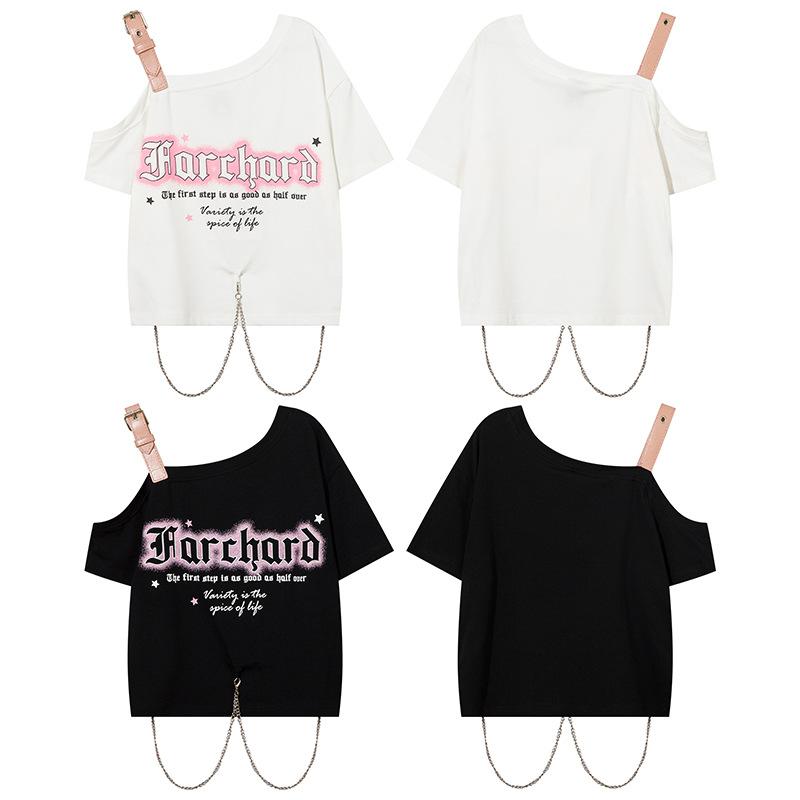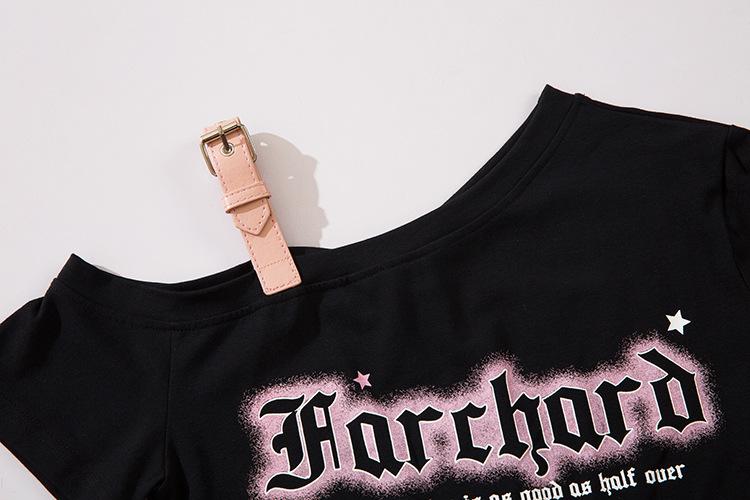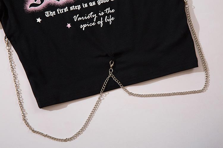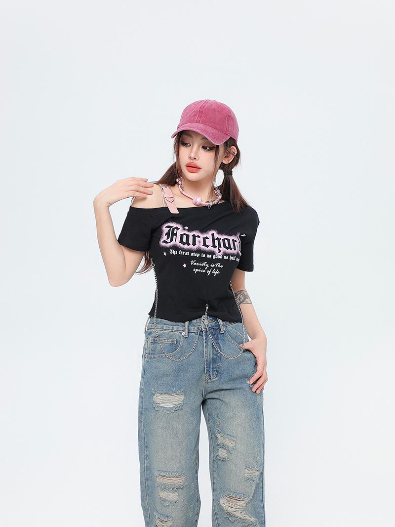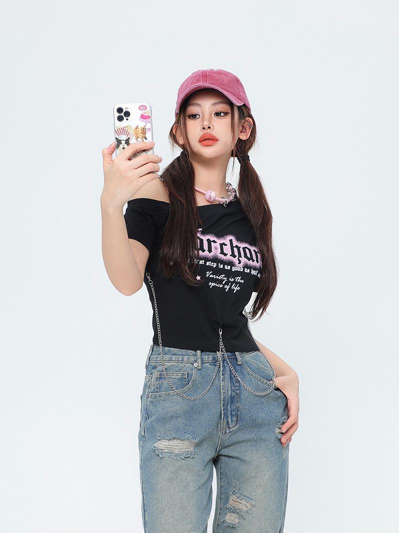 Diseño Nicho Retro Americano Dulce Cool Spice Top de Tirantes Moda de Marca Ombligo Corto Manga Corta Camiseta Moda Femenina