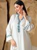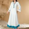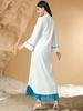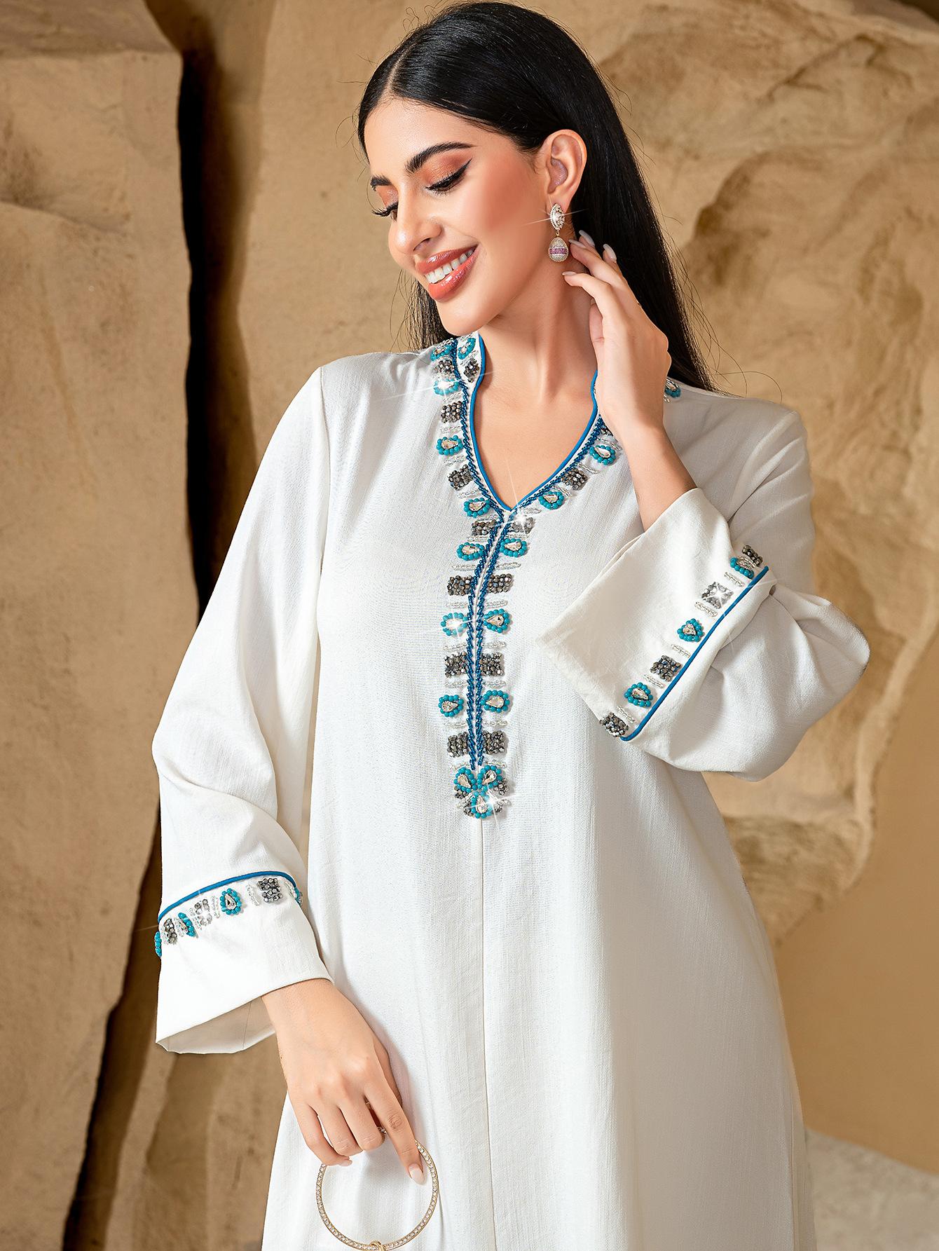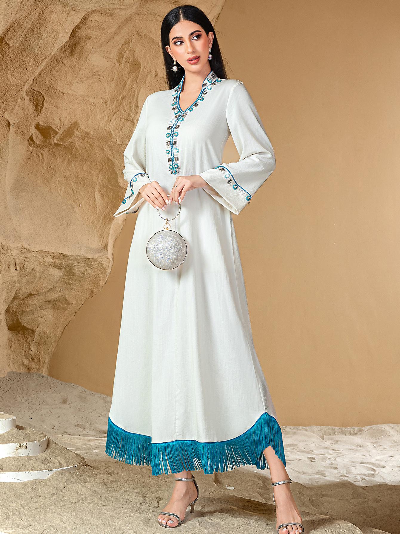 BA5013 vestido blanco hecho a mano con cuentas y borla azul