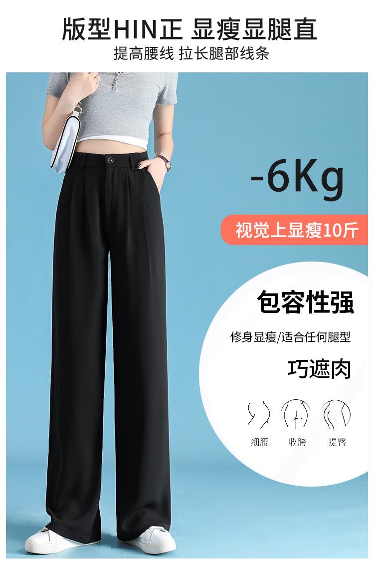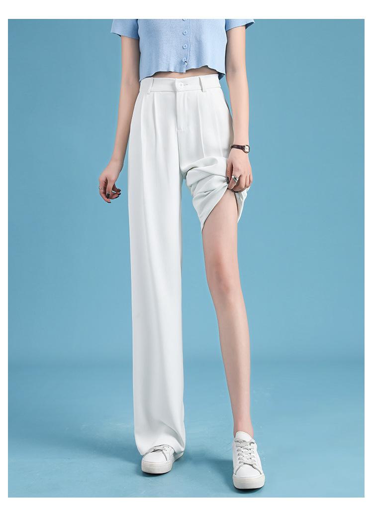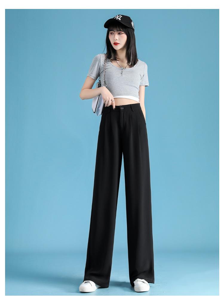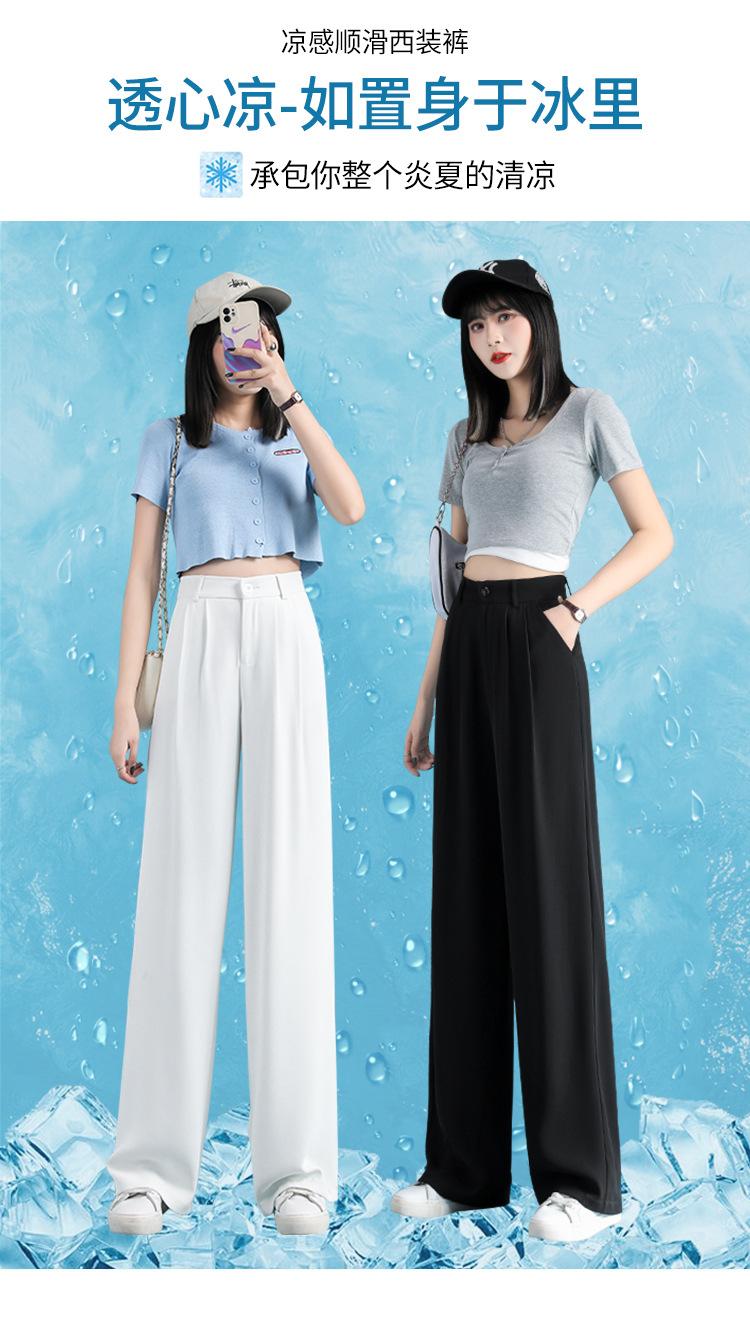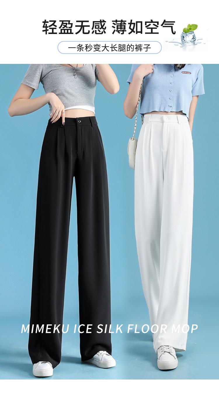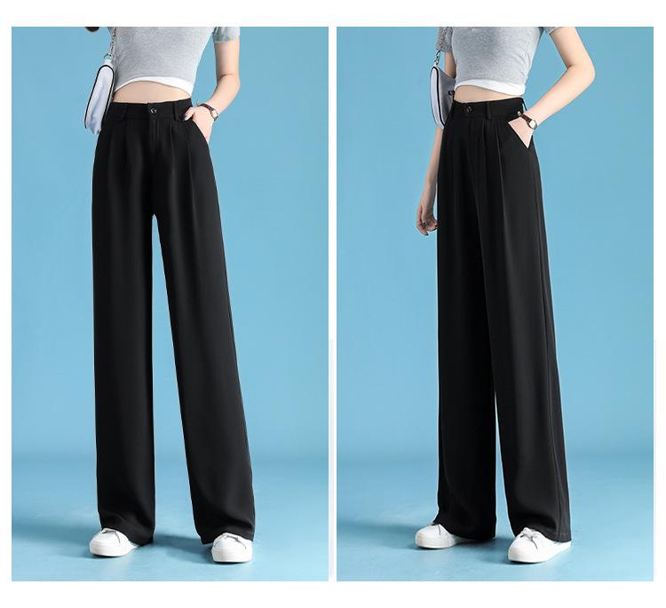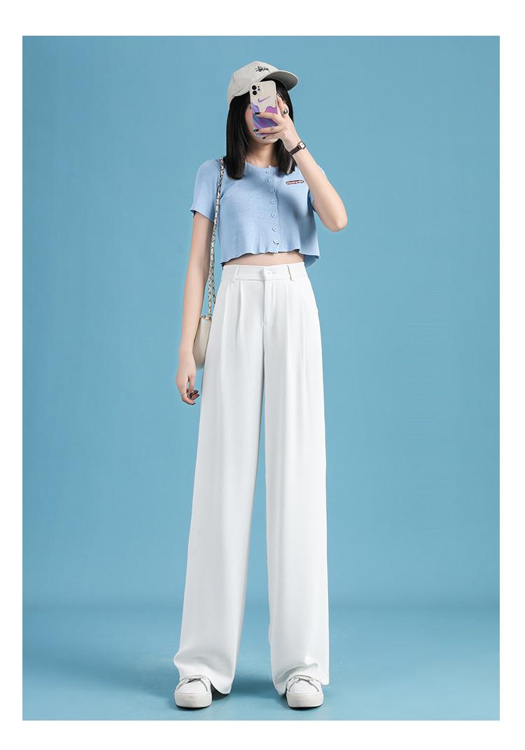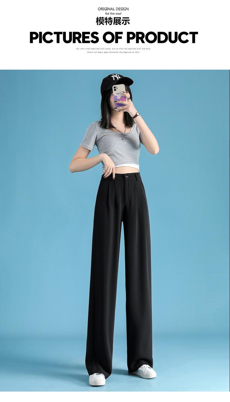 Pantalones de Pierna Ancha de Seda de Hielo para Mujer Verano Delgados Cintura Alta Holgados Rectos Casuales Ajustados Pantalones de Traje Estrechos