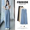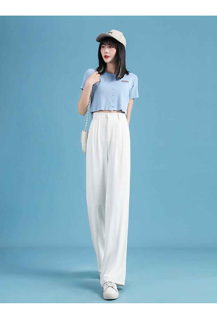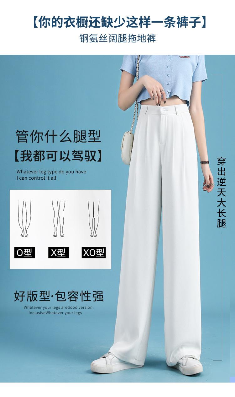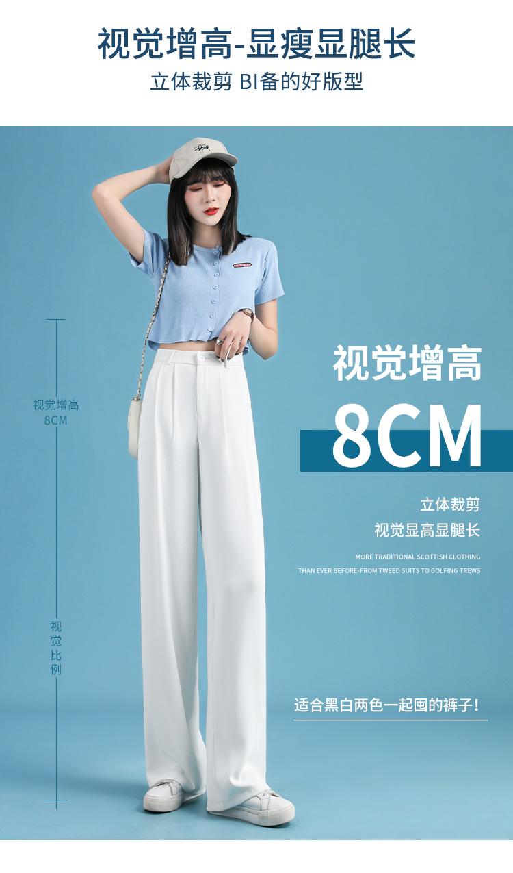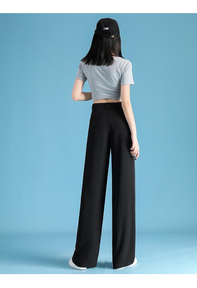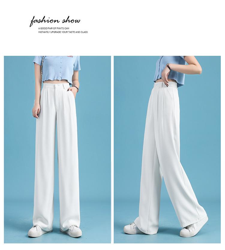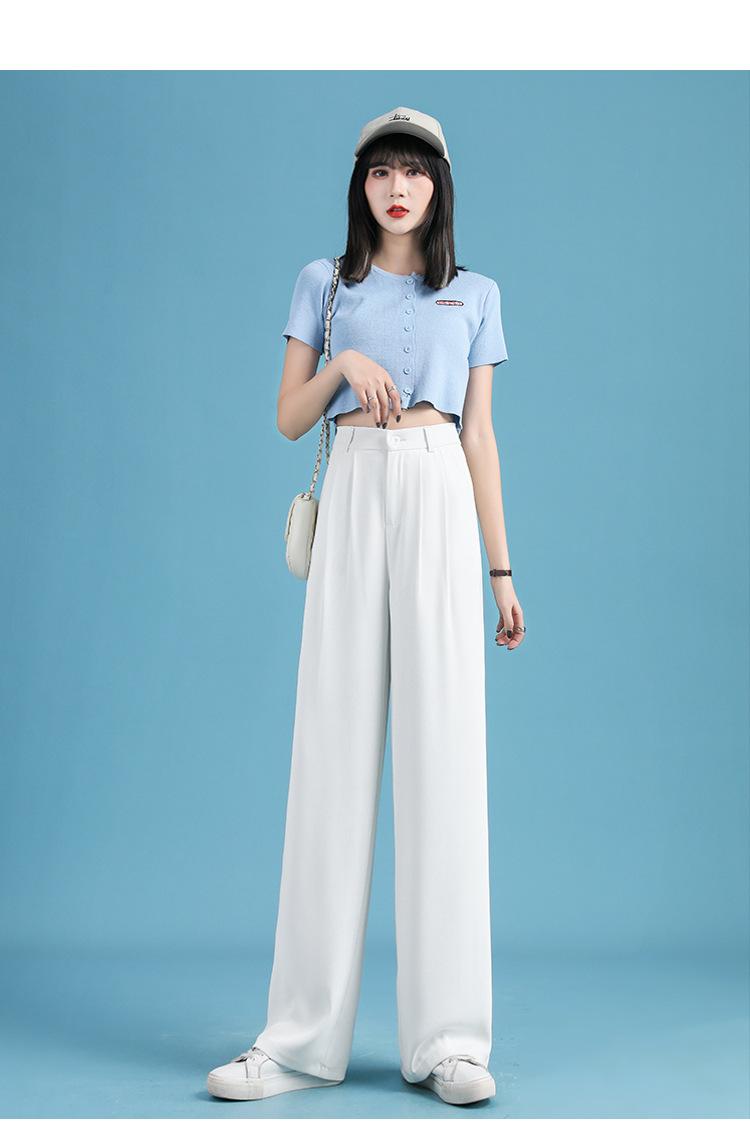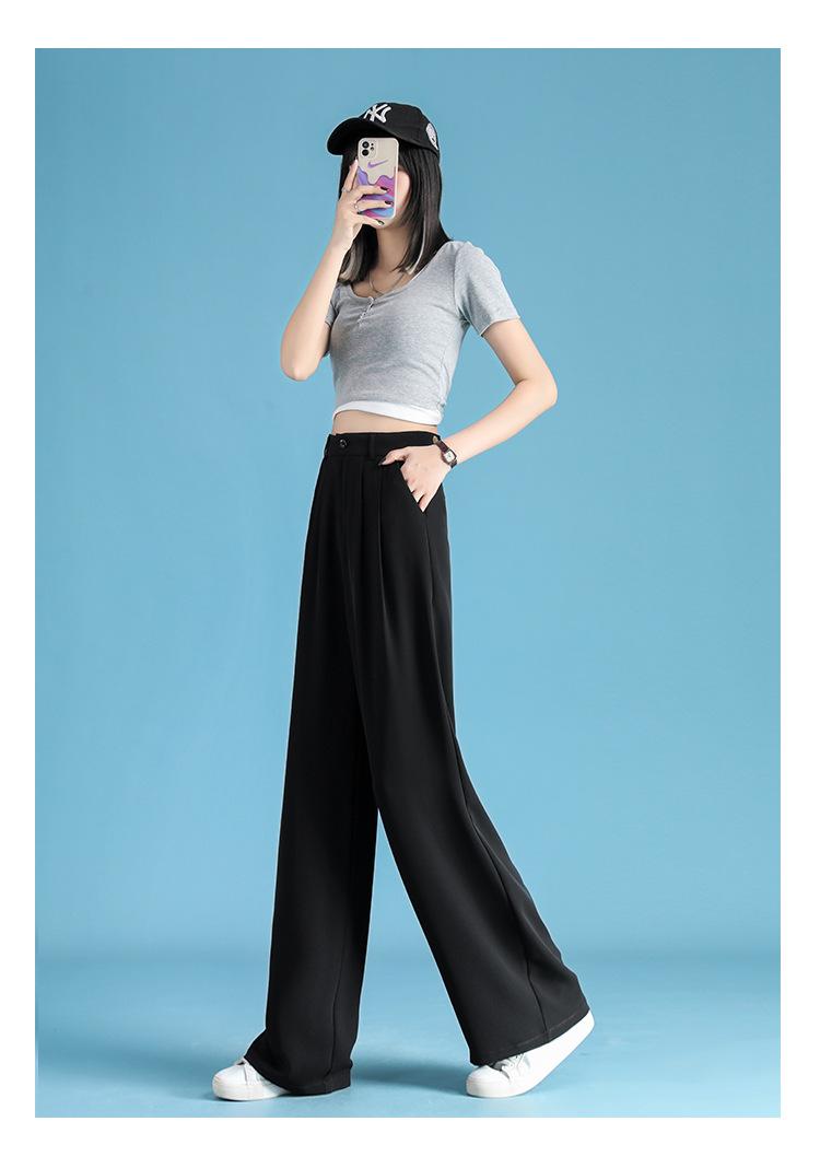 Pantalones de Pierna Ancha de Seda de Hielo para Mujer Verano Delgados Cintura Alta Holgados Rectos Casuales Ajustados Pantalones de Traje Estrechos