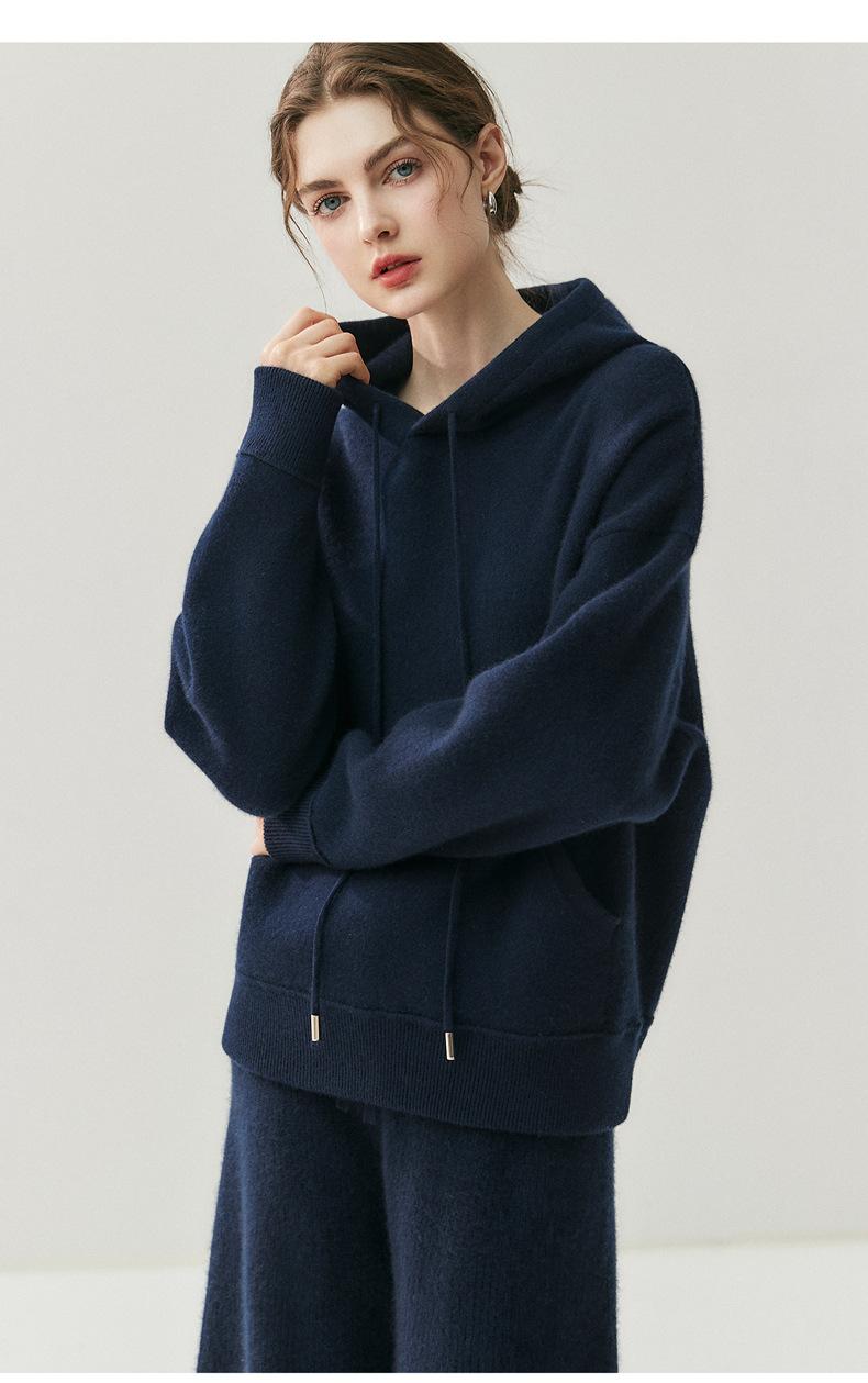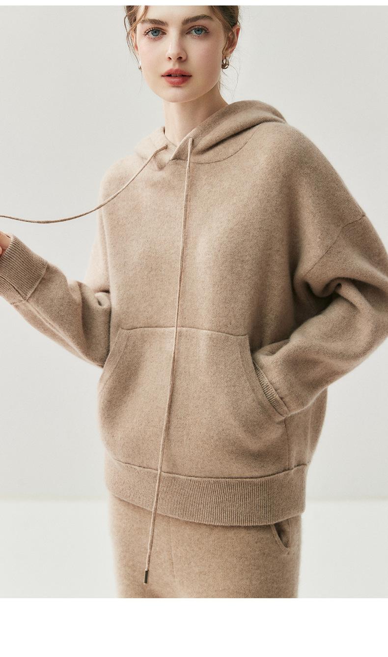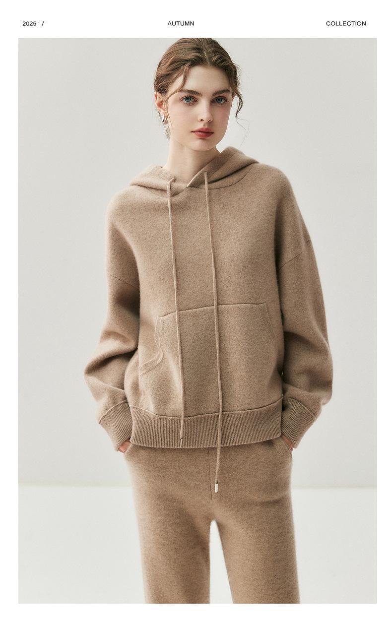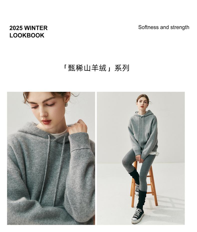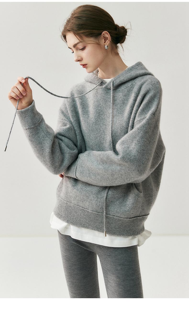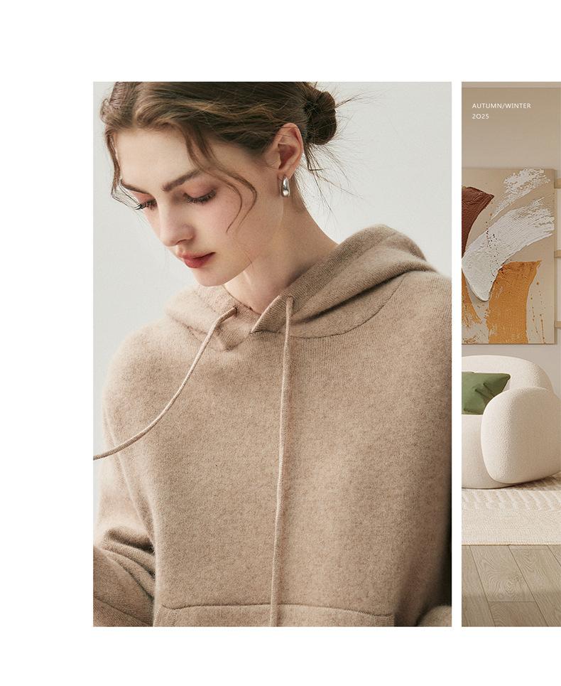 Suéter de Cachemira Grueso Sudadera con Capucha para Mujer 25 Otoño/Invierno Suéter Holgado Estilo Lazy Sudadera con Capucha Tejida Top de Alta Gama
