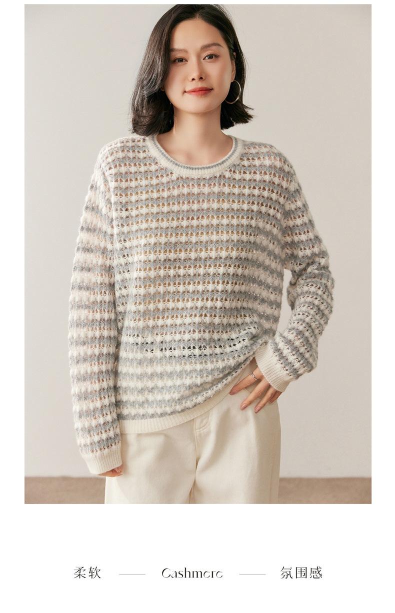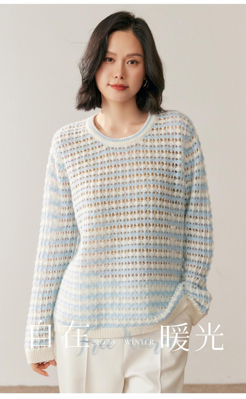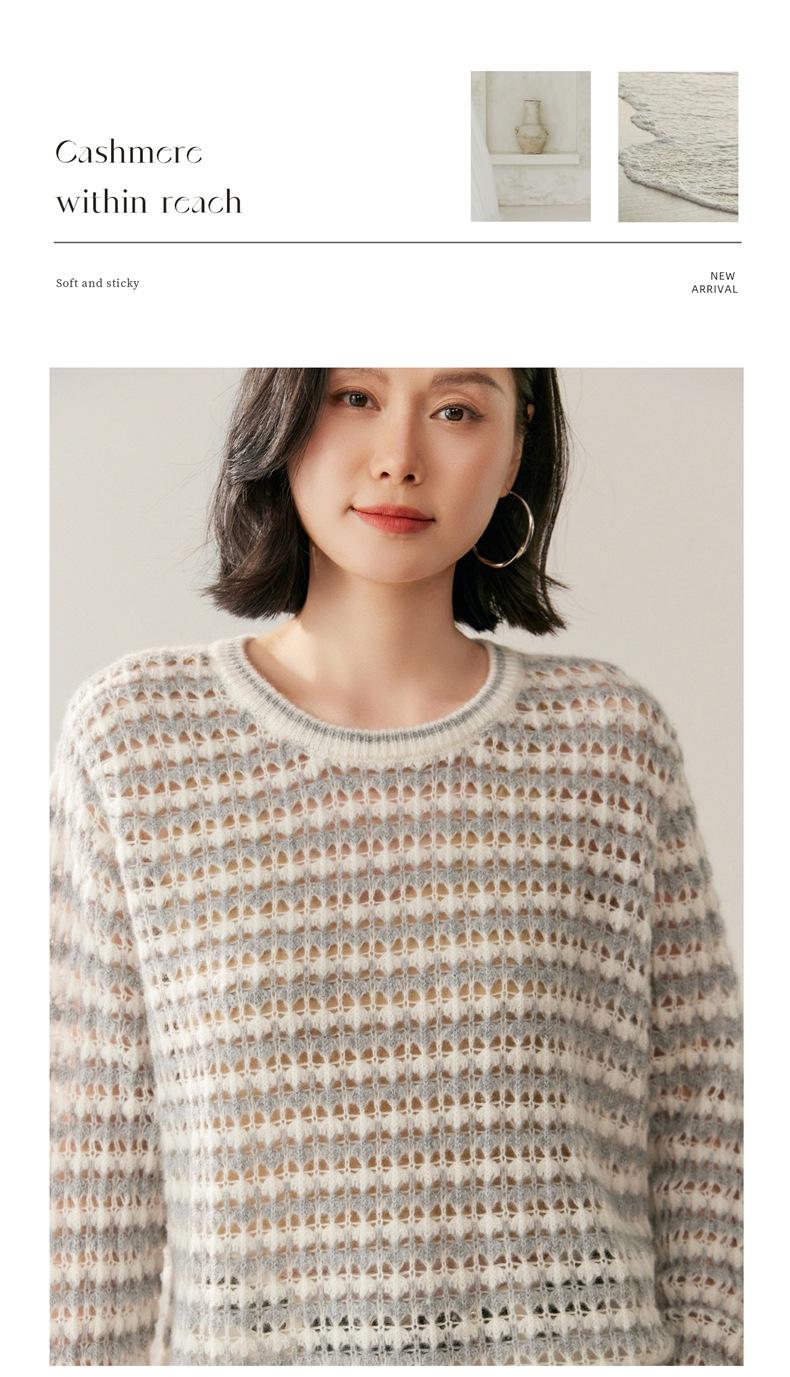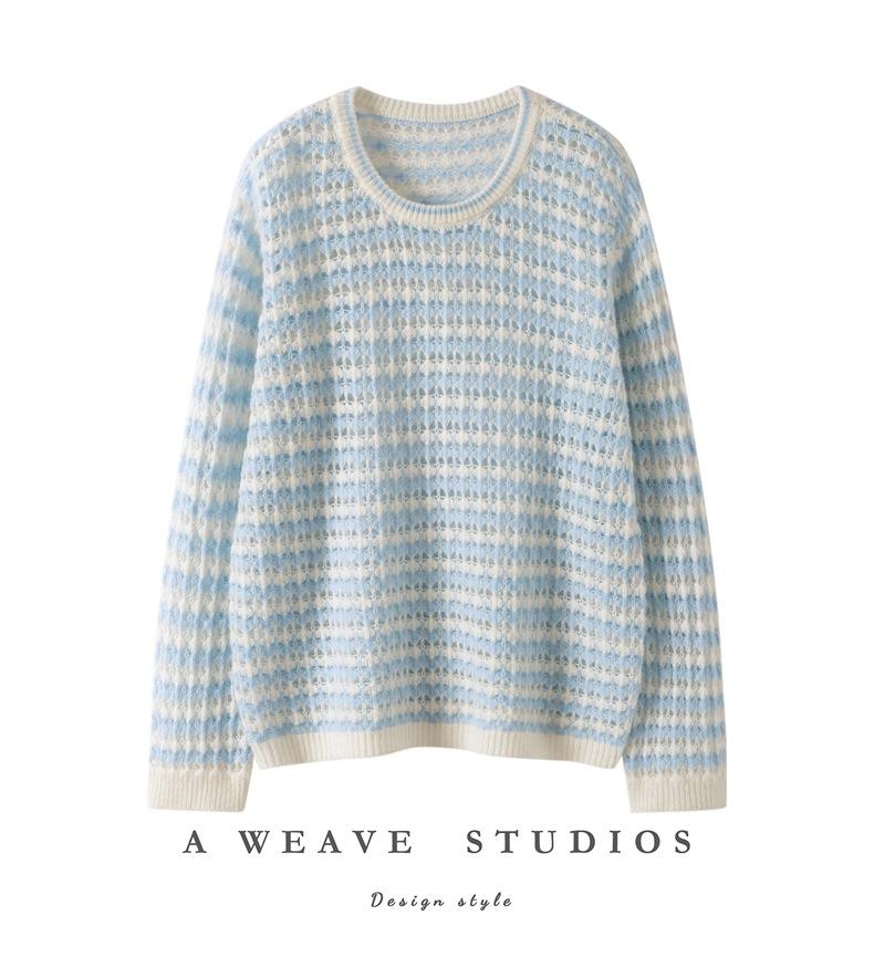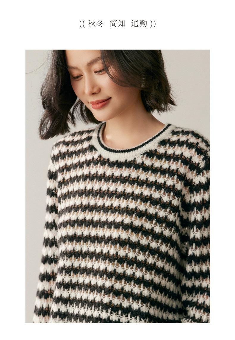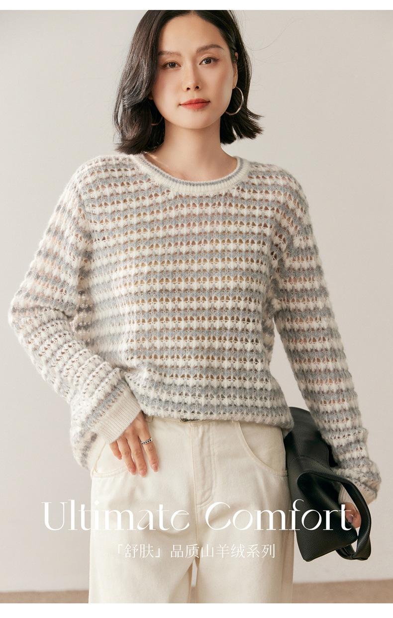 Nueva Capa Base de Punto de Cachemira Otoño/Invierno Cuello Redondo Calado Rayado Cómoda Suave Para Ir al Trabajo Versátil Moda de Mujer