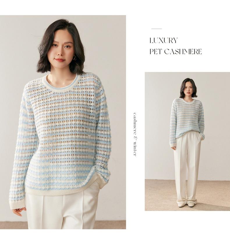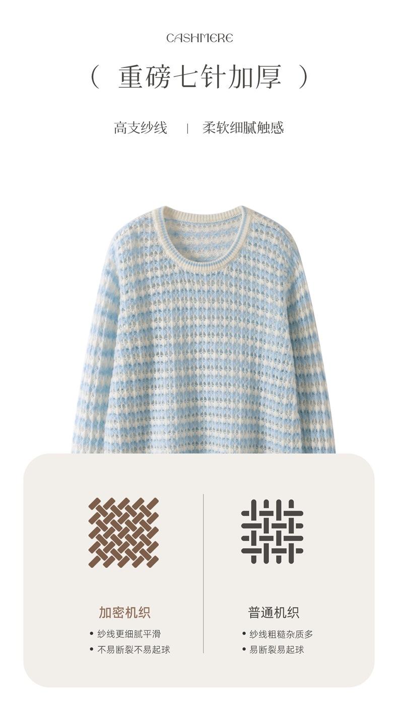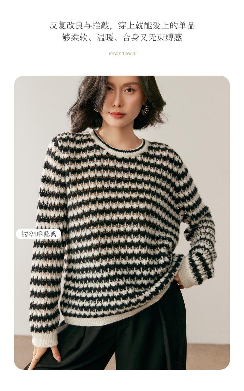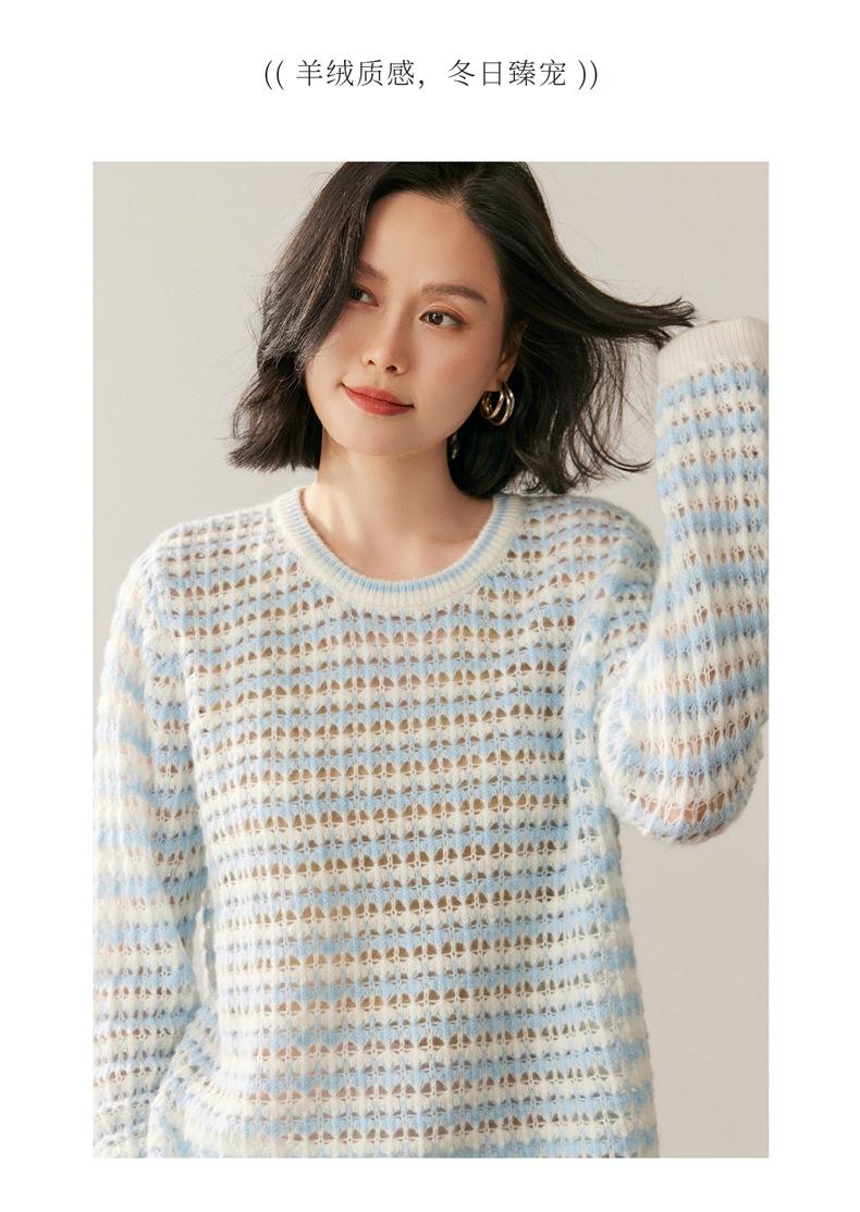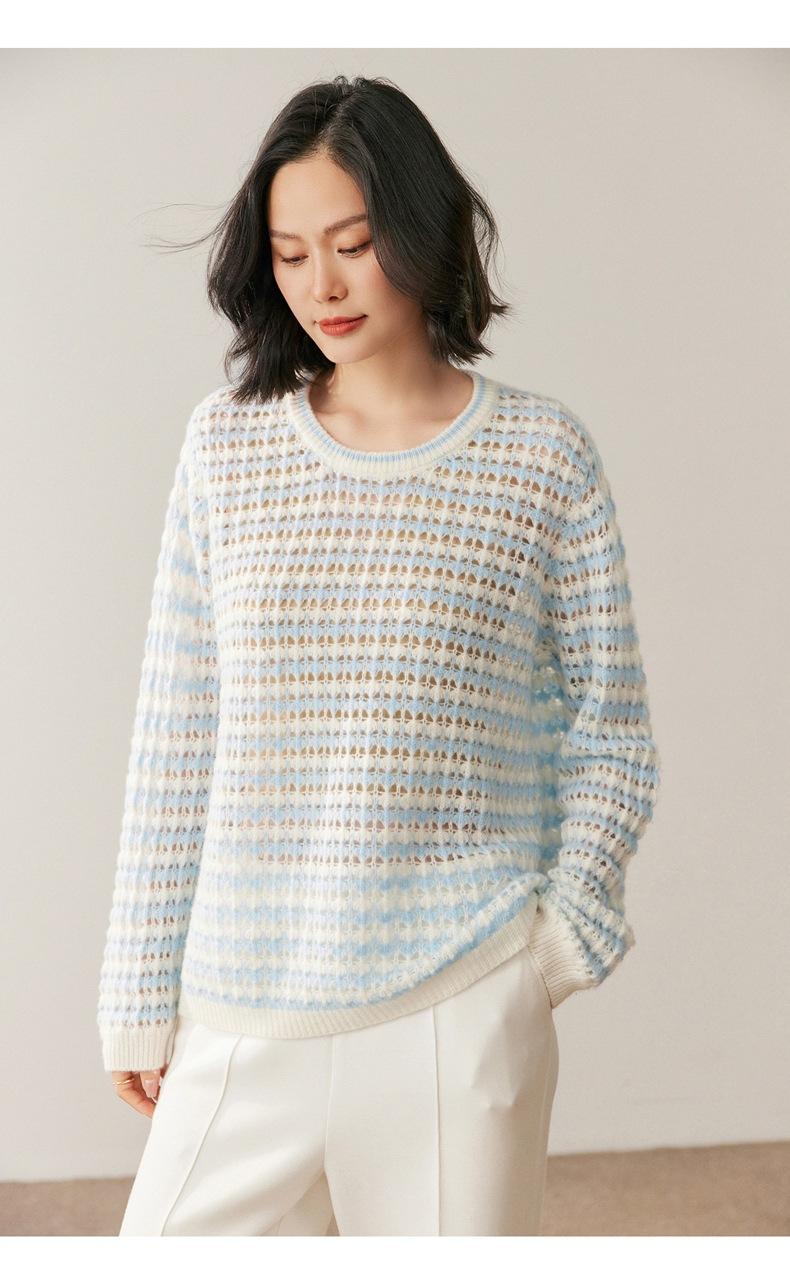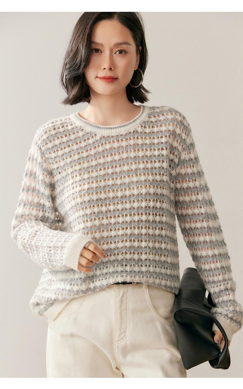Nueva Capa Base de Punto de Cachemira Otoño/Invierno Cuello Redondo Calado Rayado Cómoda Suave Para Ir al Trabajo Versátil Moda de Mujer