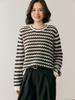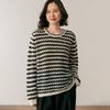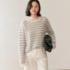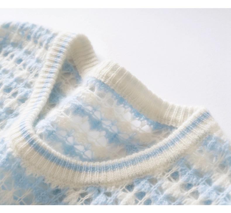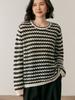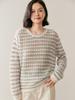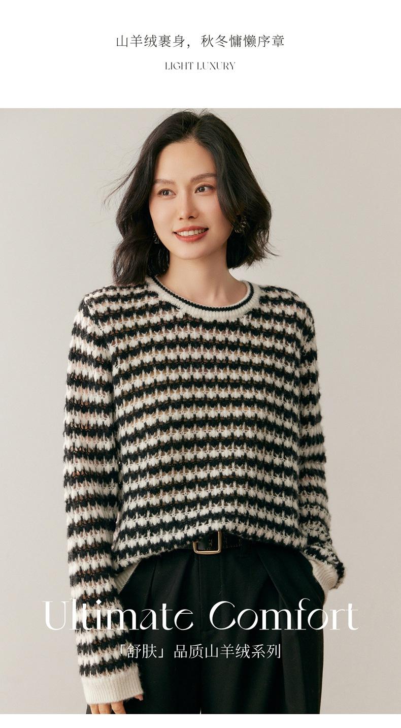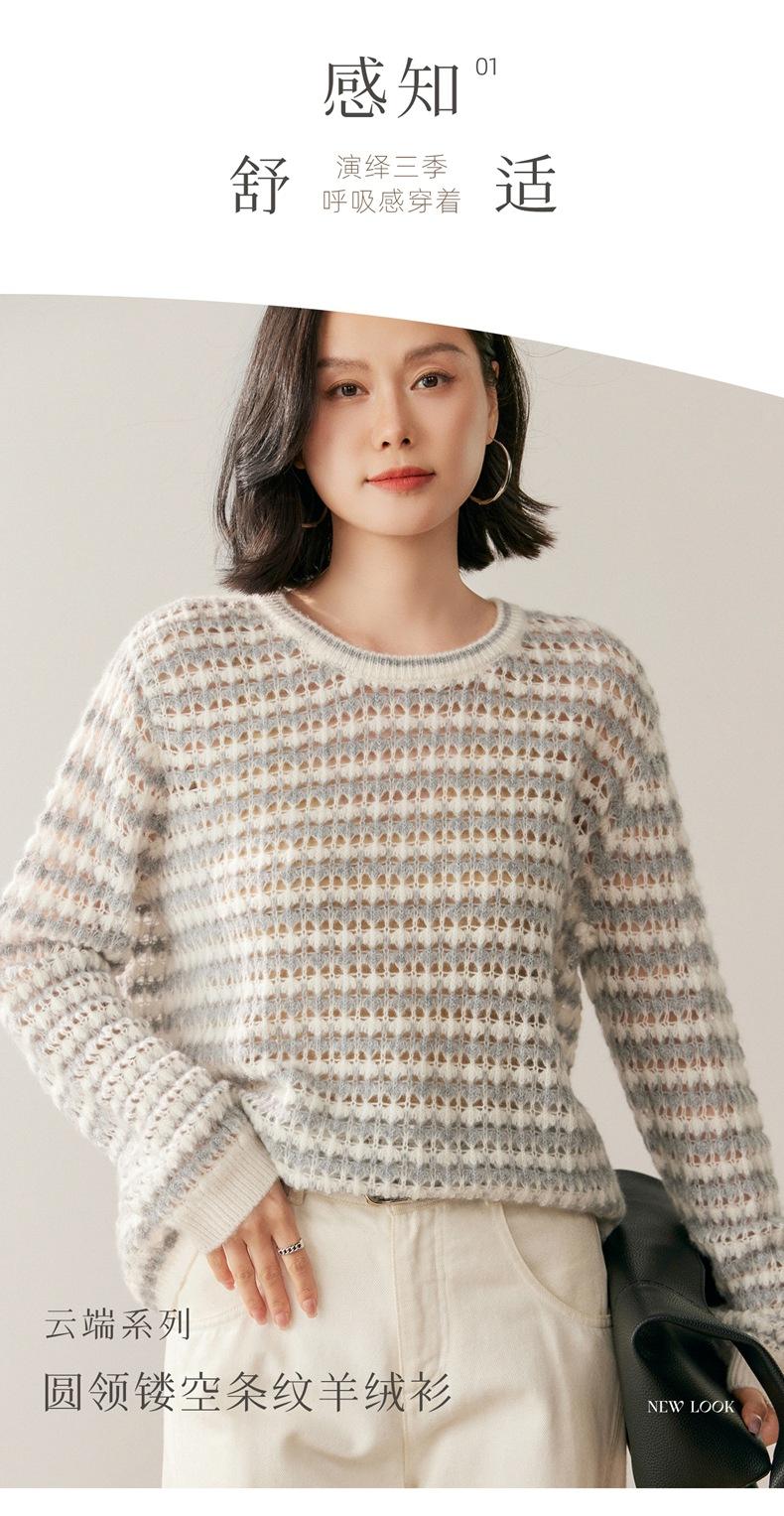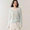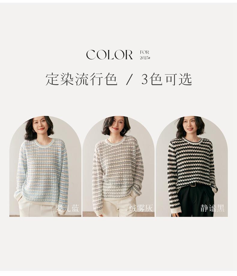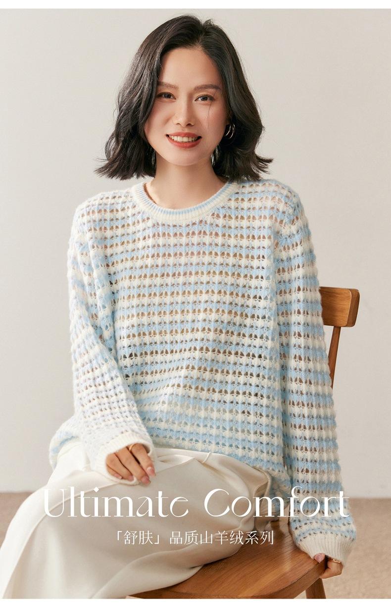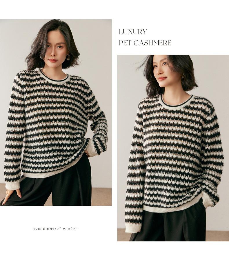 Nueva Capa Base de Punto de Cachemira Otoño/Invierno Cuello Redondo Calado Rayado Cómoda Suave Para Ir al Trabajo Versátil Moda de Mujer