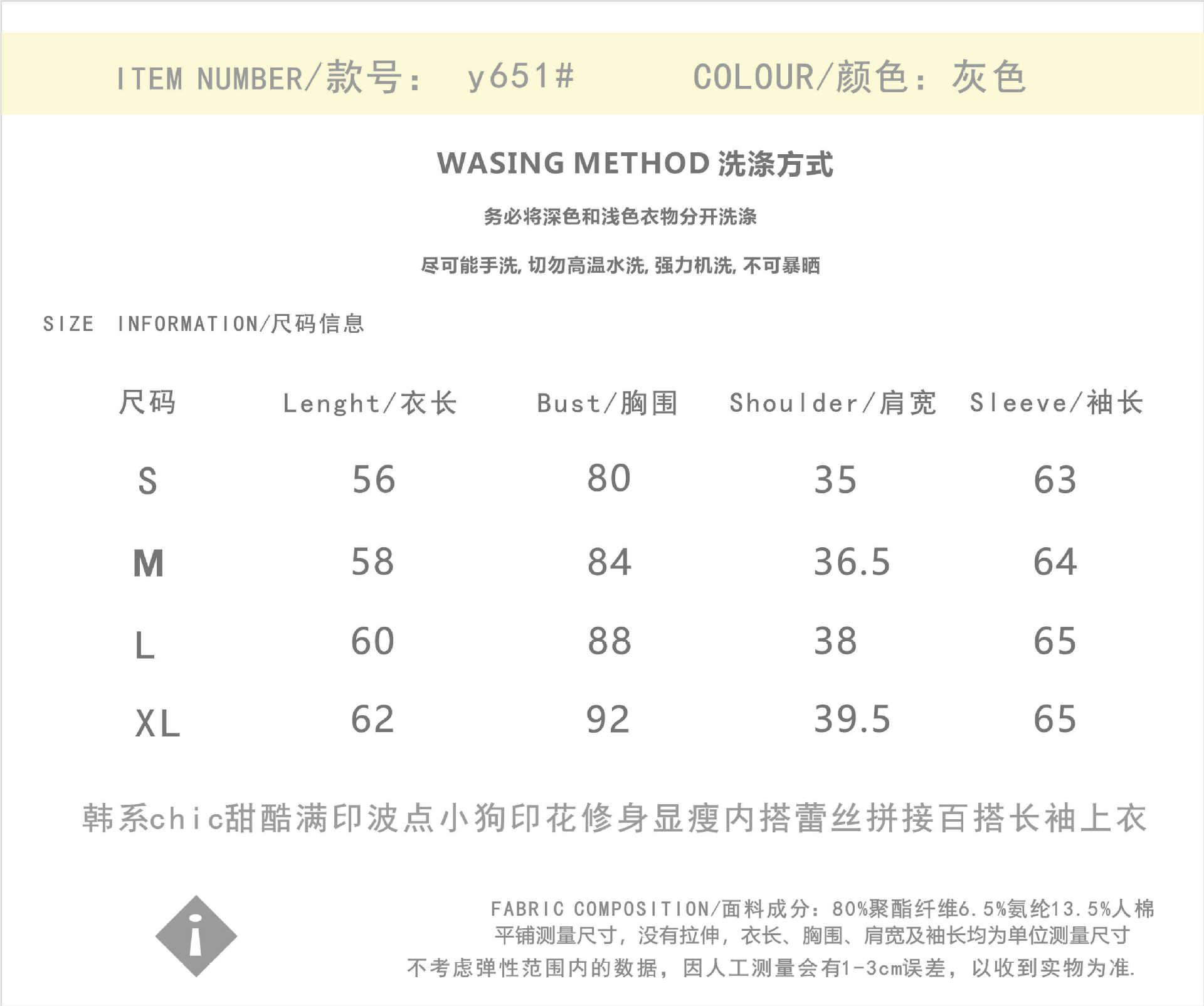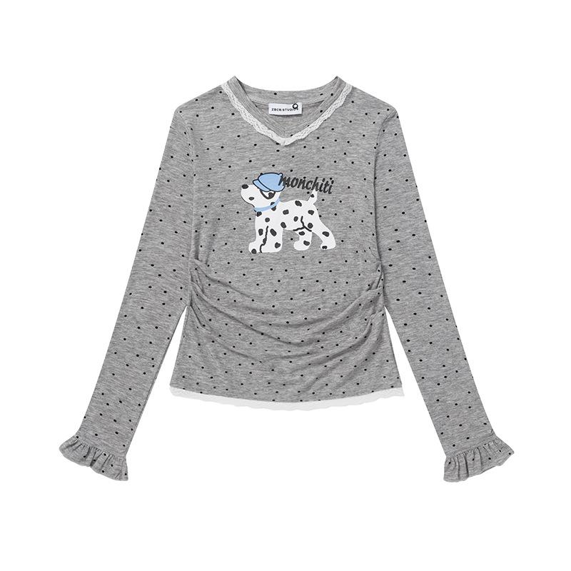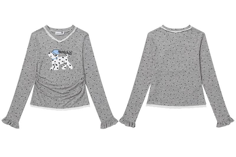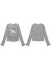 Camiseta de Manga Larga Ajustada con Estampado de Cachorro Retro Americano para Mujer 2025 Principios de Otoño Nueva Versátil Top Adelgazante Tendencia