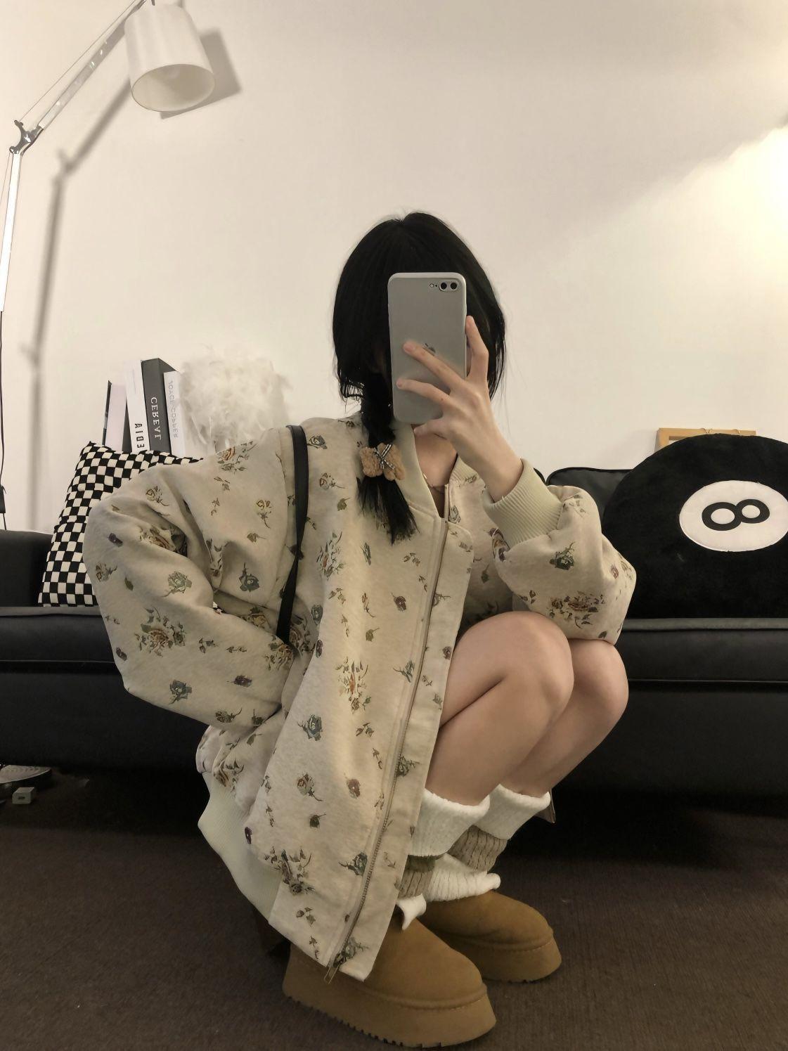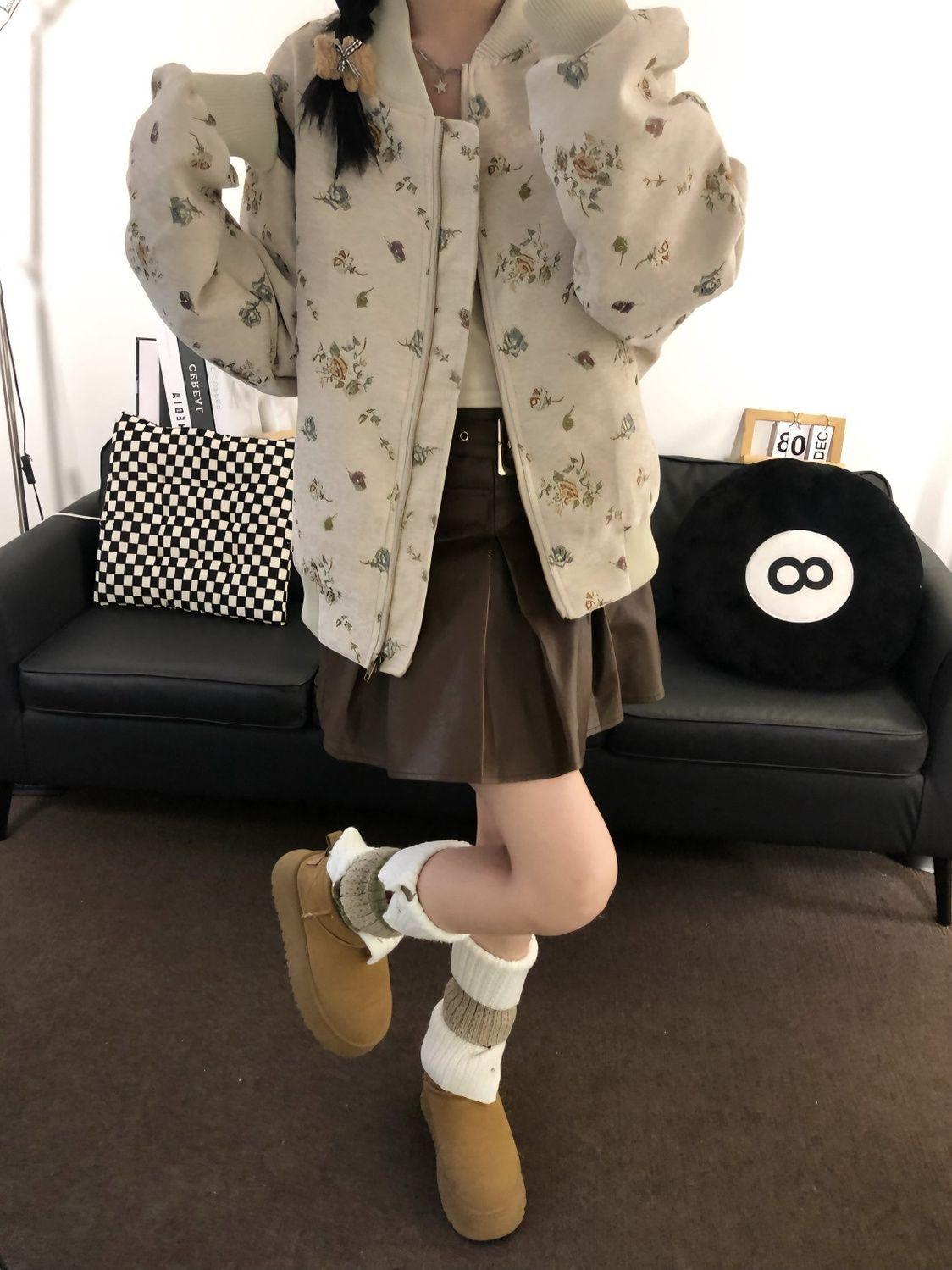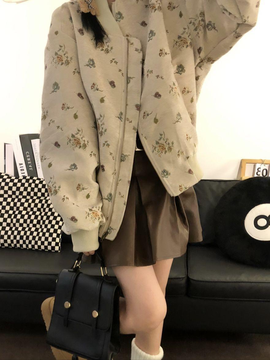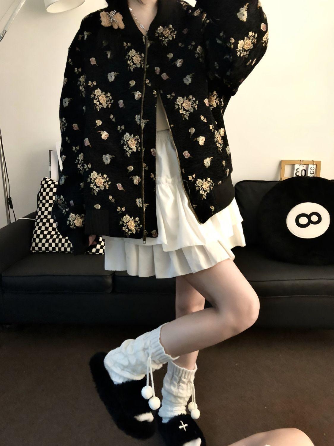 Ins Chaqueta de béisbol floral retro americana para mujer, estilo coreano suelto, otoño, nueva, casual, para pareja