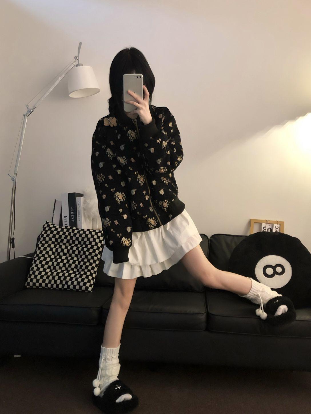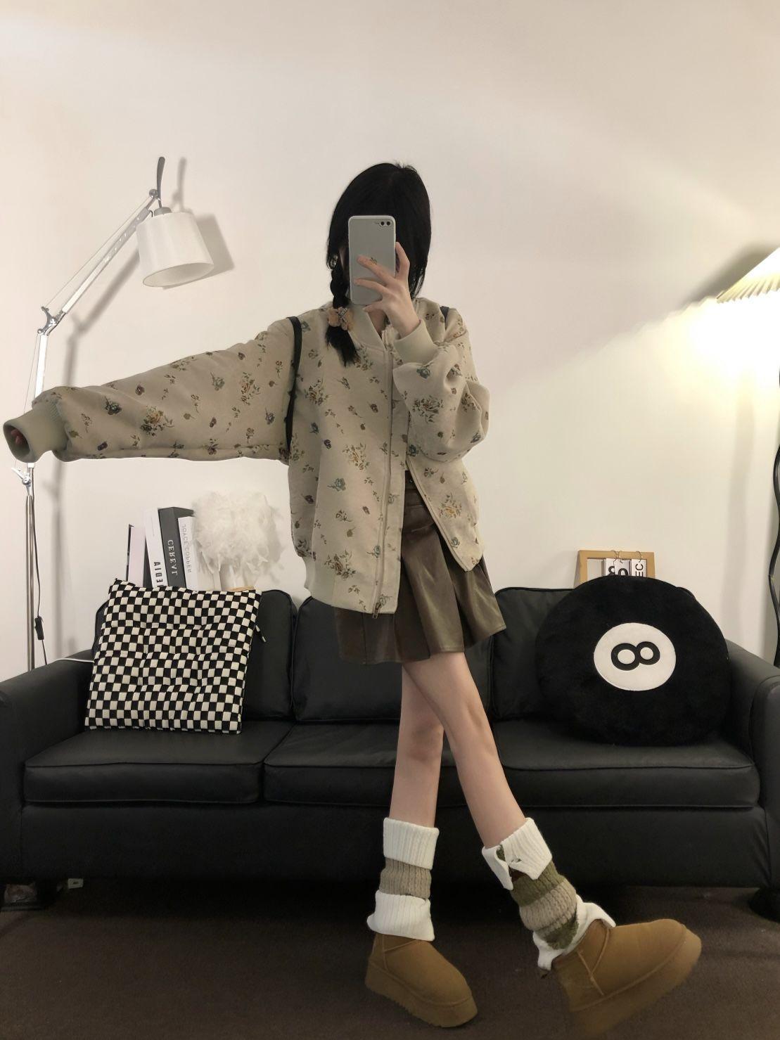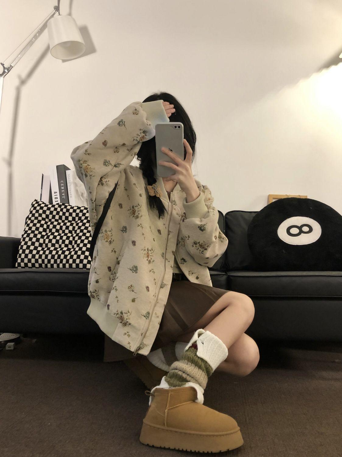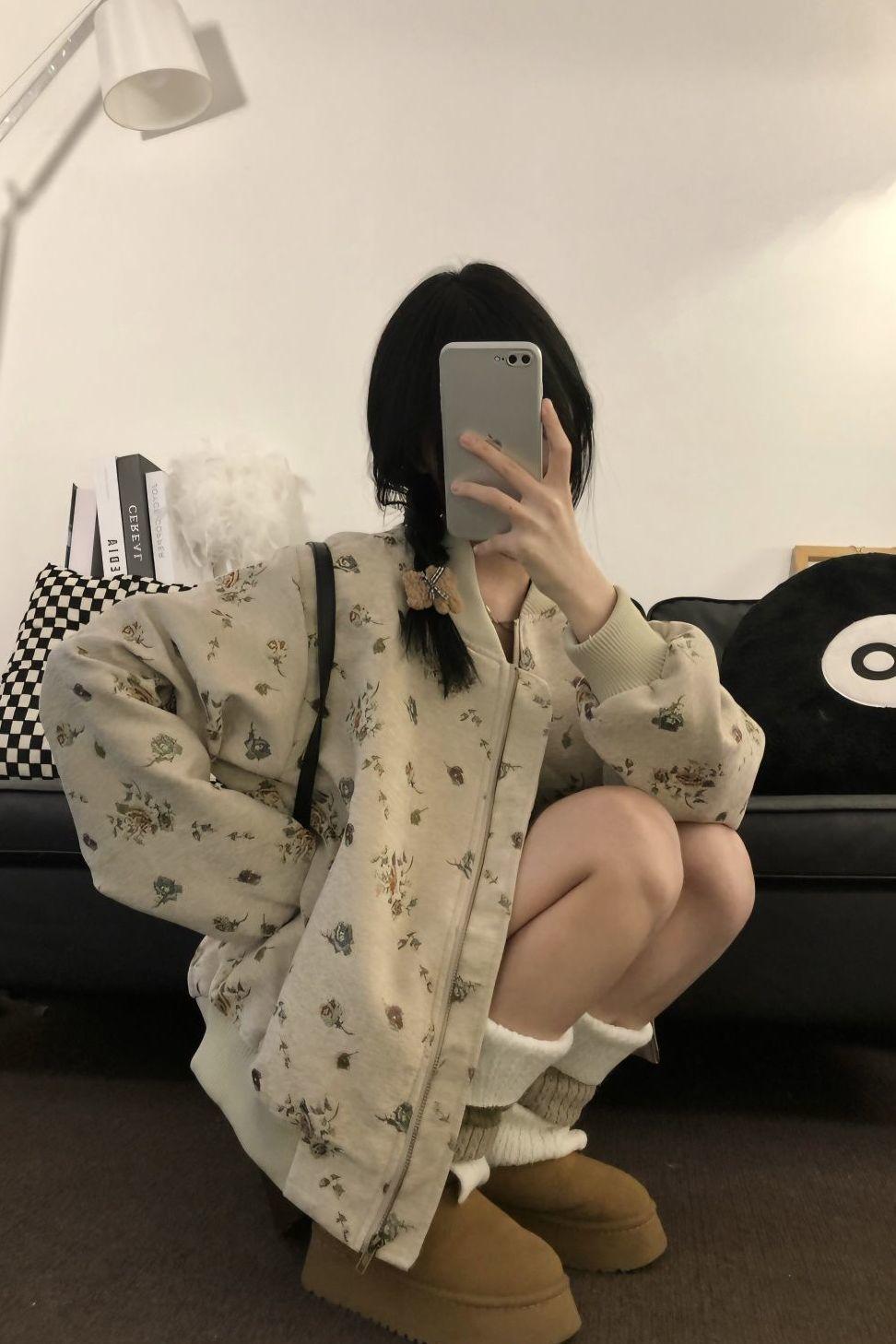 Ins Chaqueta de béisbol floral retro americana para mujer, estilo coreano suelto, otoño, nueva, casual, para pareja