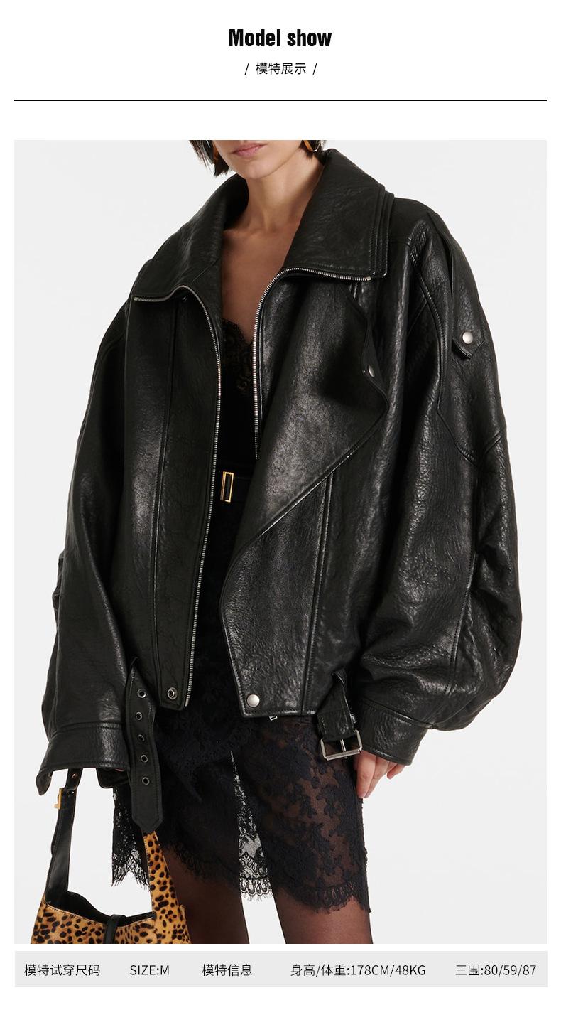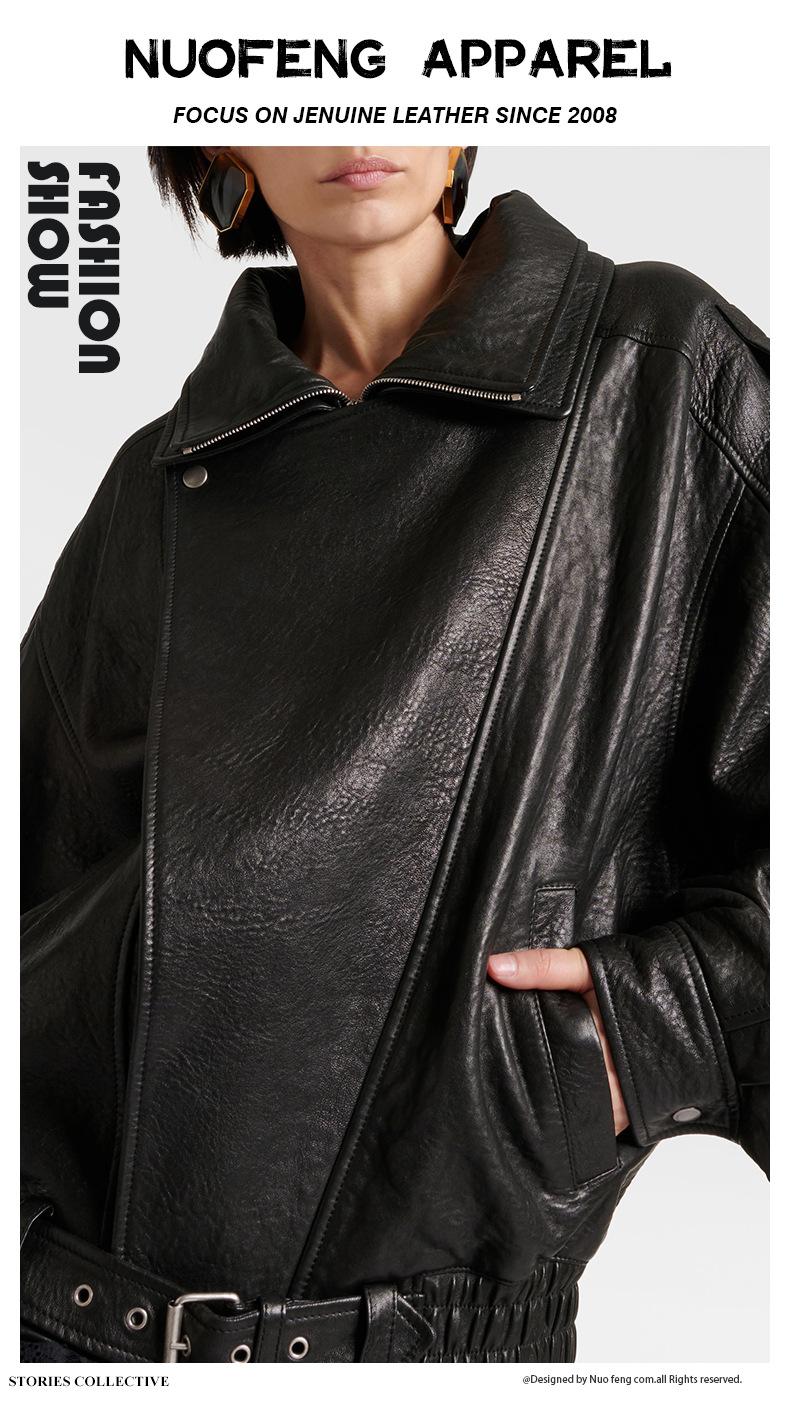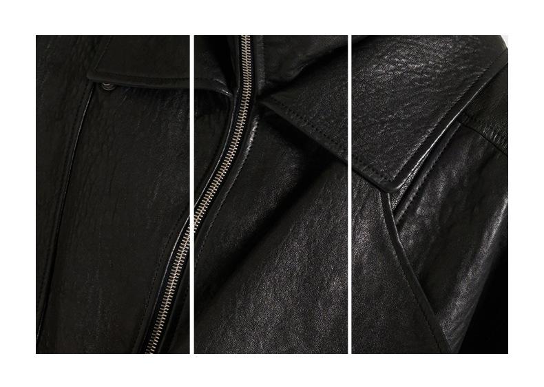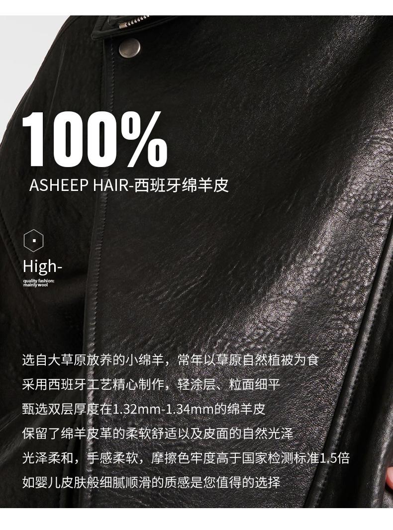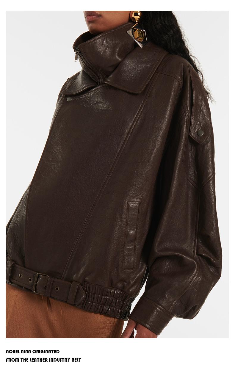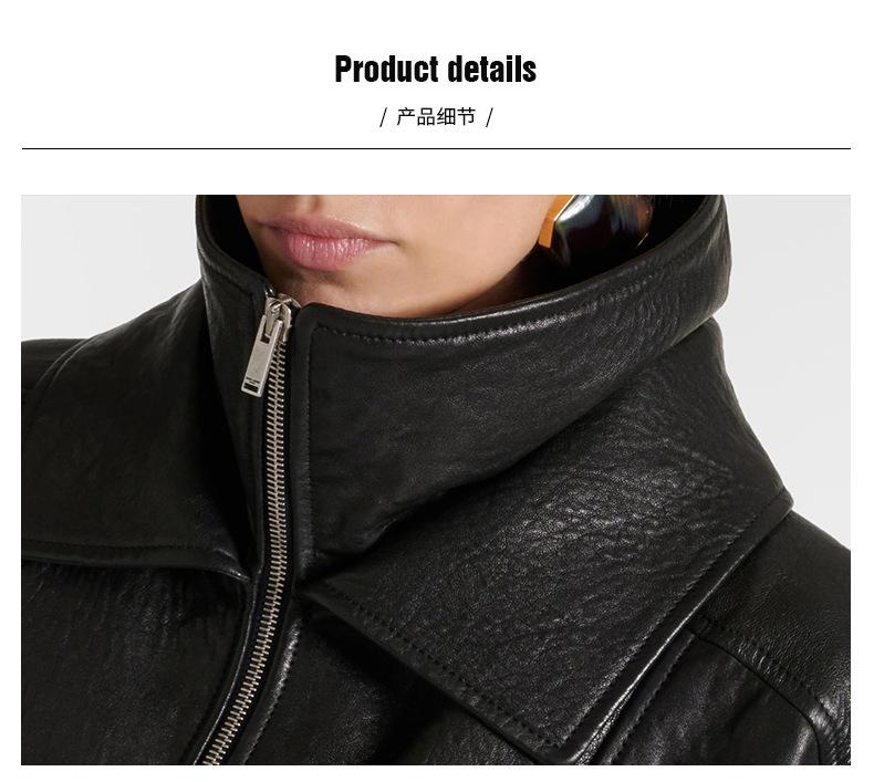 2025 Otoño Nuevo Industria Pesada Piel de Oveja Retro Unisex Cuello Alto Chaqueta de Cuero de Motocicleta Abrigo de Cuero Genuino para Mujer