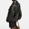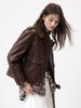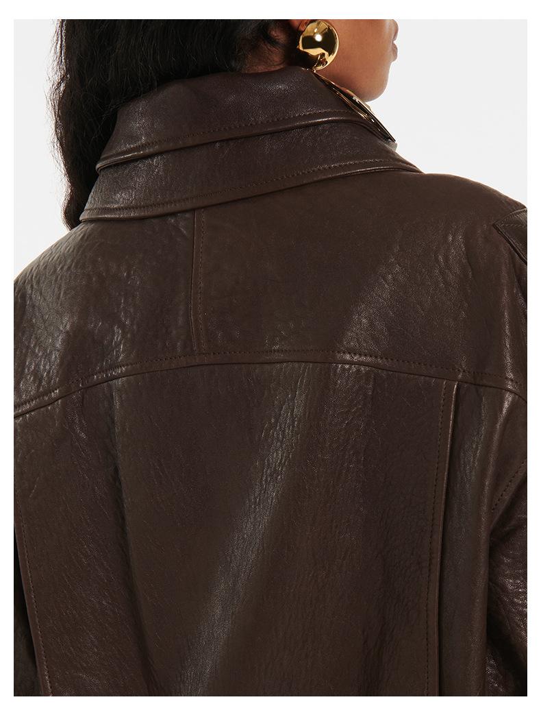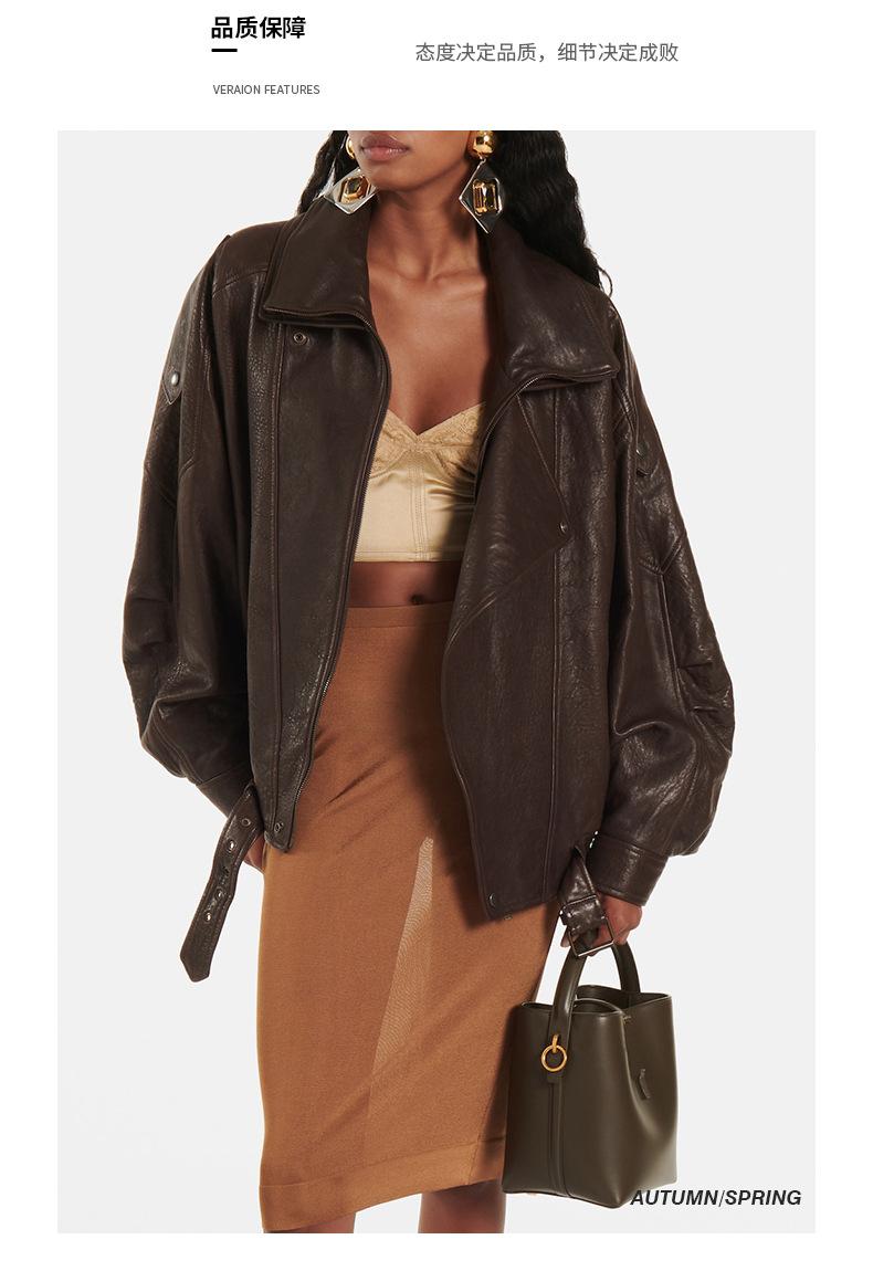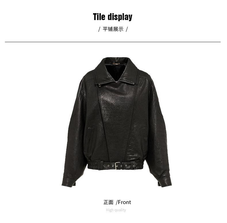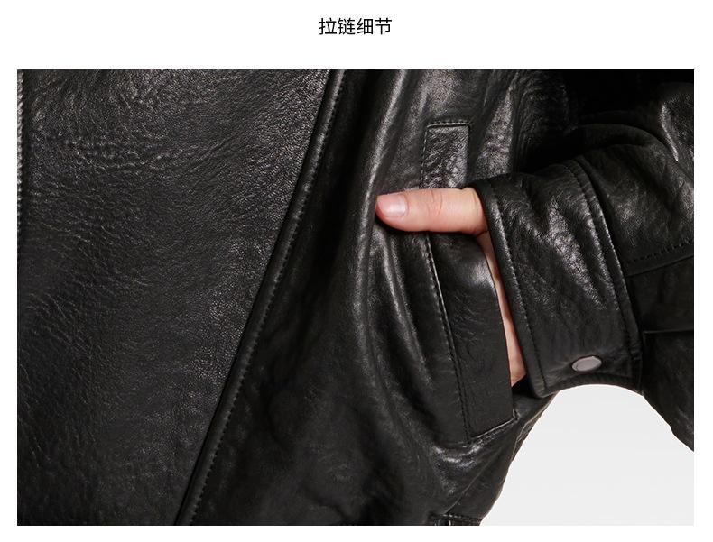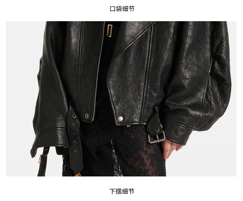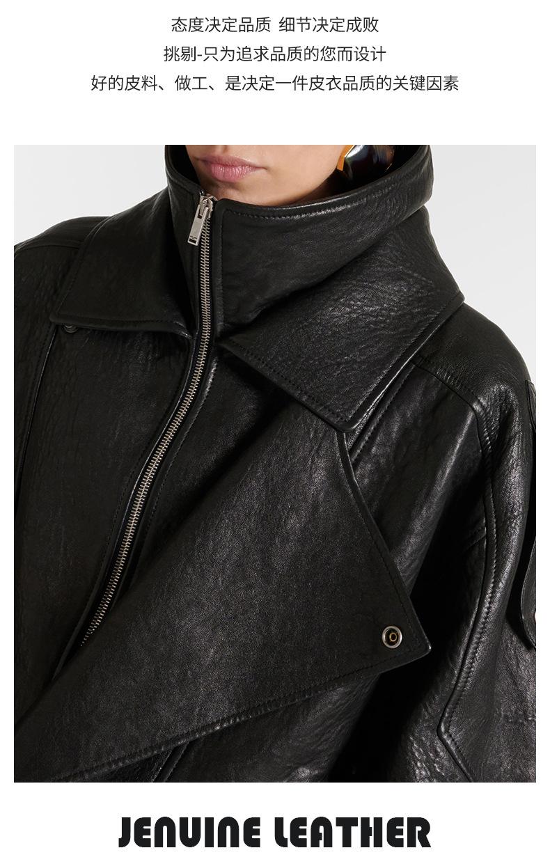 2025 Otoño Nuevo Industria Pesada Piel de Oveja Retro Unisex Cuello Alto Chaqueta de Cuero de Motocicleta Abrigo de Cuero Genuino para Mujer