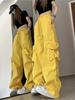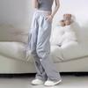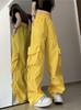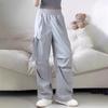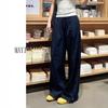 Pantalones de Trabajo Americanos Retro de Secado Rápido para Mujer Verano Cintura Alta Pierna Recta Pierna Ancha Cordón Sueltos Casuales Largos hasta el Piso Tendencia