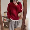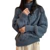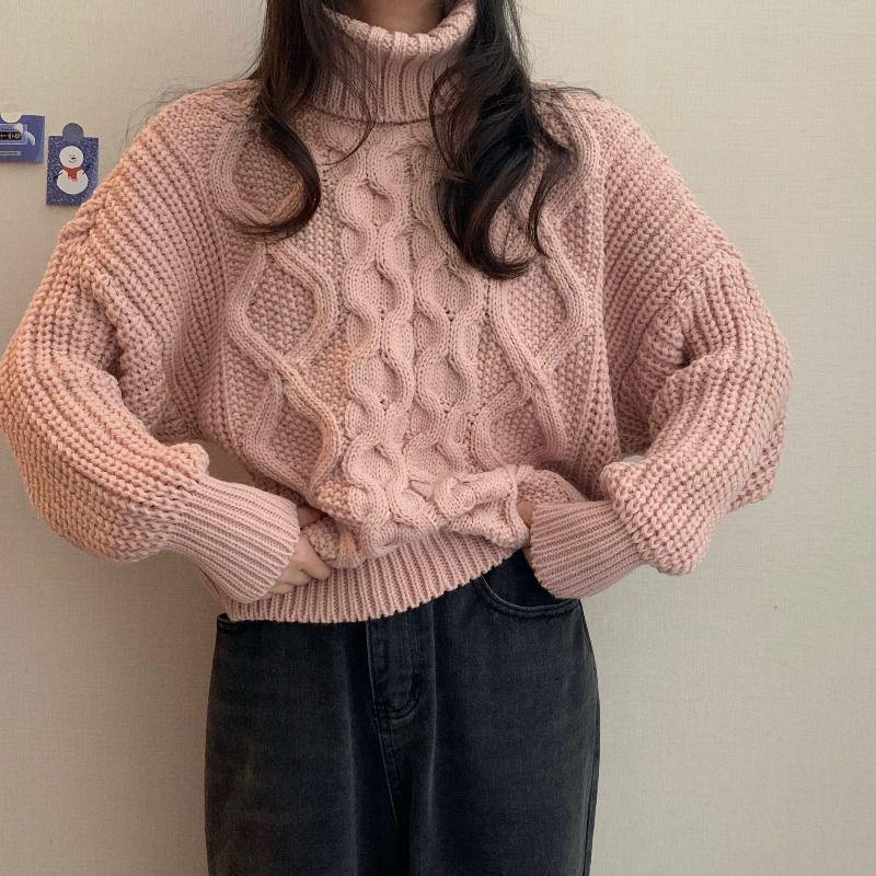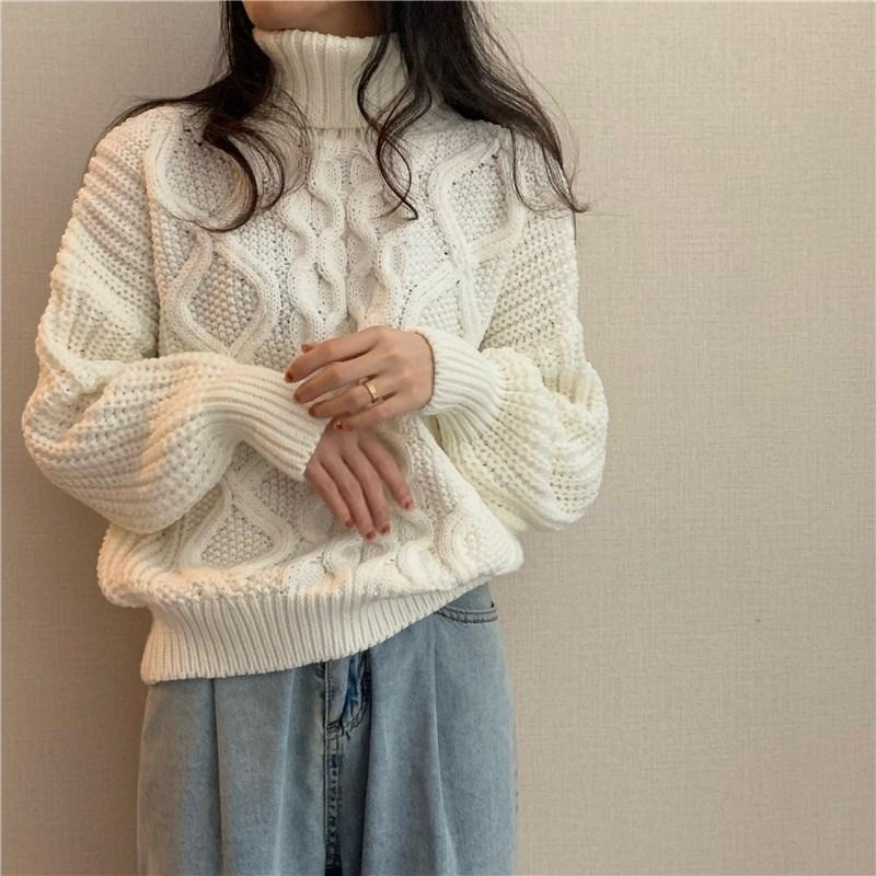 Suéter casual estilo coreano viento perezoso otoño e invierno nuevo cuello alto mujer color sólido punto de cable suelto manga larga punto grueso top