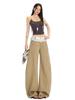 Caqui Pantalones de Pierna Ancha con Adorno de Encaje Cintura Alta para Mujer Primavera y Otoño 2025 Súper Populares Nuevos Versión Estrecha Pantalones Rectos Casuales
