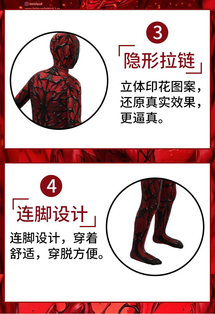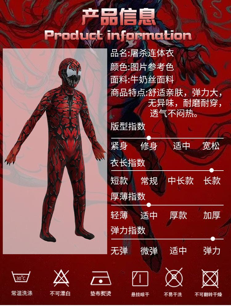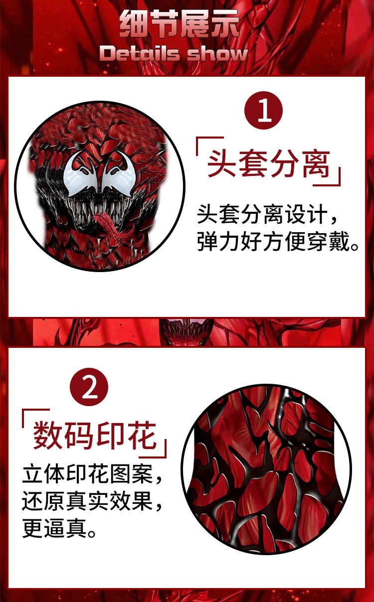 Disfraz de cosplay de Halloween Venom 2 Carnage Venom Rojo Spider-Man disfraz de actuación mono de héroe body disfraz de rol
