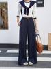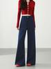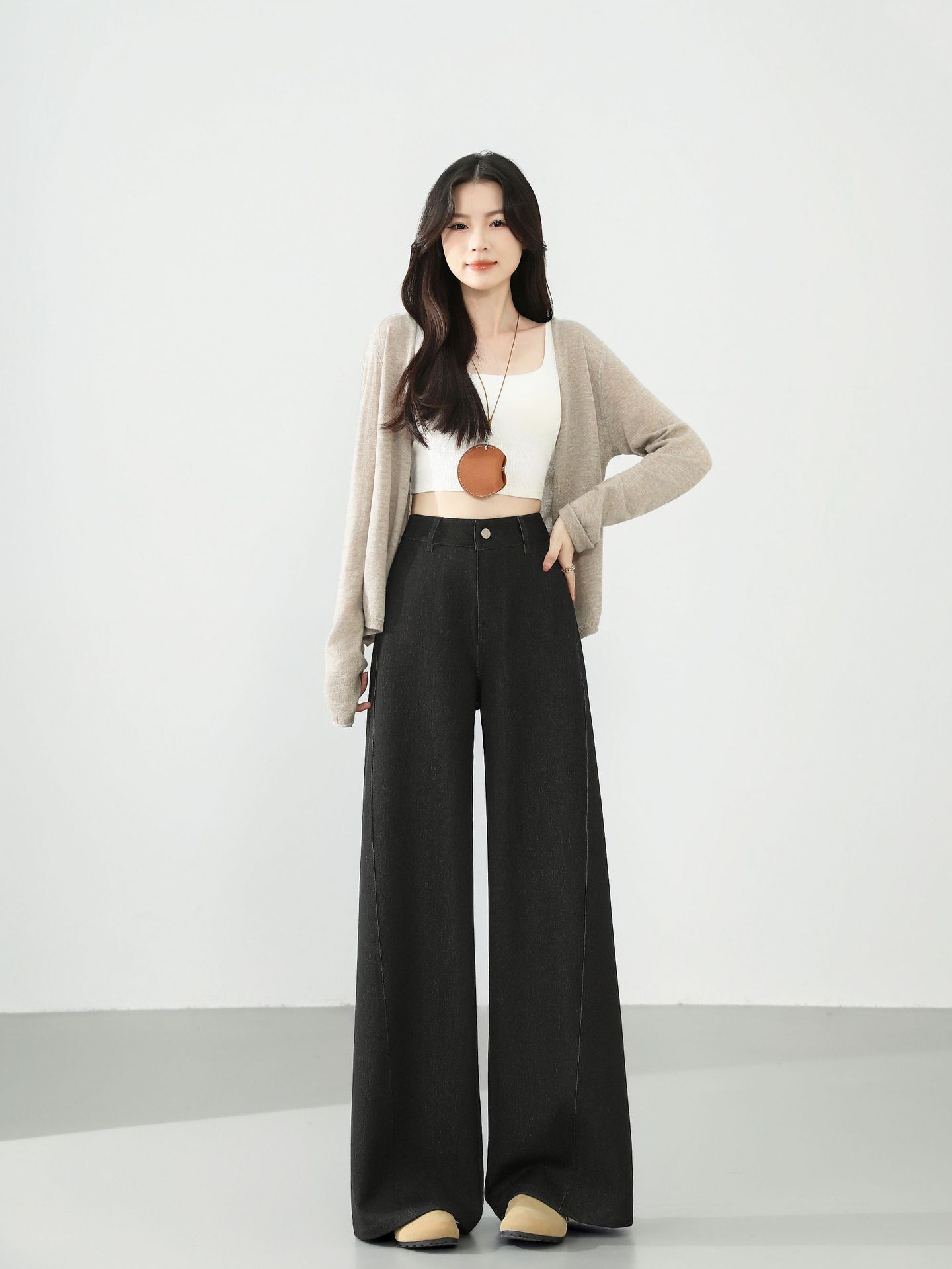 Pantalones de mezclilla sintética de cintura alta y pierna ancha Ai Xuan para mujer otoño 2025 nuevos diseño de pierna curvada sentido suelto drapeado pantalones casuales