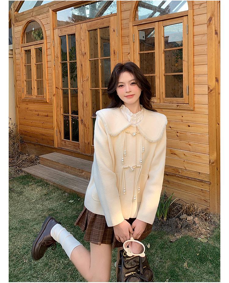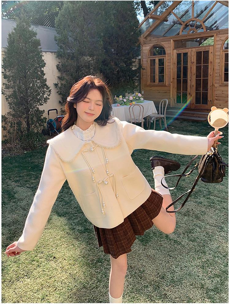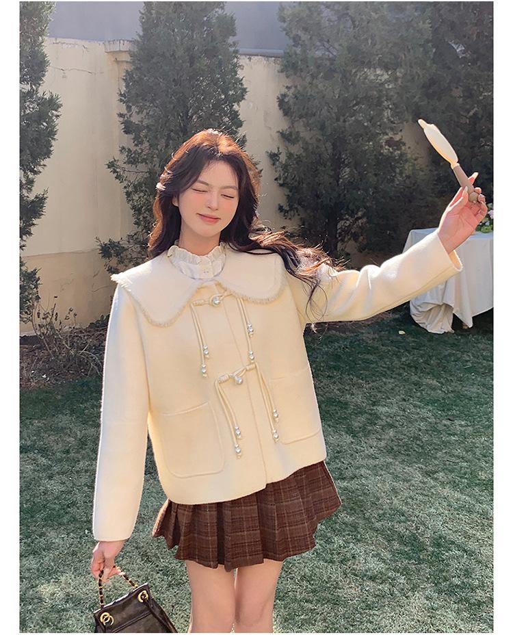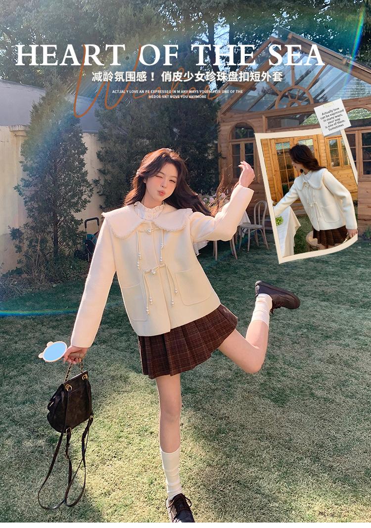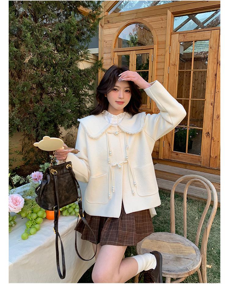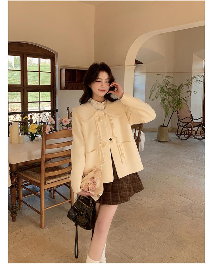 2025 Primavera y Otoño Nuevas Llegadas Reductor de Edad Versátil Cómodo Casual Estilo Pequeño Fragante Nuevo Chino Hebilla Pan Cuello Peter Pan Chaqueta Tendencia