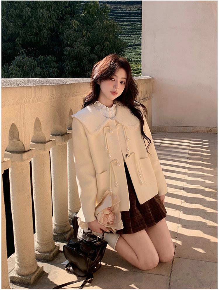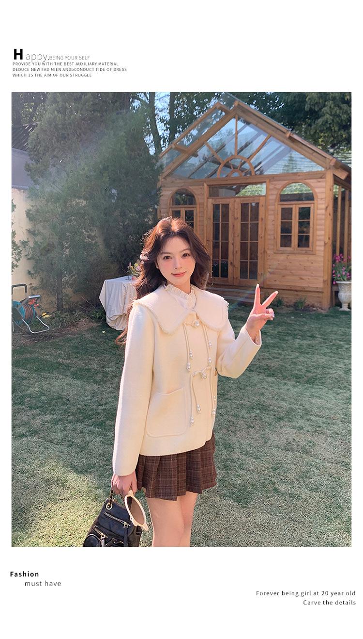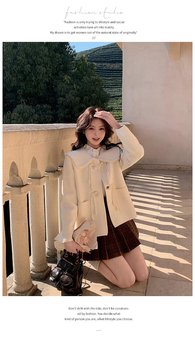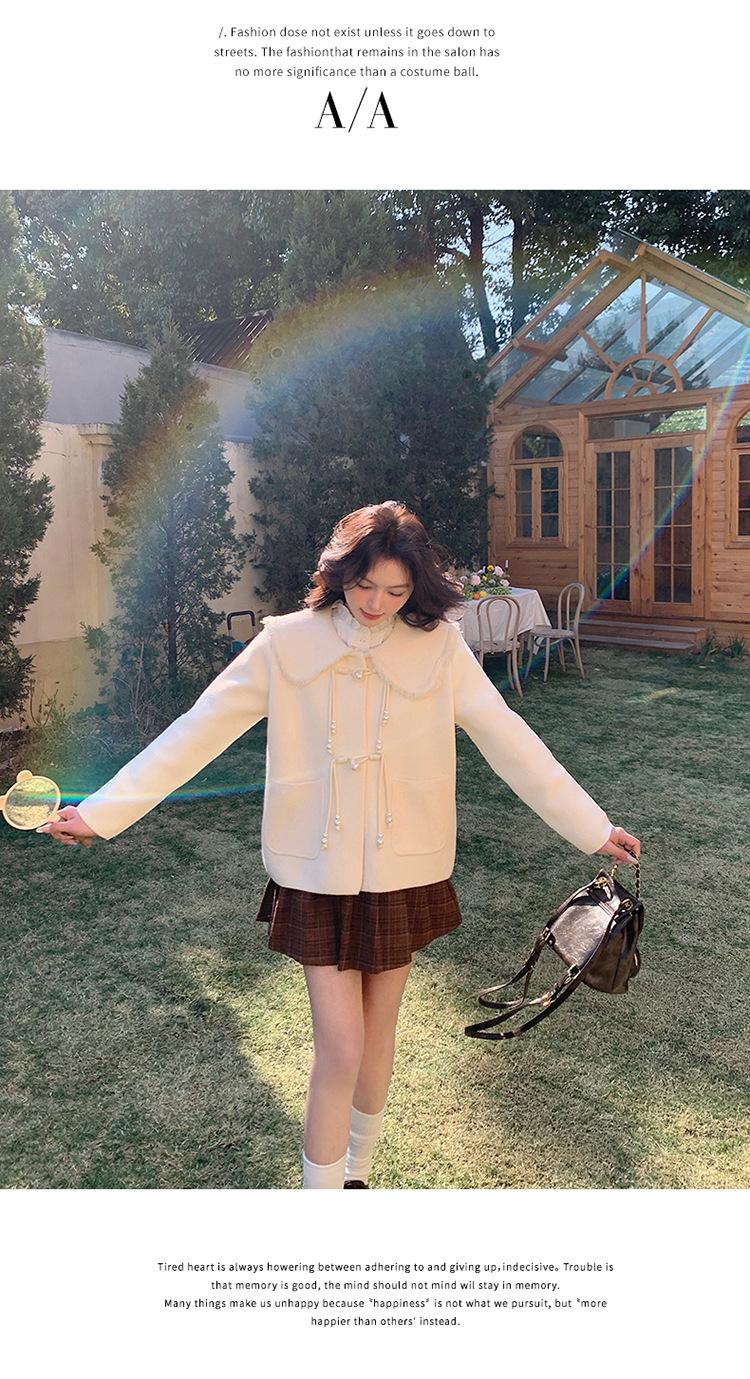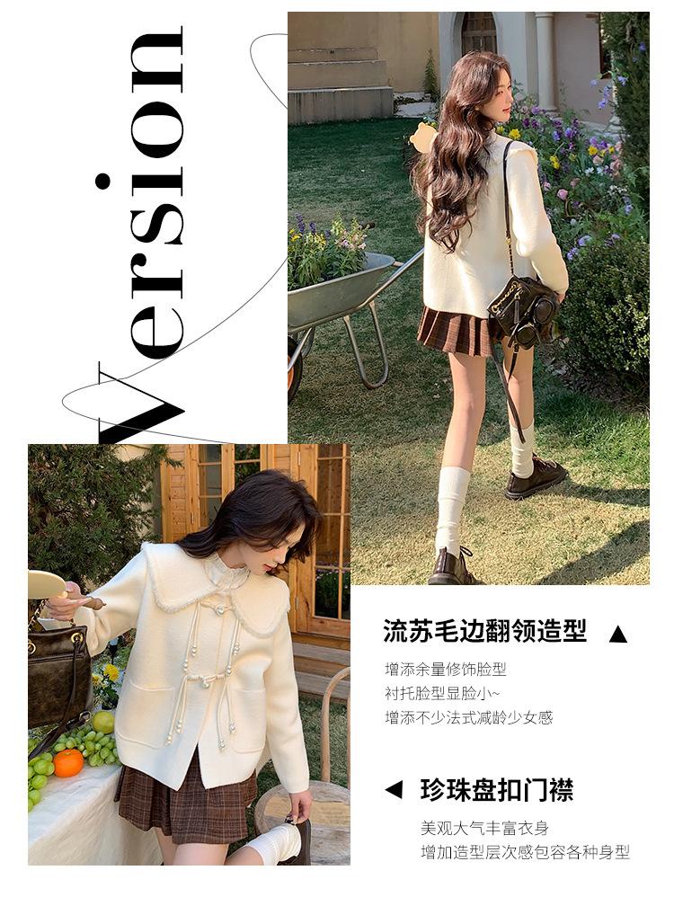 2025 Primavera y Otoño Nuevas Llegadas Reductor de Edad Versátil Cómodo Casual Estilo Pequeño Fragante Nuevo Chino Hebilla Pan Cuello Peter Pan Chaqueta Tendencia