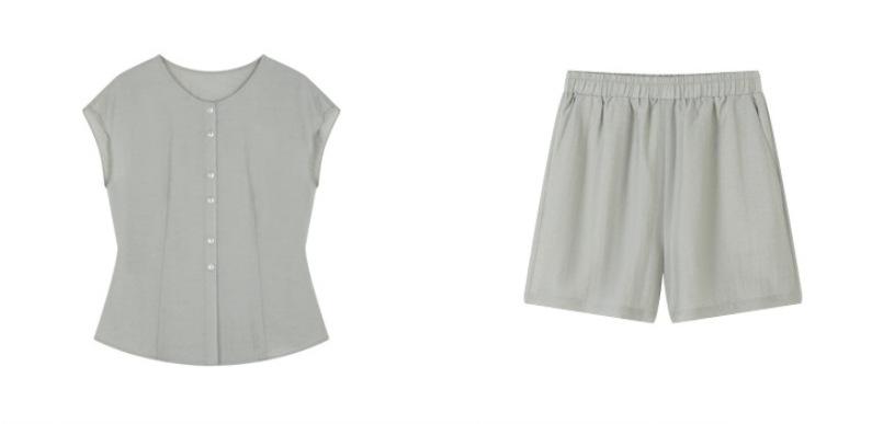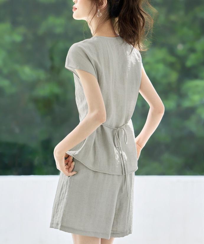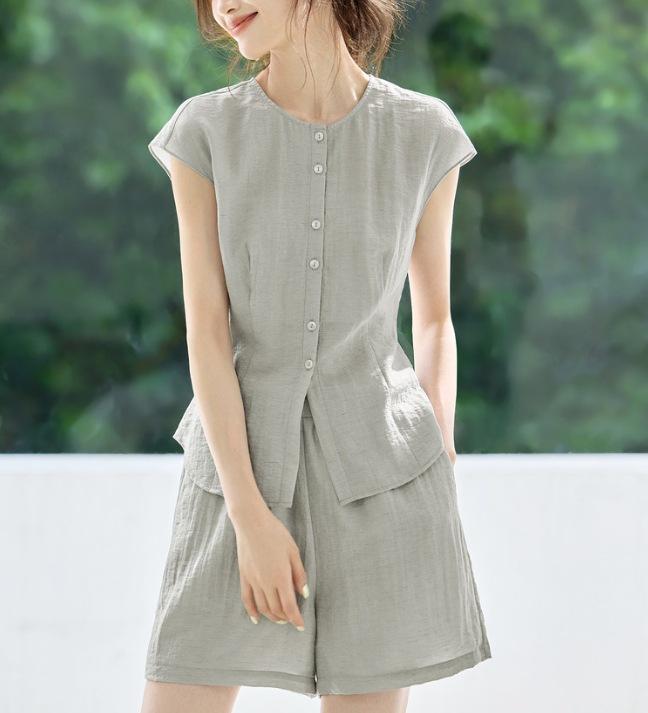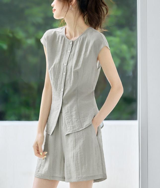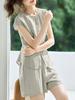 Conjunto de dos piezas sin mangas y shorts con look adelgazante relajado 2025 Verano Nuevo Estilo Moda Casual Ropa de Trabajo Traje Moderno