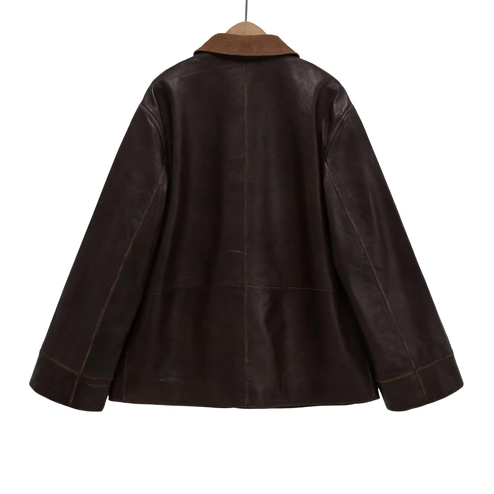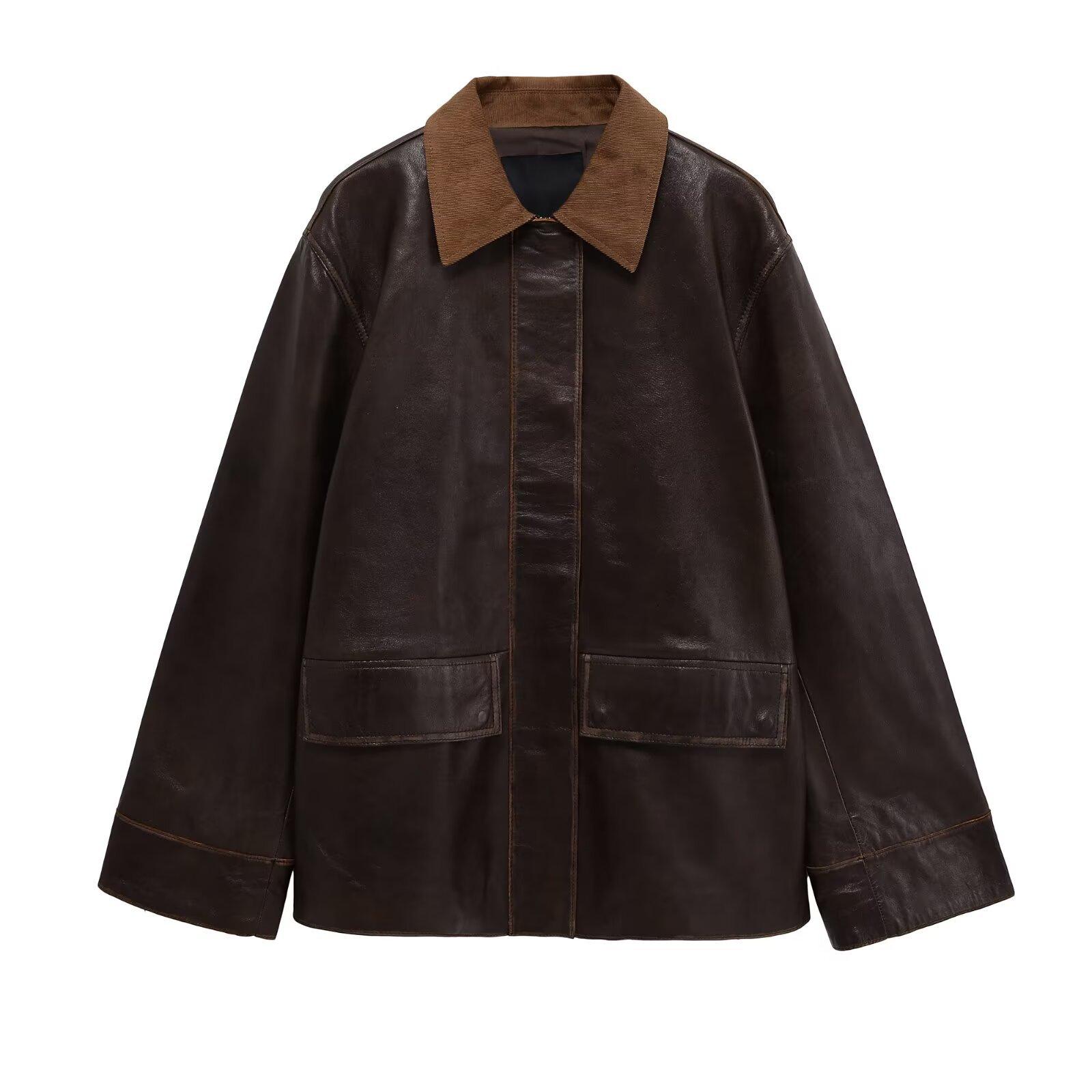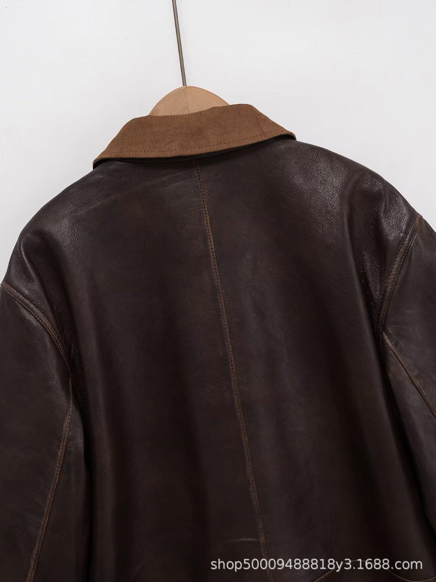 Chaqueta de Cuero Biker Retro Doble Bolsillo Abrigo 2025 Otoño Nuevo Suelto Versátil PU Cuero Solapa Chaqueta Top