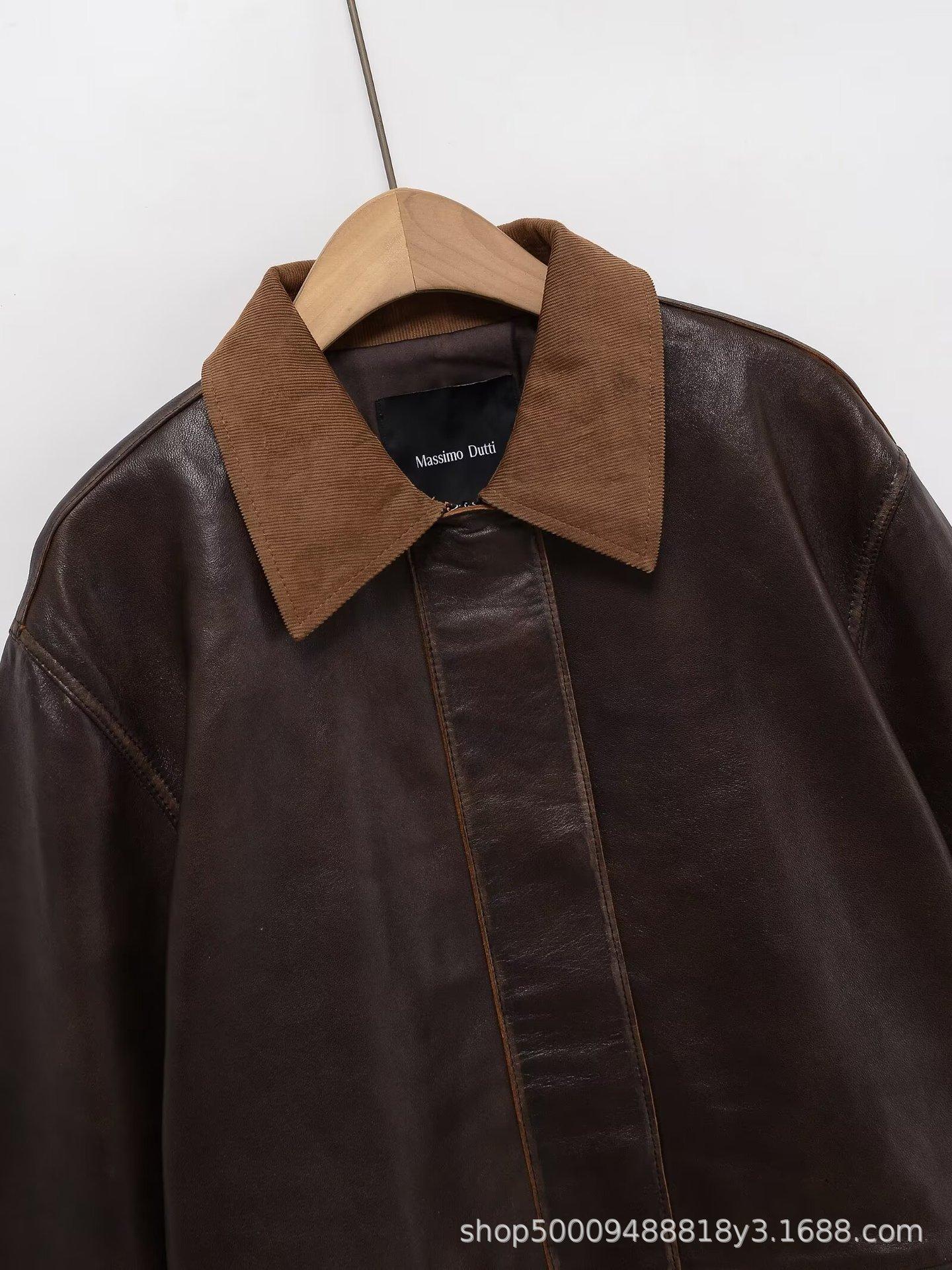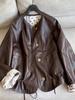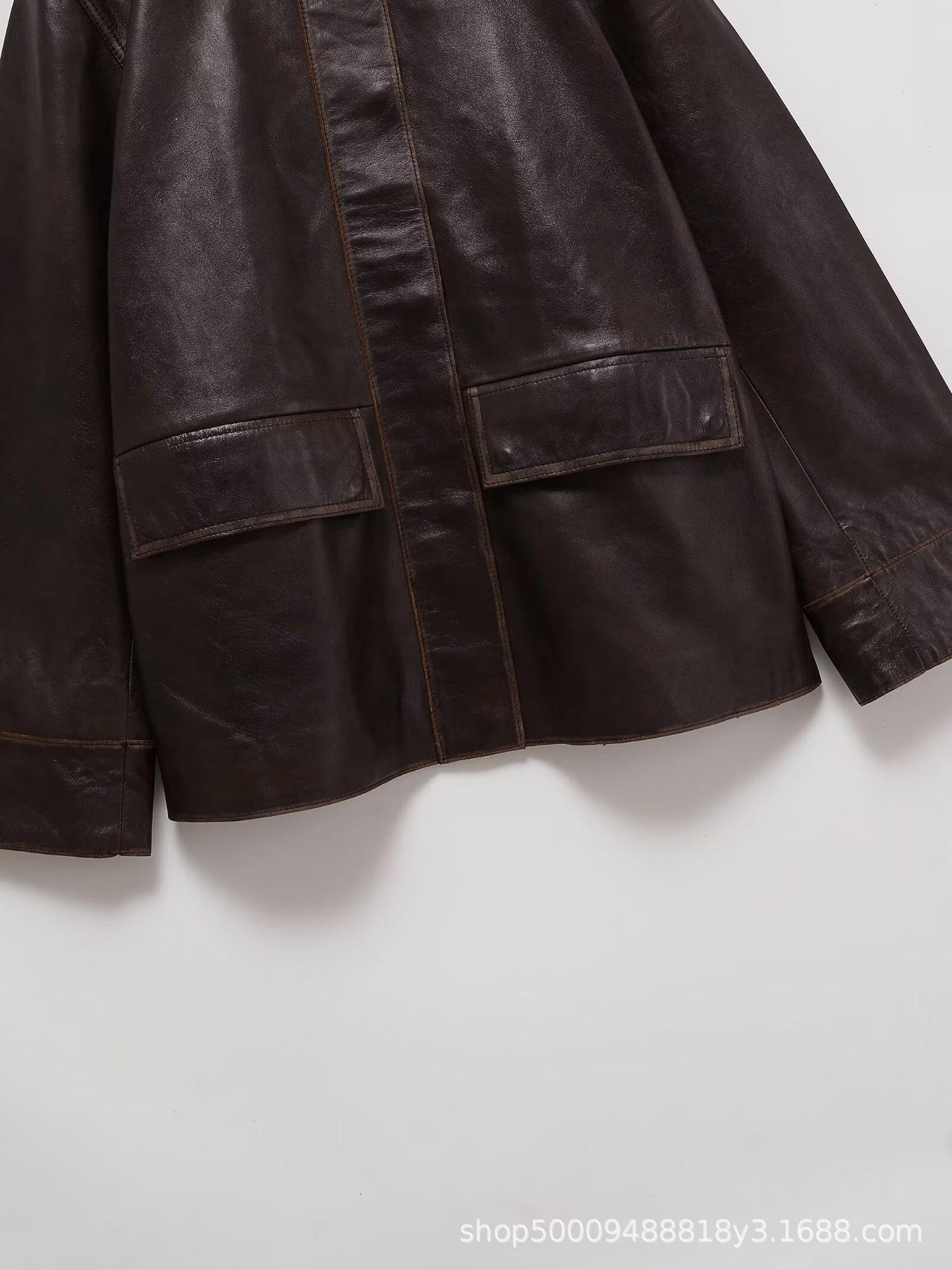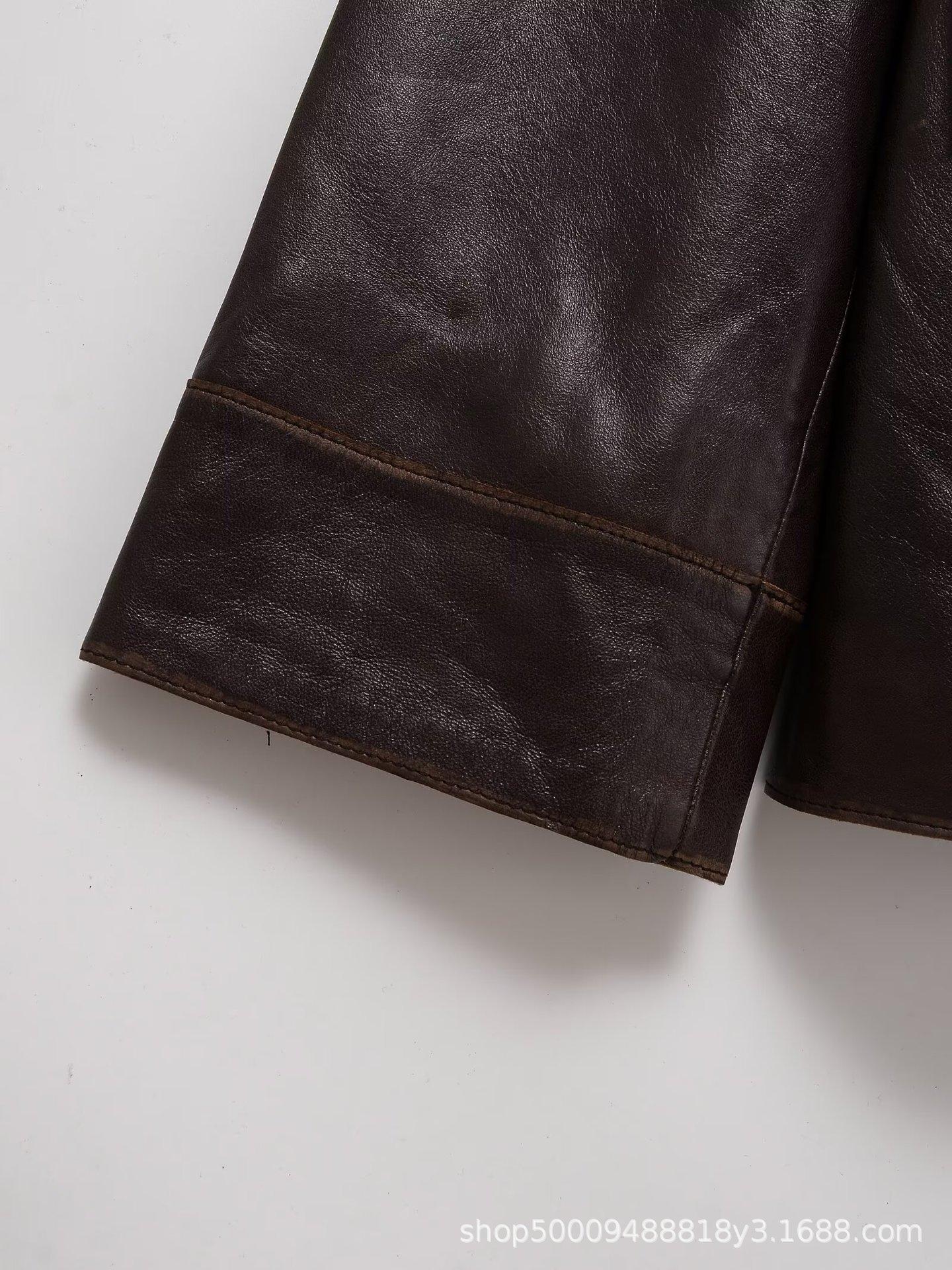 Chaqueta de Cuero Biker Retro Doble Bolsillo Abrigo 2025 Otoño Nuevo Suelto Versátil PU Cuero Solapa Chaqueta Top