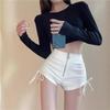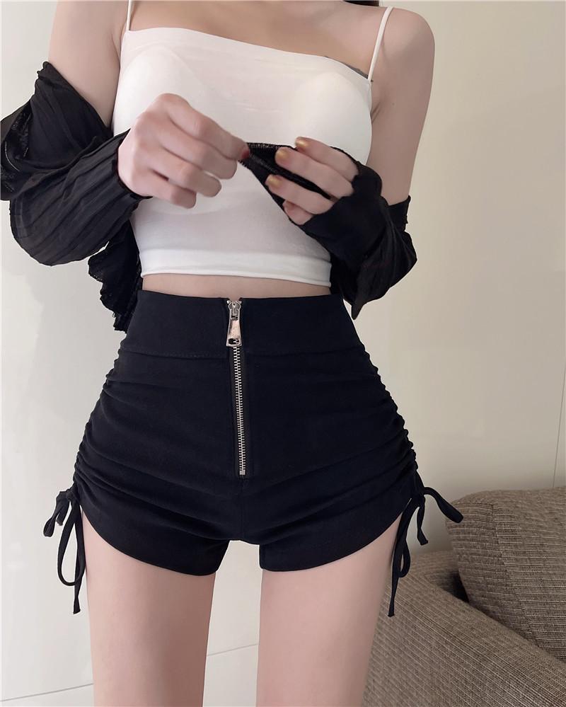 Shorts blancos con cordón para mujer verano 2025 nuevo diseño chica hot pantalones cortos cremallera cintura alta adelgazantes pantalones casuales