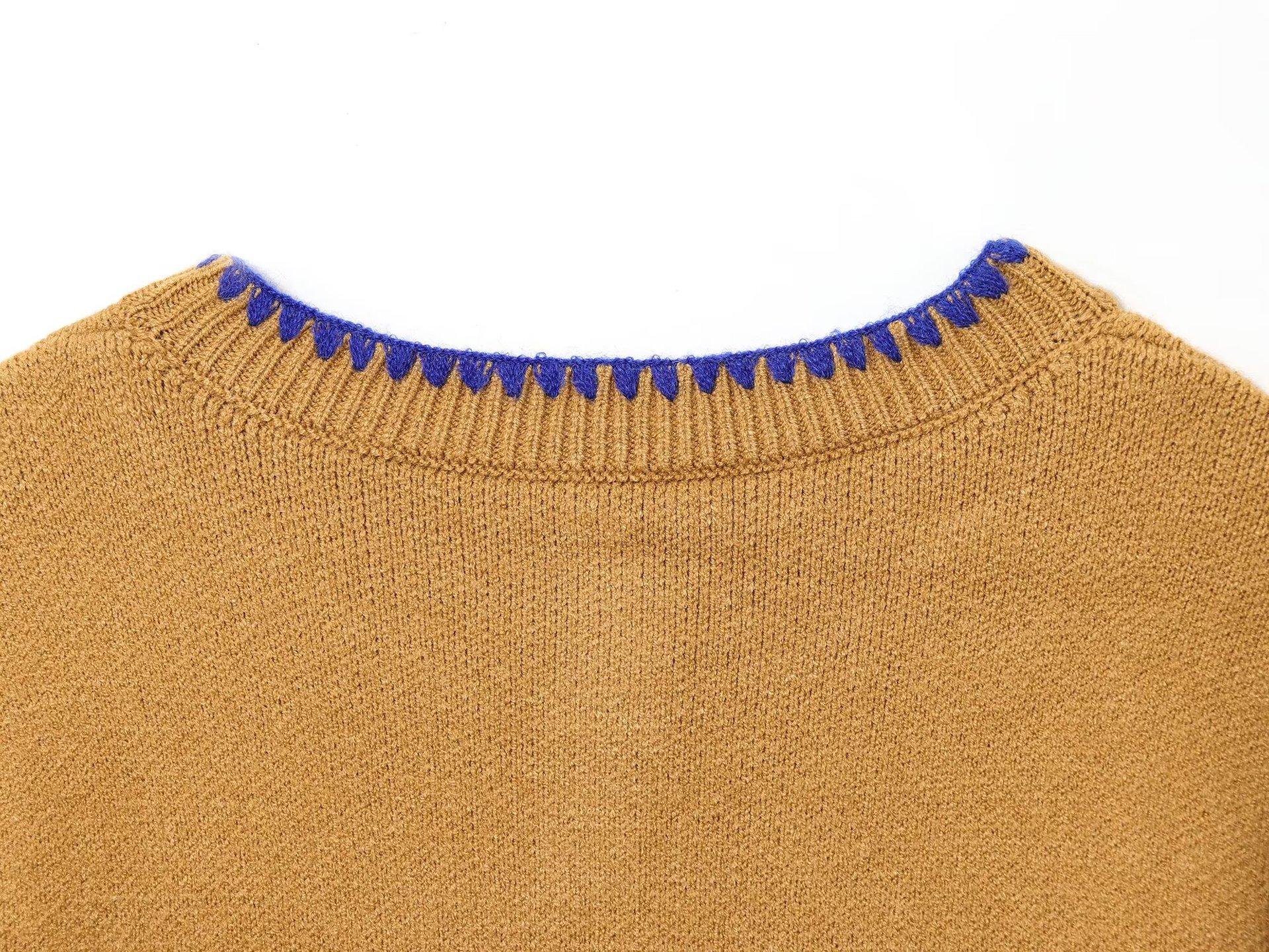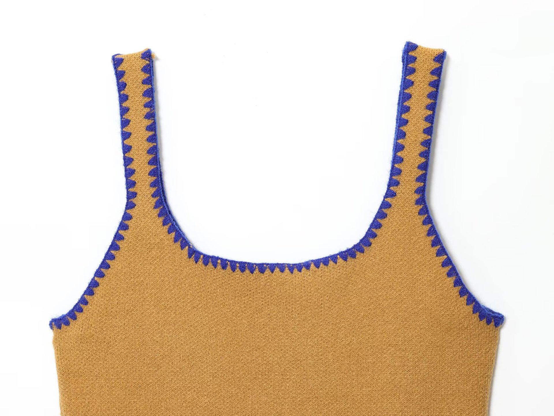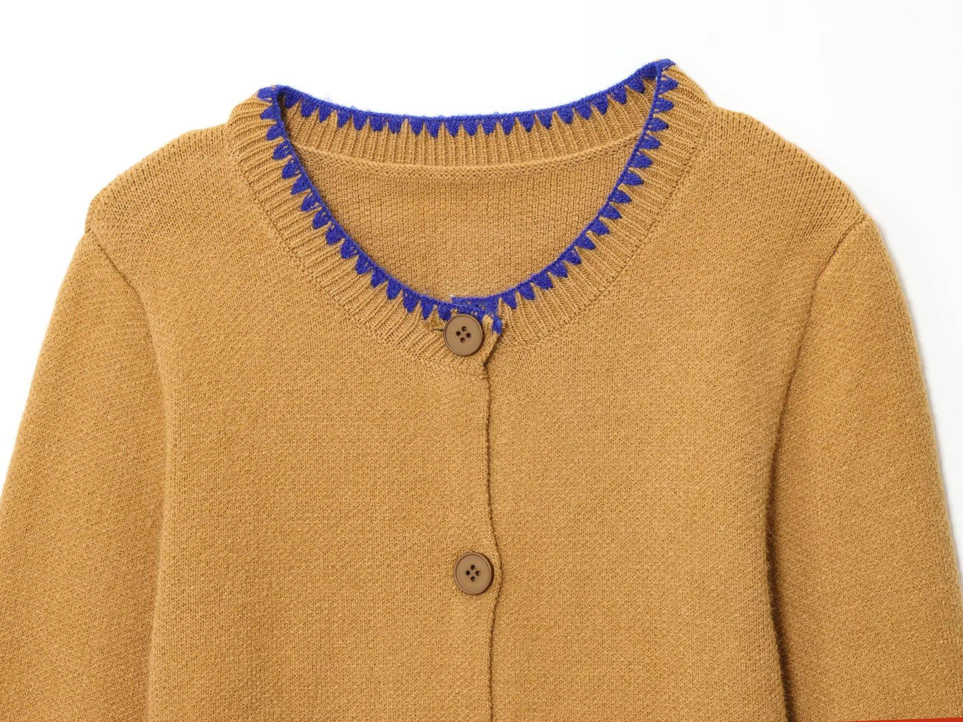 Moda feminina europeia e americana transfronteiriça AliExpress mais vendido moda casual gola redonda bloco de cores bordado cardigã de malha + conjunto colete