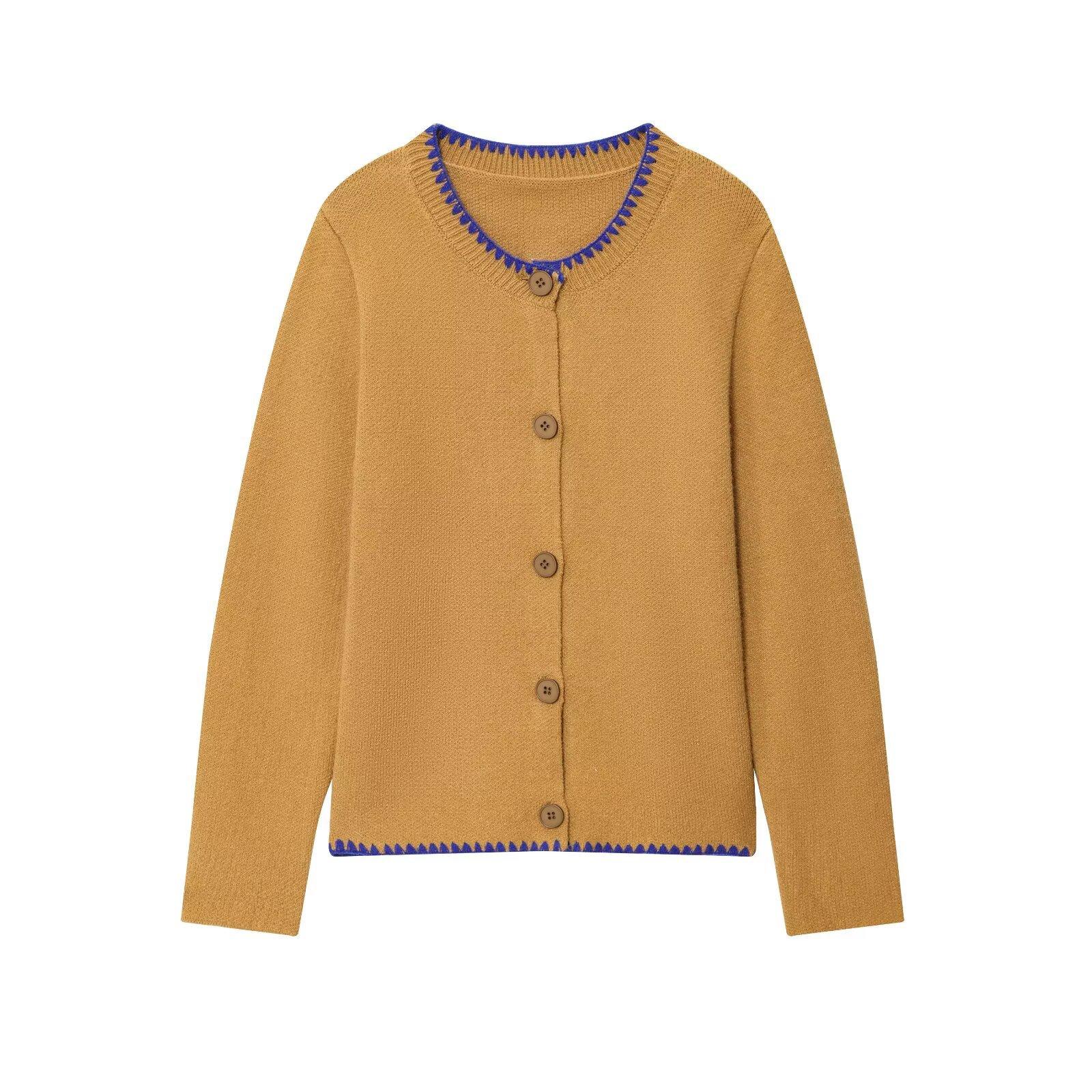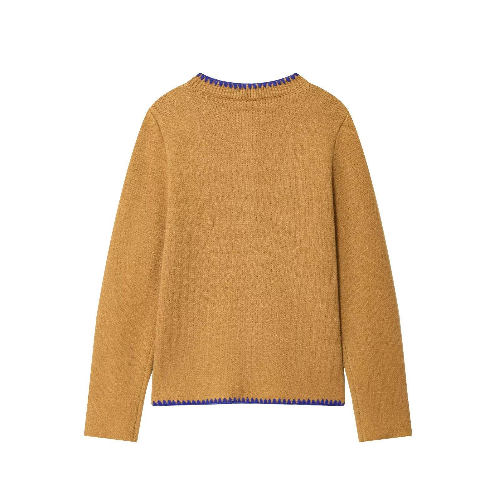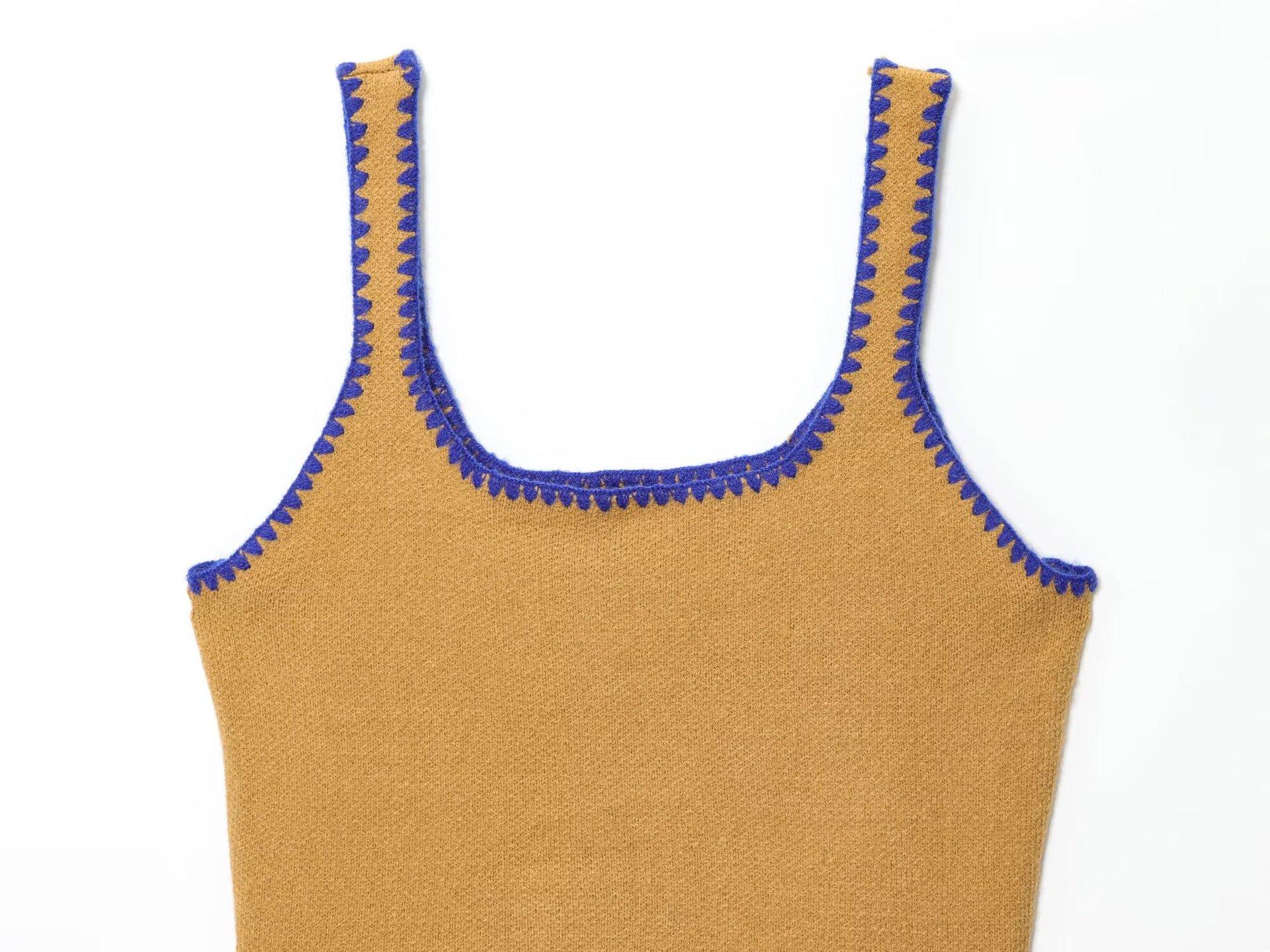 Moda feminina europeia e americana transfronteiriça AliExpress mais vendido moda casual gola redonda bloco de cores bordado cardigã de malha + conjunto colete