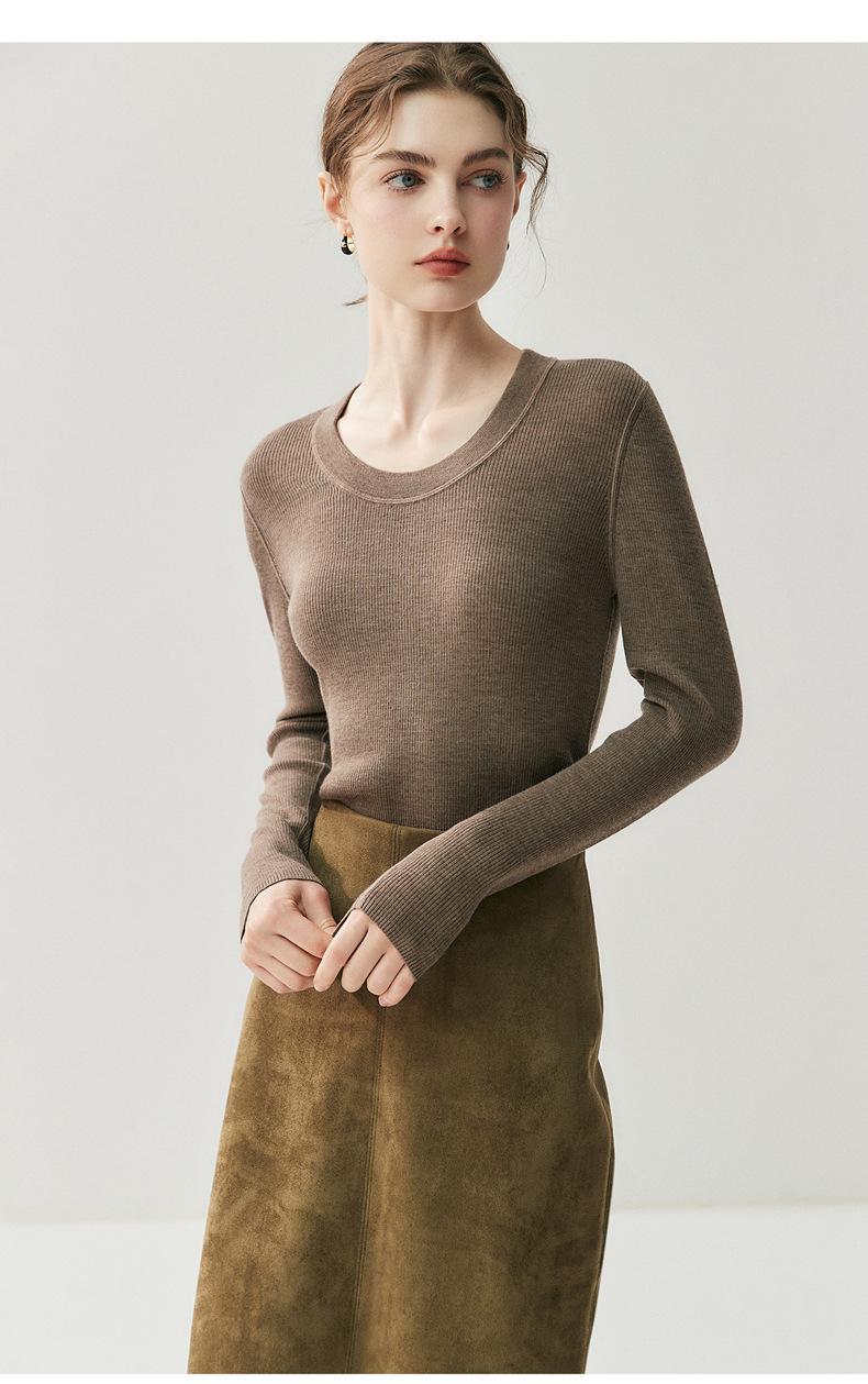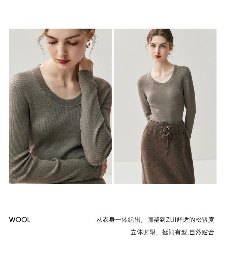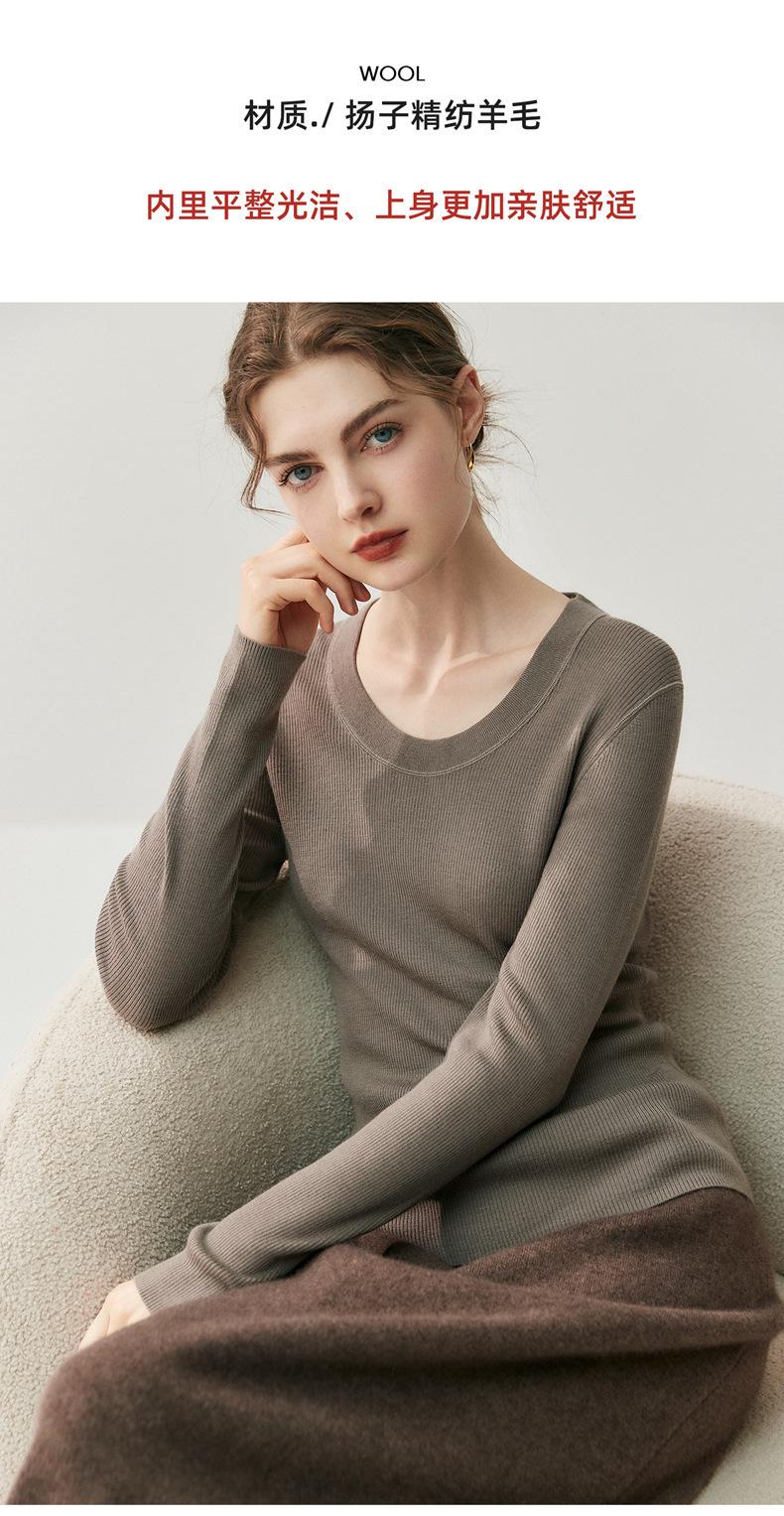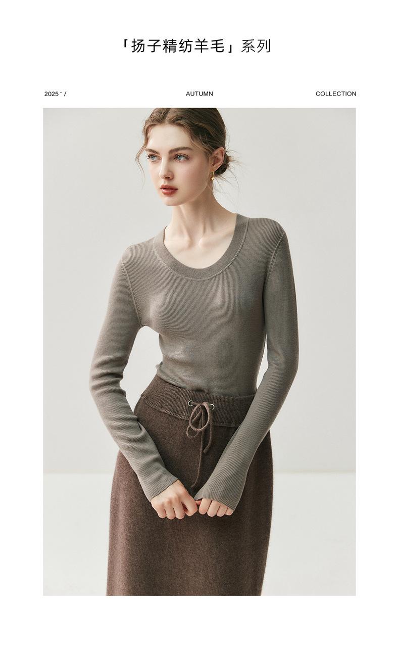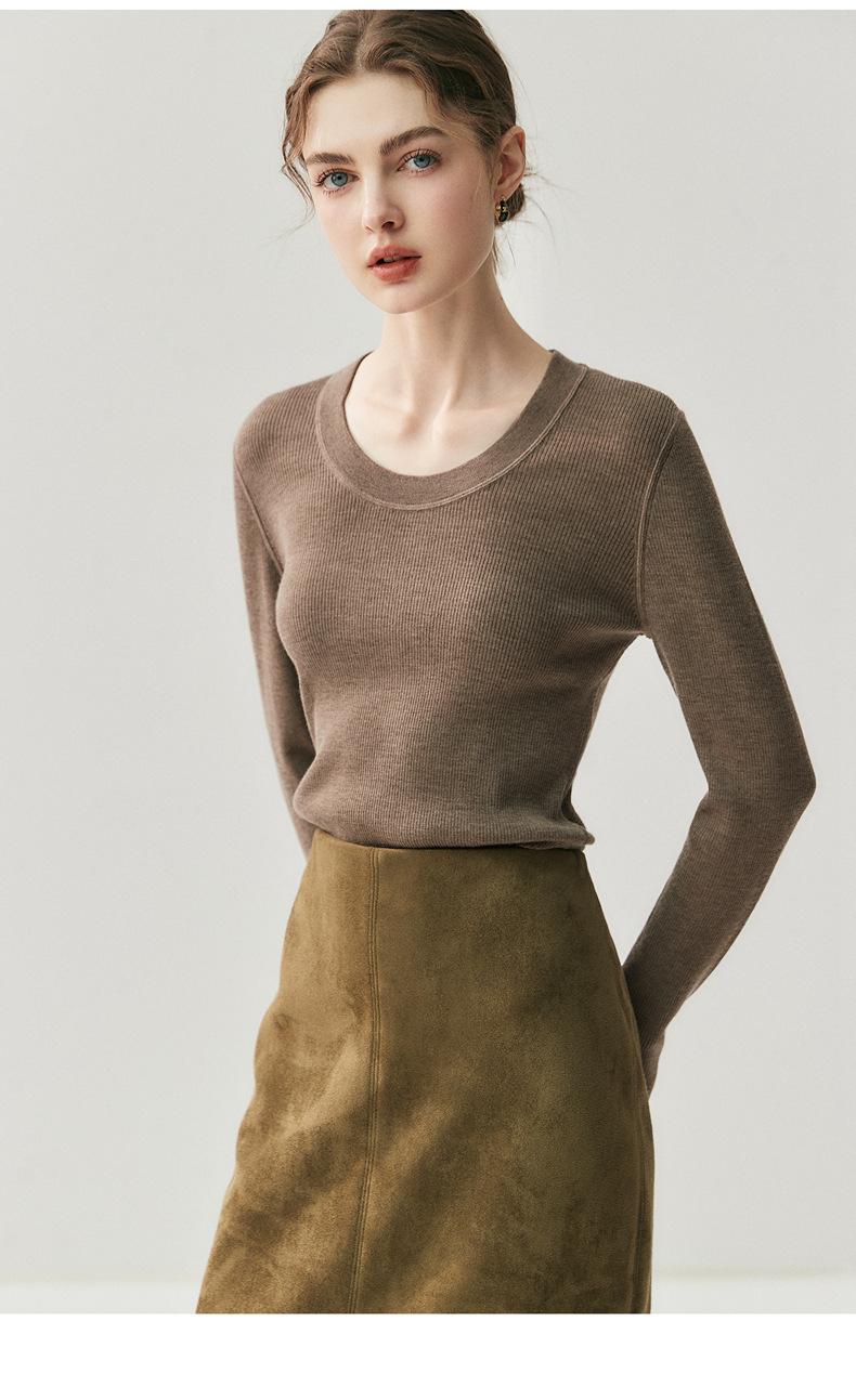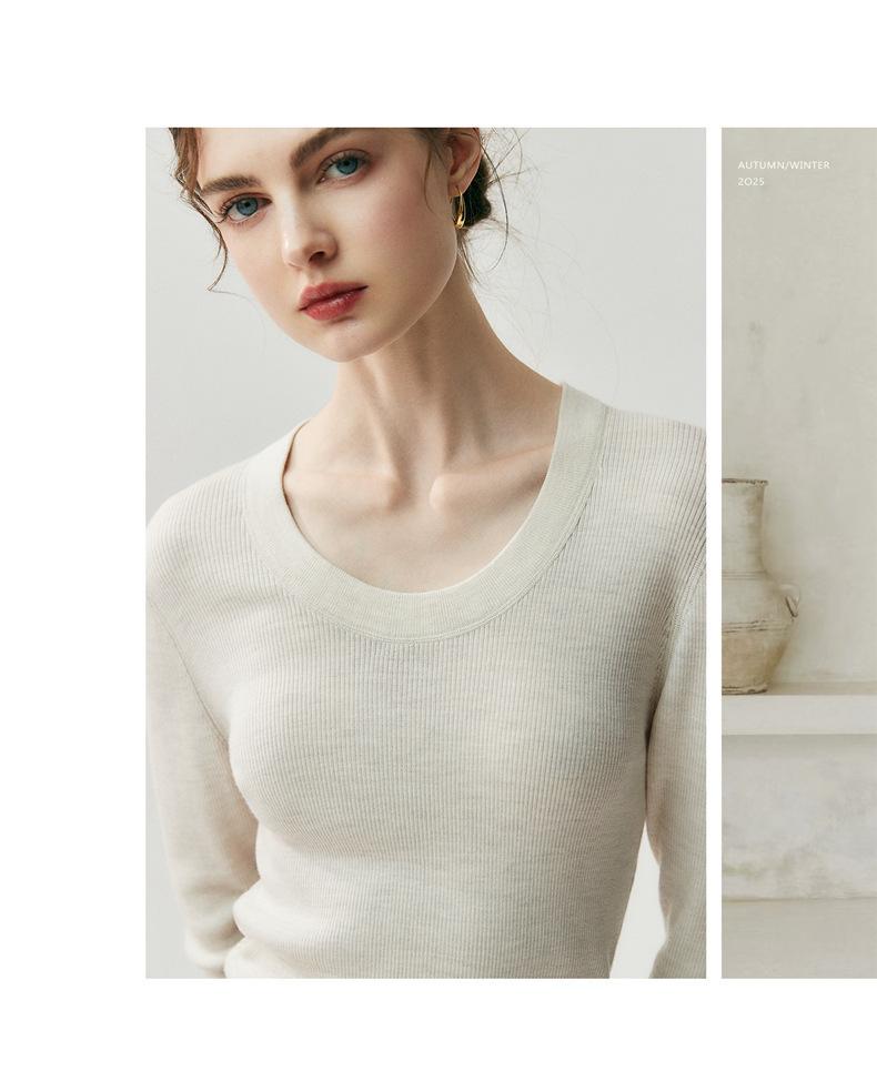 Nuevo Otoño/Invierno Hilo Alemán Yangtze Imitación Merino Estambre Lana Cuello U Tejido Capa Base Suéter de Mujer Ajustado