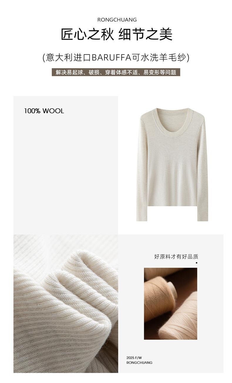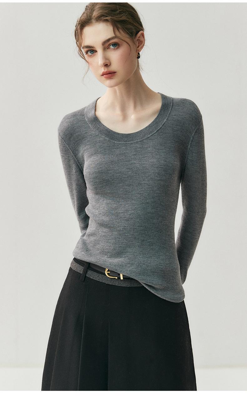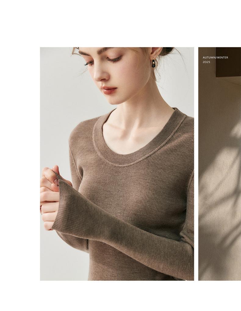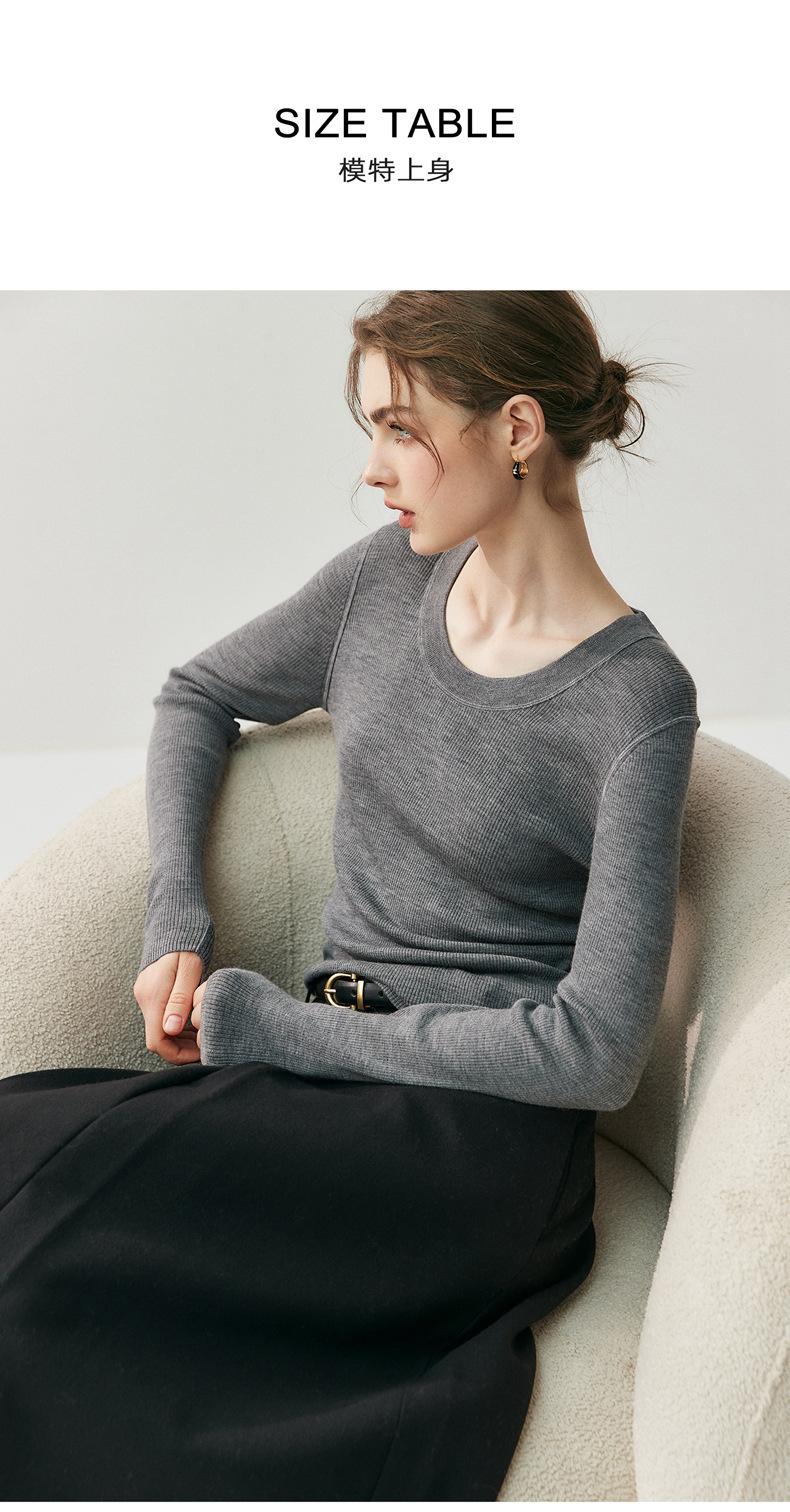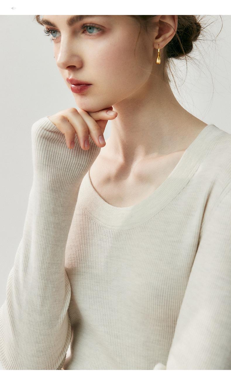Nuevo Otoño/Invierno Hilo Alemán Yangtze Imitación Merino Estambre Lana Cuello U Tejido Capa Base Suéter de Mujer Ajustado