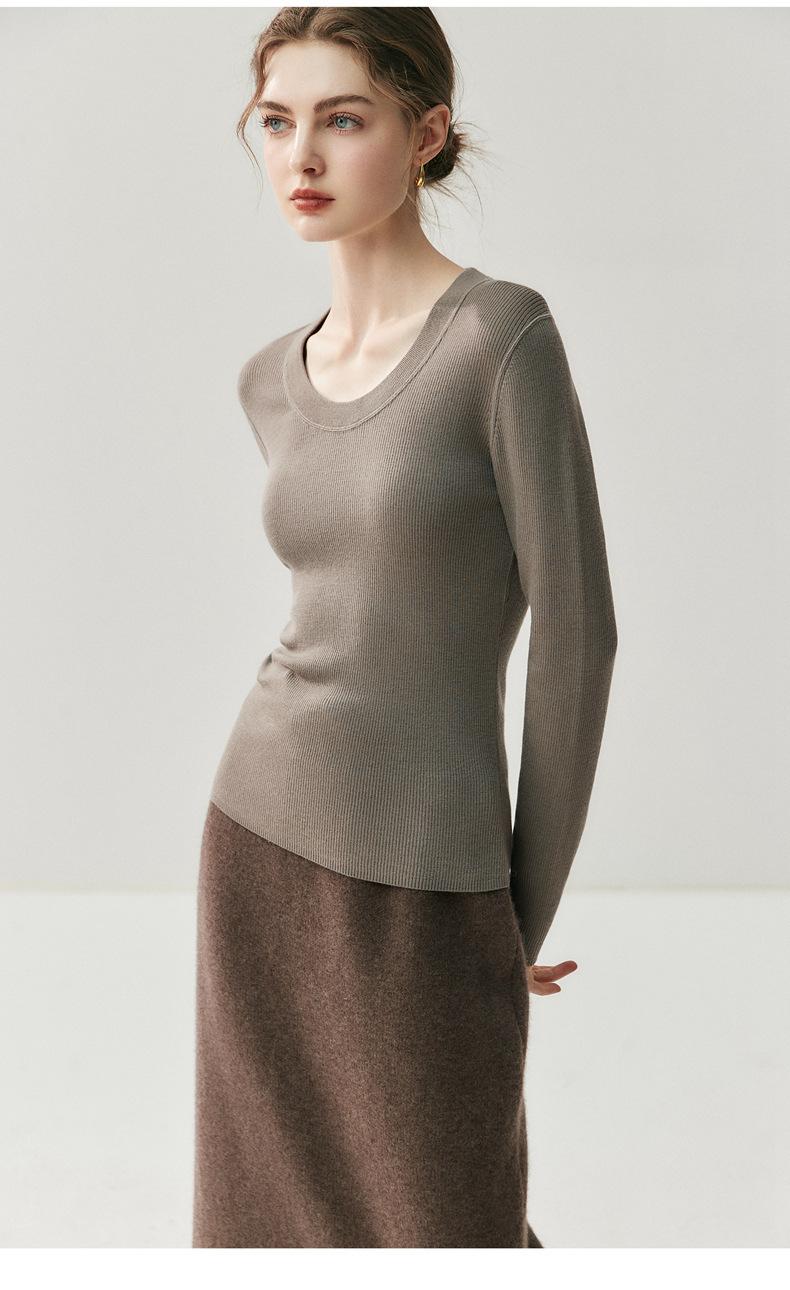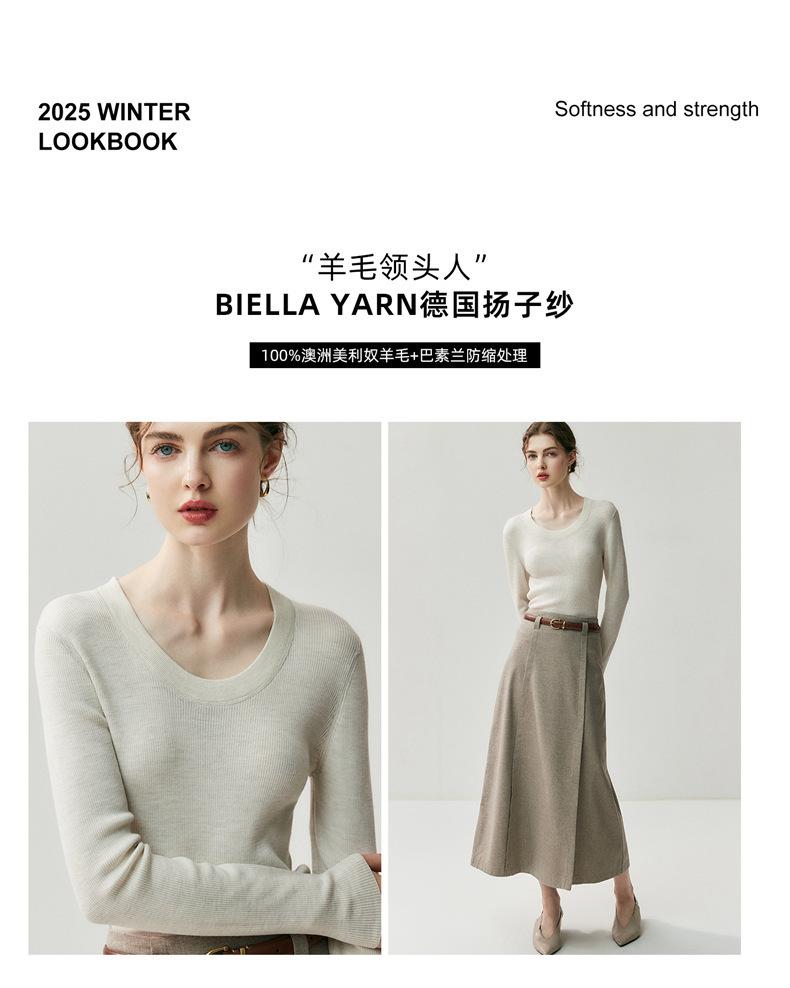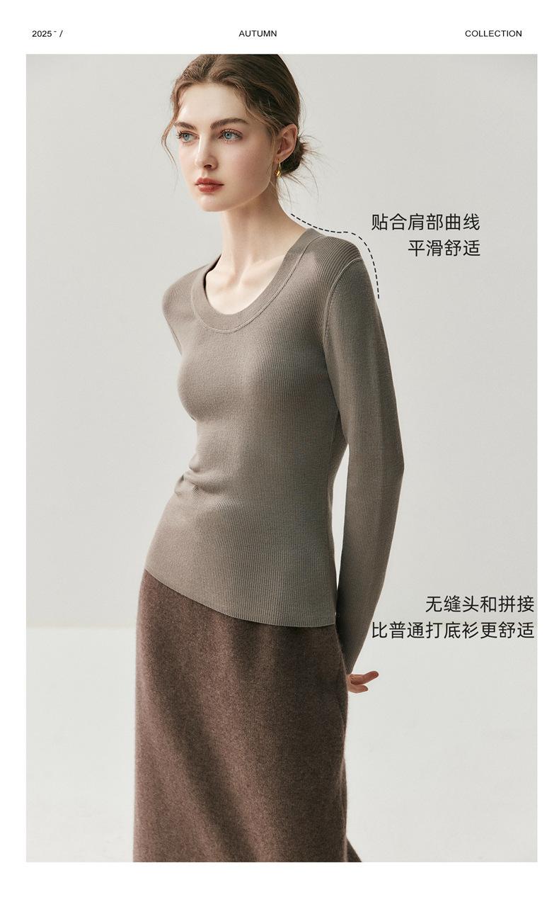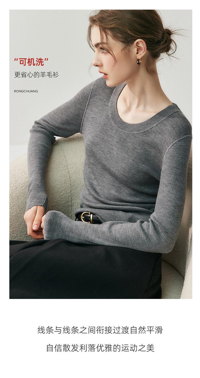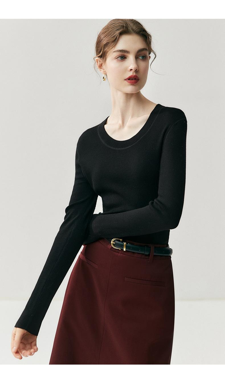 Nuevo Otoño/Invierno Hilo Alemán Yangtze Imitación Merino Estambre Lana Cuello U Tejido Capa Base Suéter de Mujer Ajustado