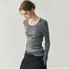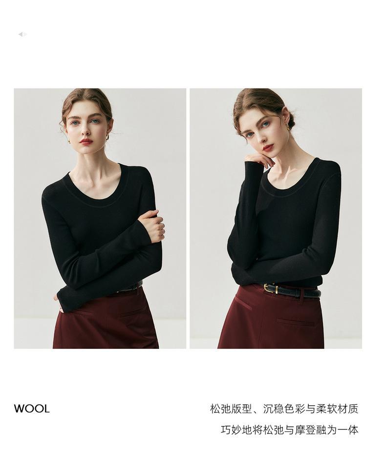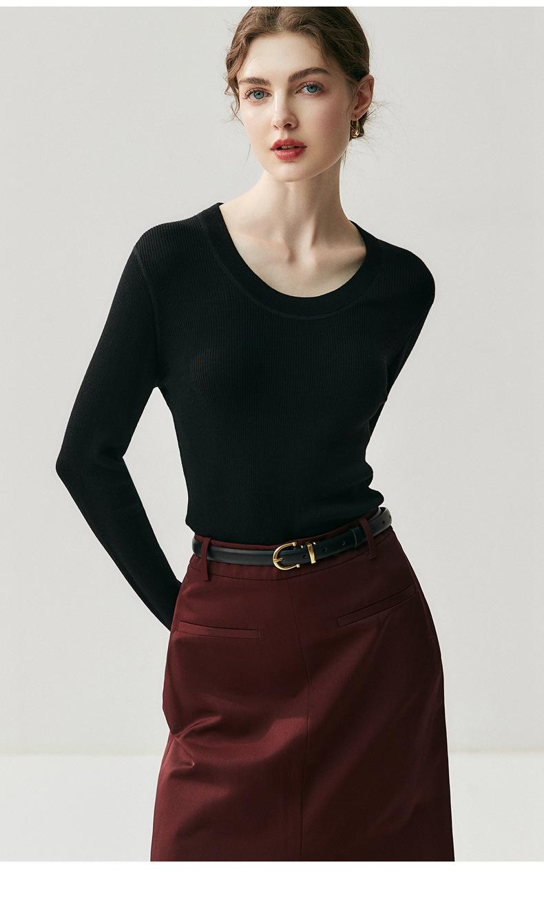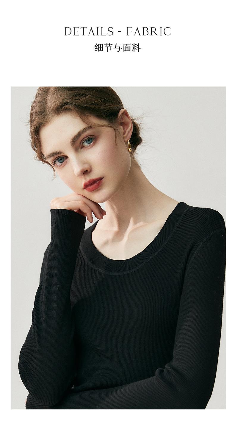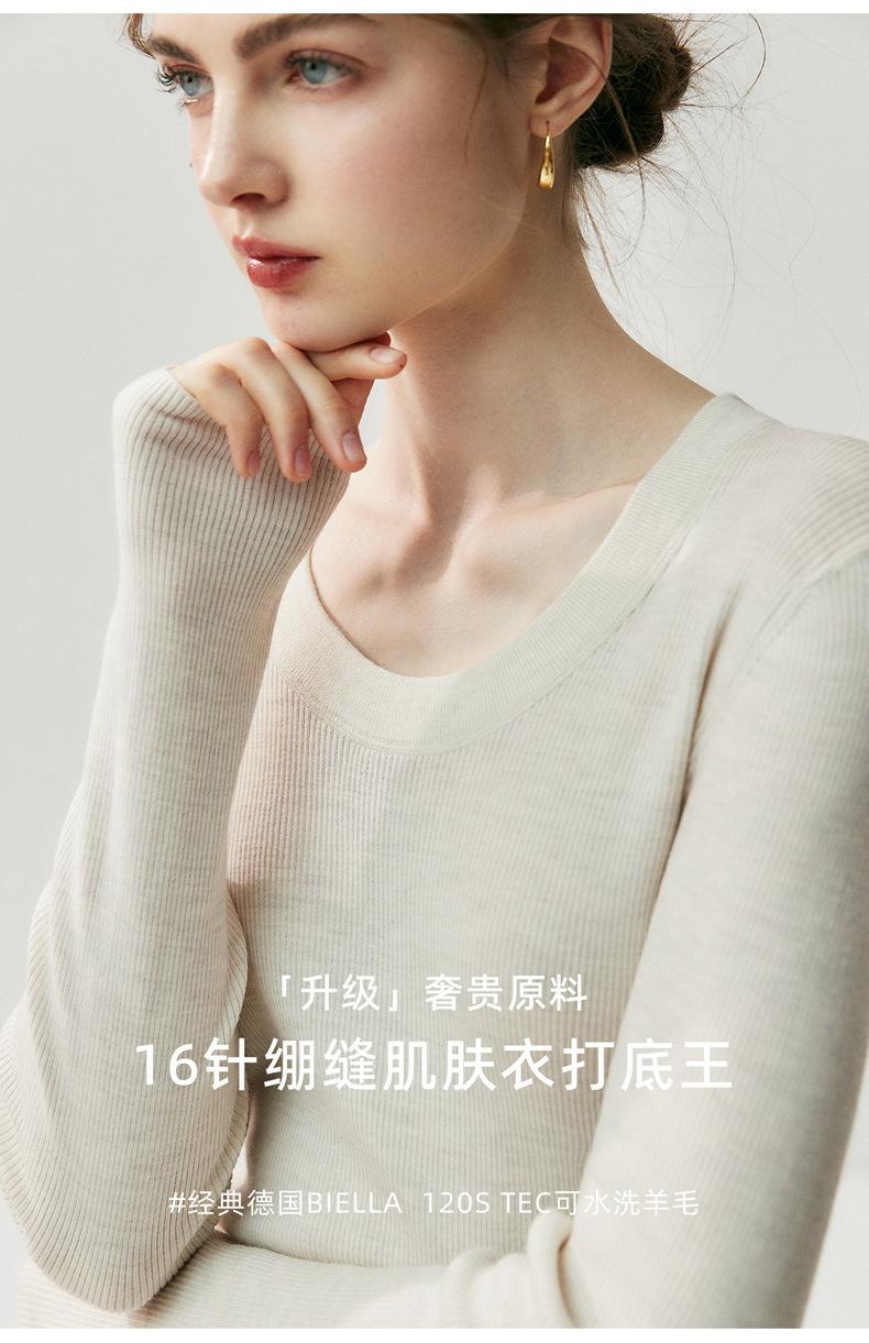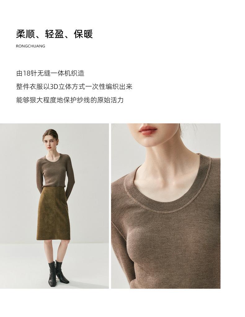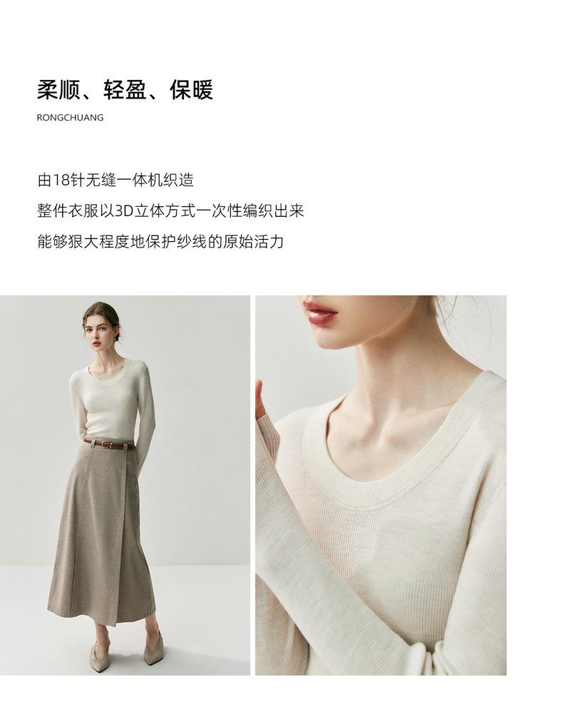 Nuevo Otoño/Invierno Hilo Alemán Yangtze Imitación Merino Estambre Lana Cuello U Tejido Capa Base Suéter de Mujer Ajustado