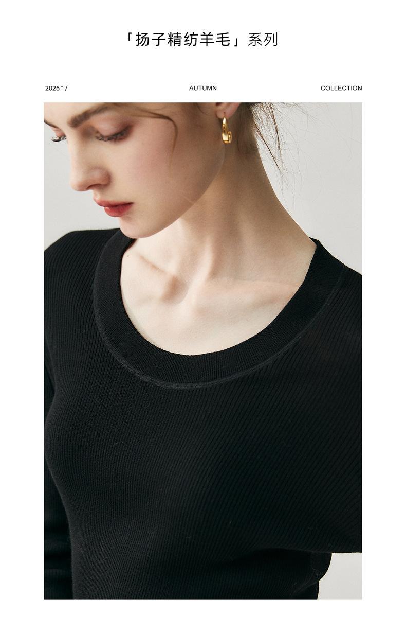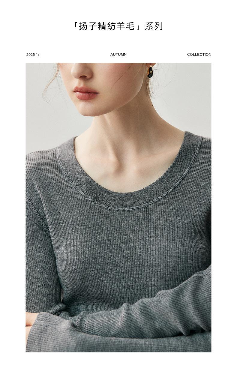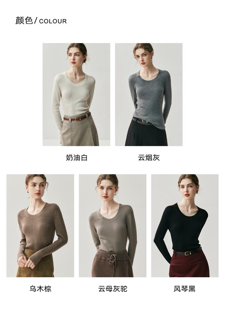 Nuevo Suéter de Lana Hilada Fina Yangtze Otoño/Invierno para Mujer Cuello U Tejido Base Adelgazante Color Sólido Jersey