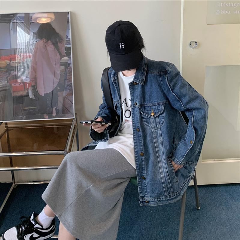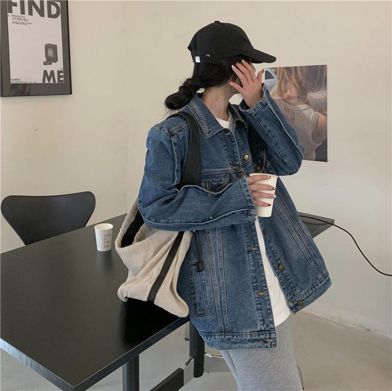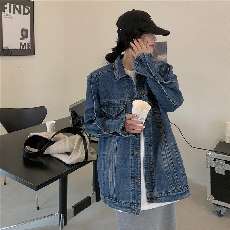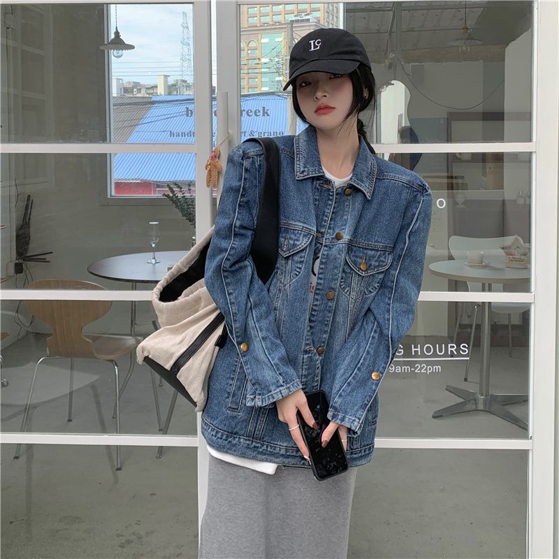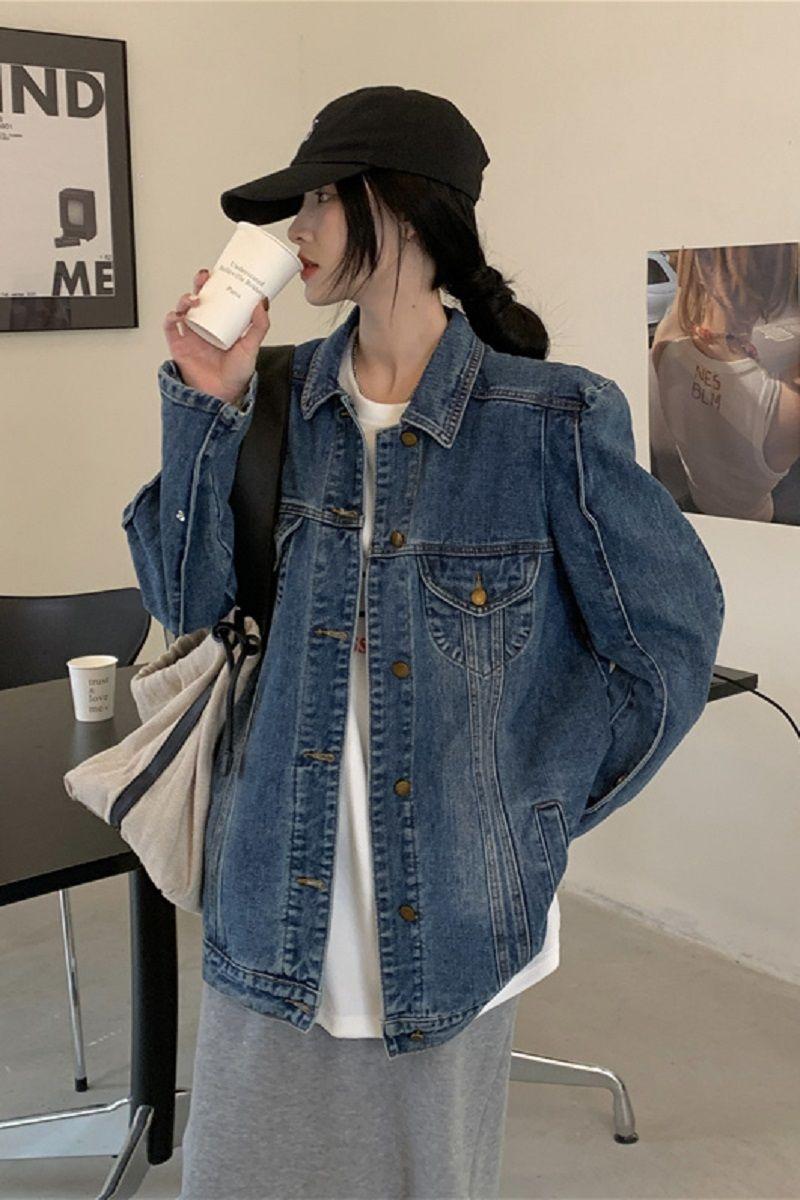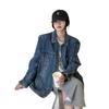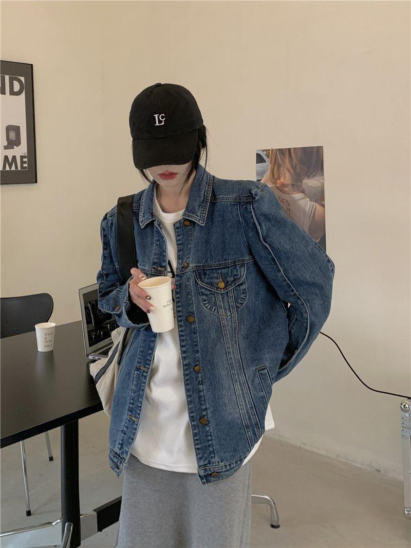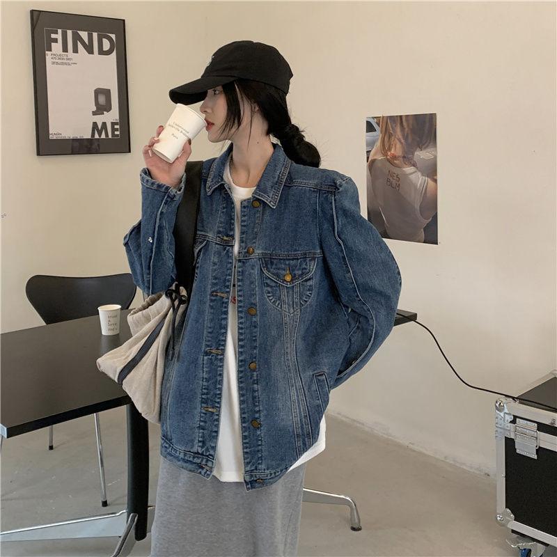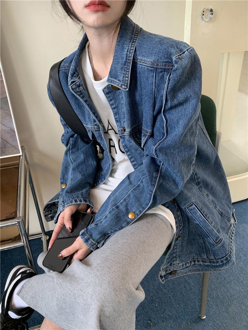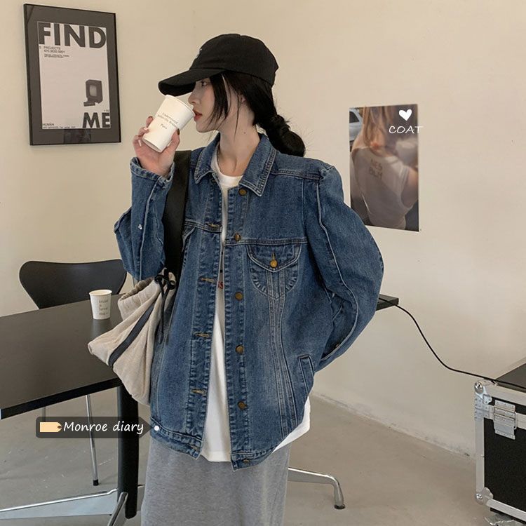 Chaqueta vaquera de largo medio con hombros rectos estilo callejero retro para mujer 2025 nueva primavera versión coreana top casual holgado