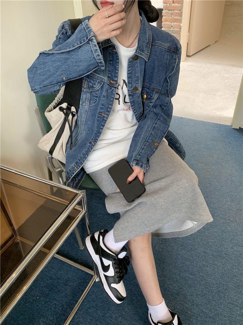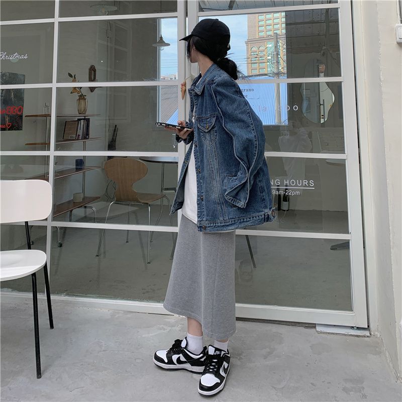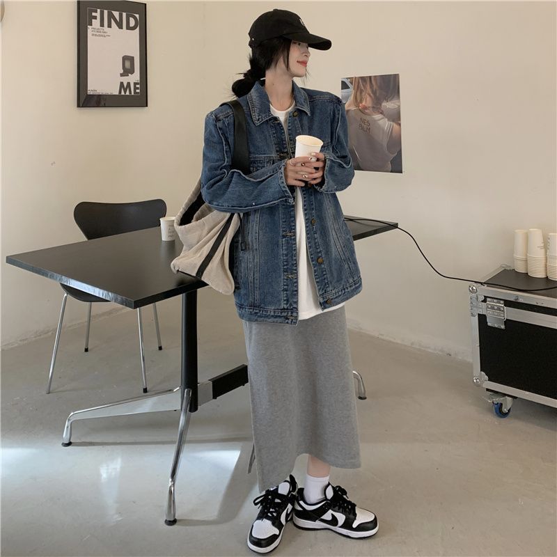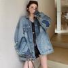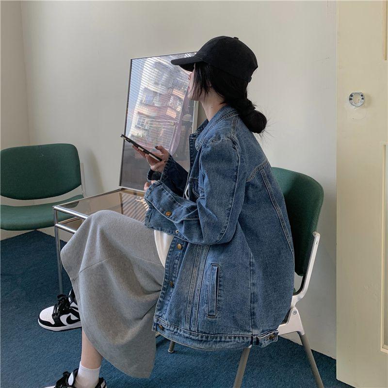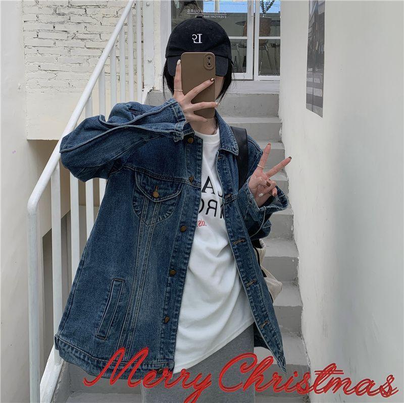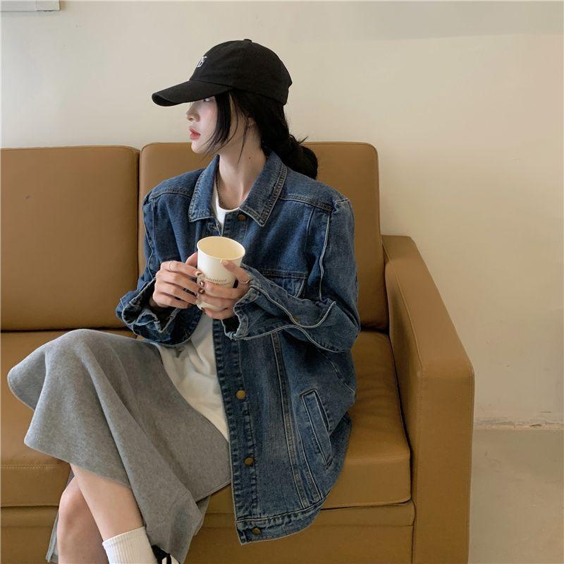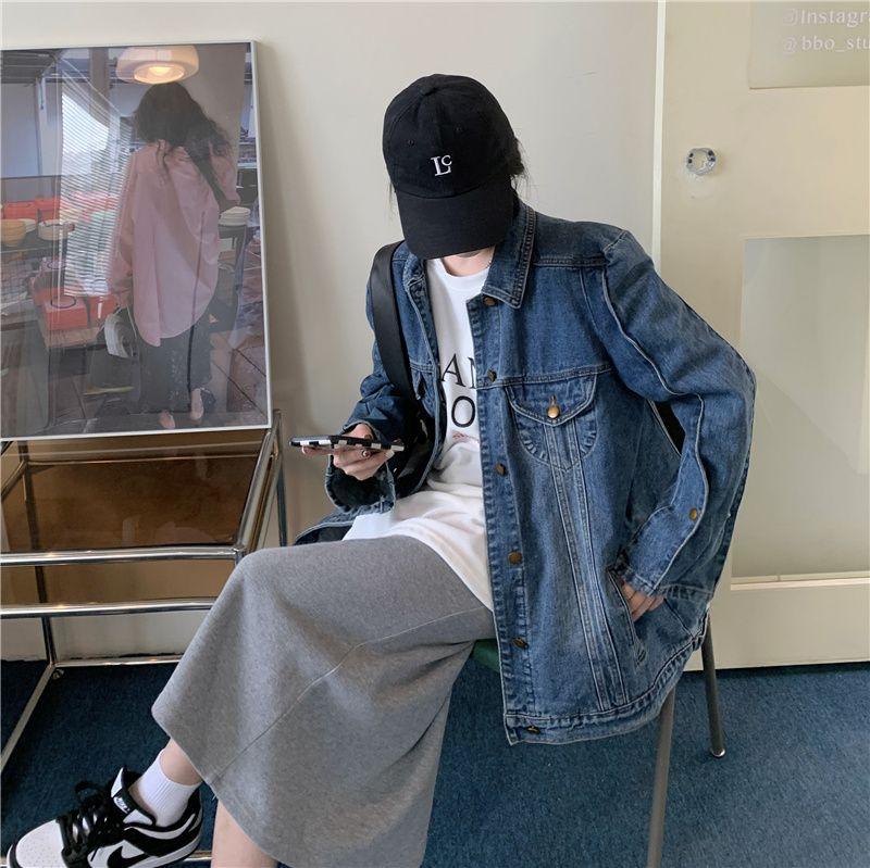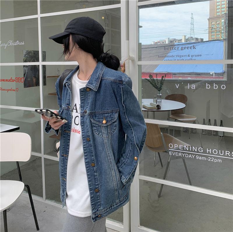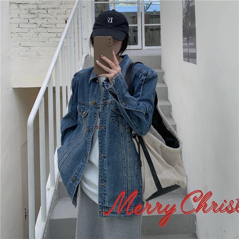 Chaqueta vaquera de largo medio con hombros rectos estilo callejero retro para mujer 2025 nueva primavera versión coreana top casual holgado