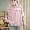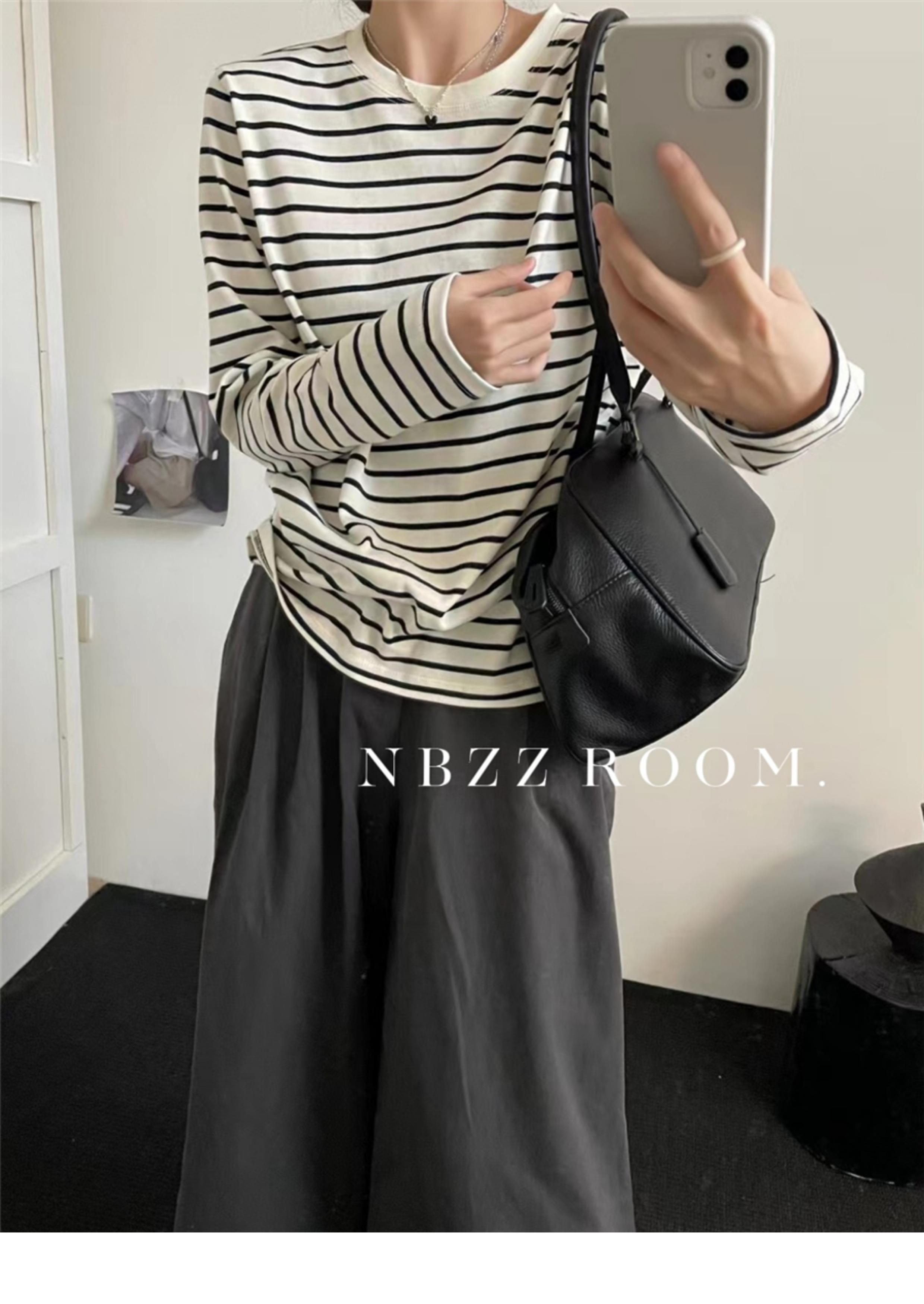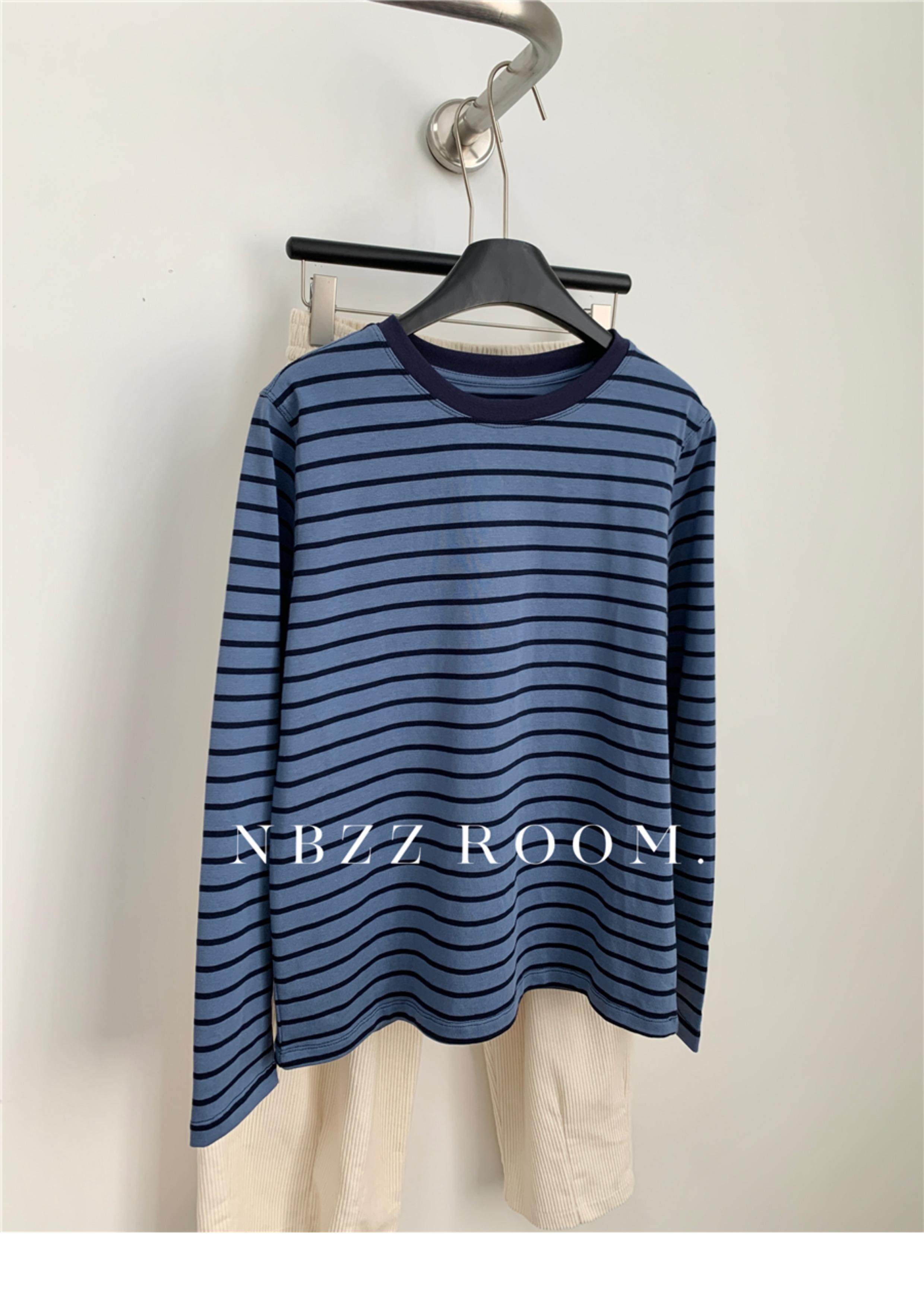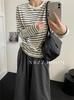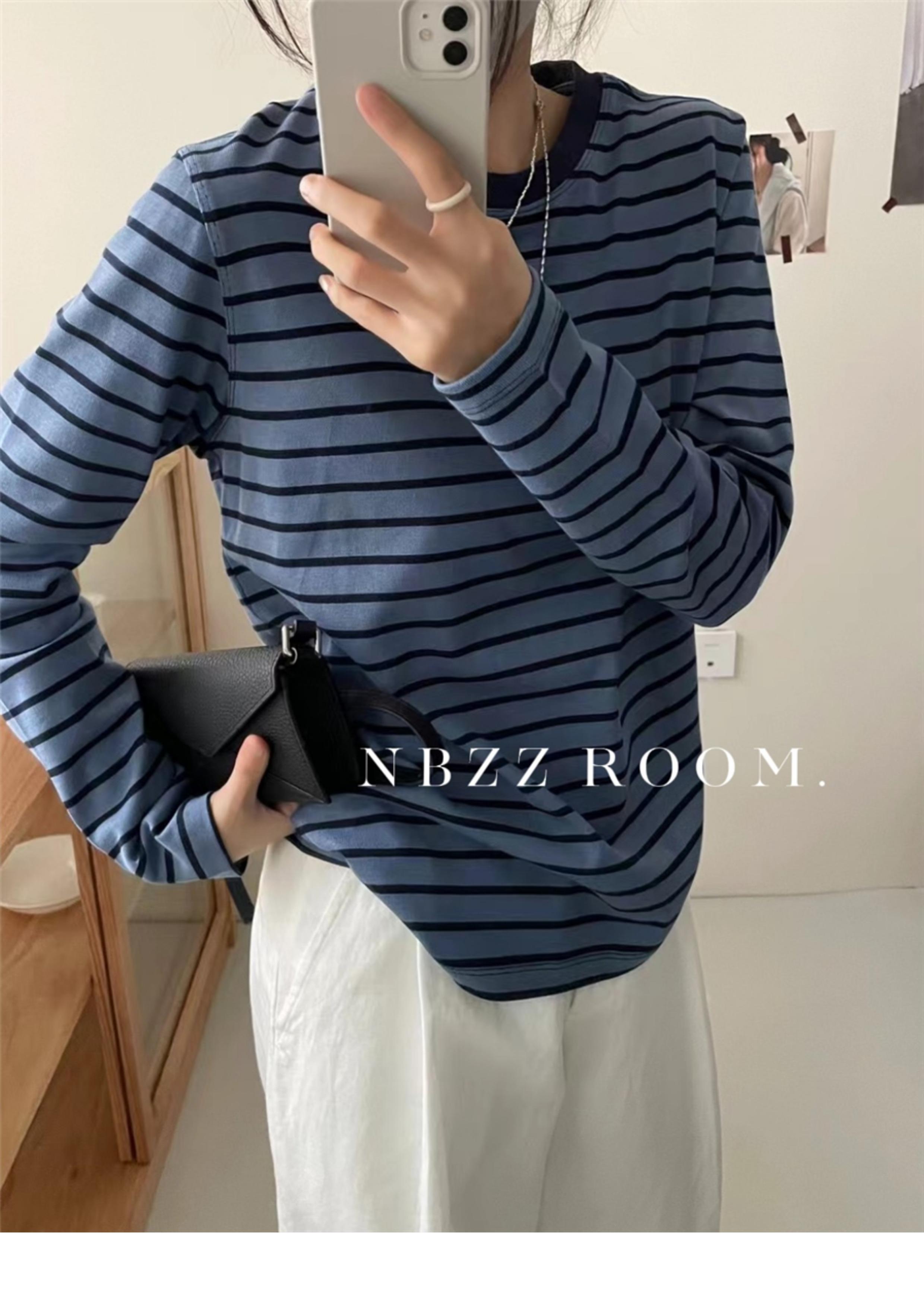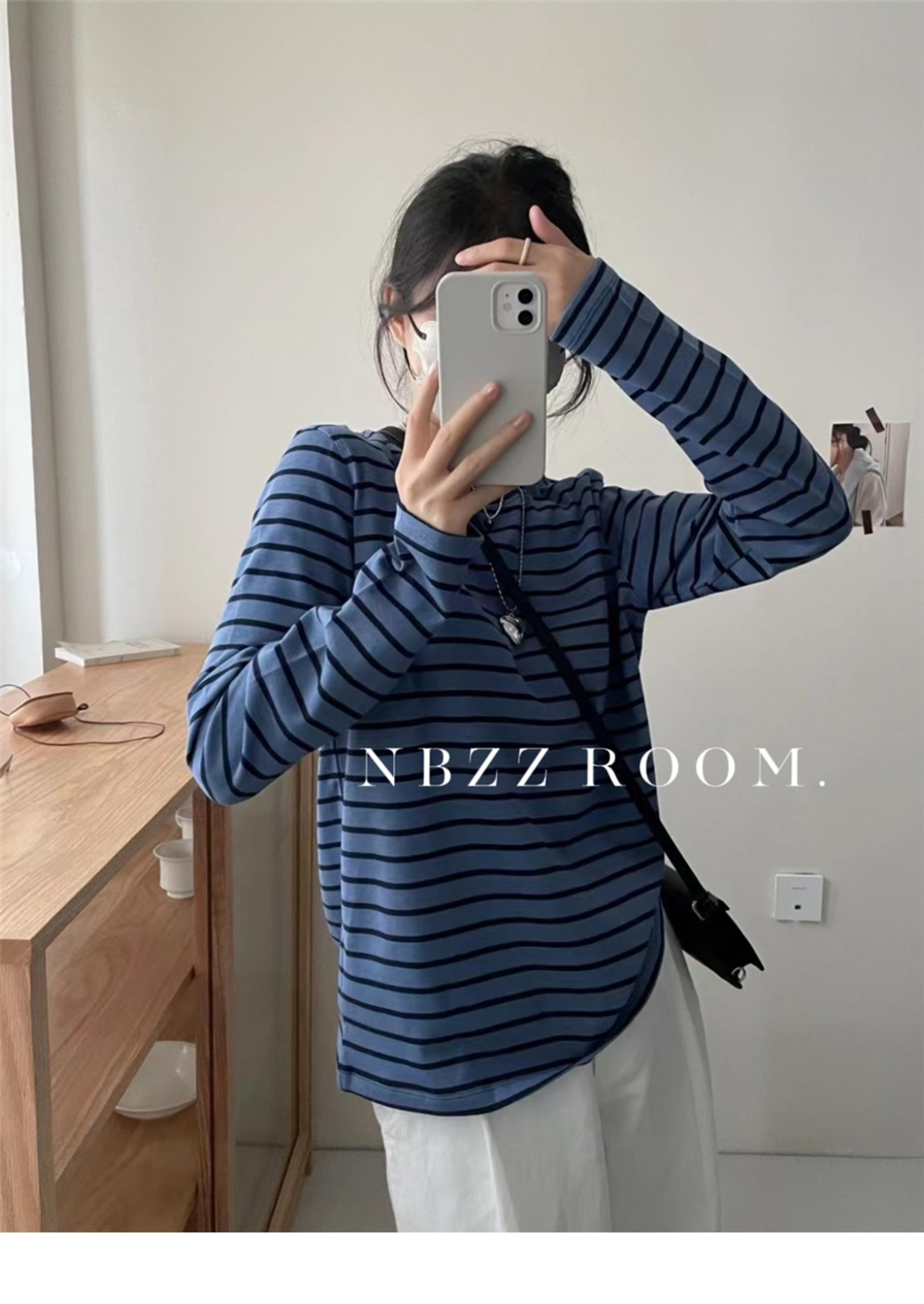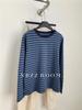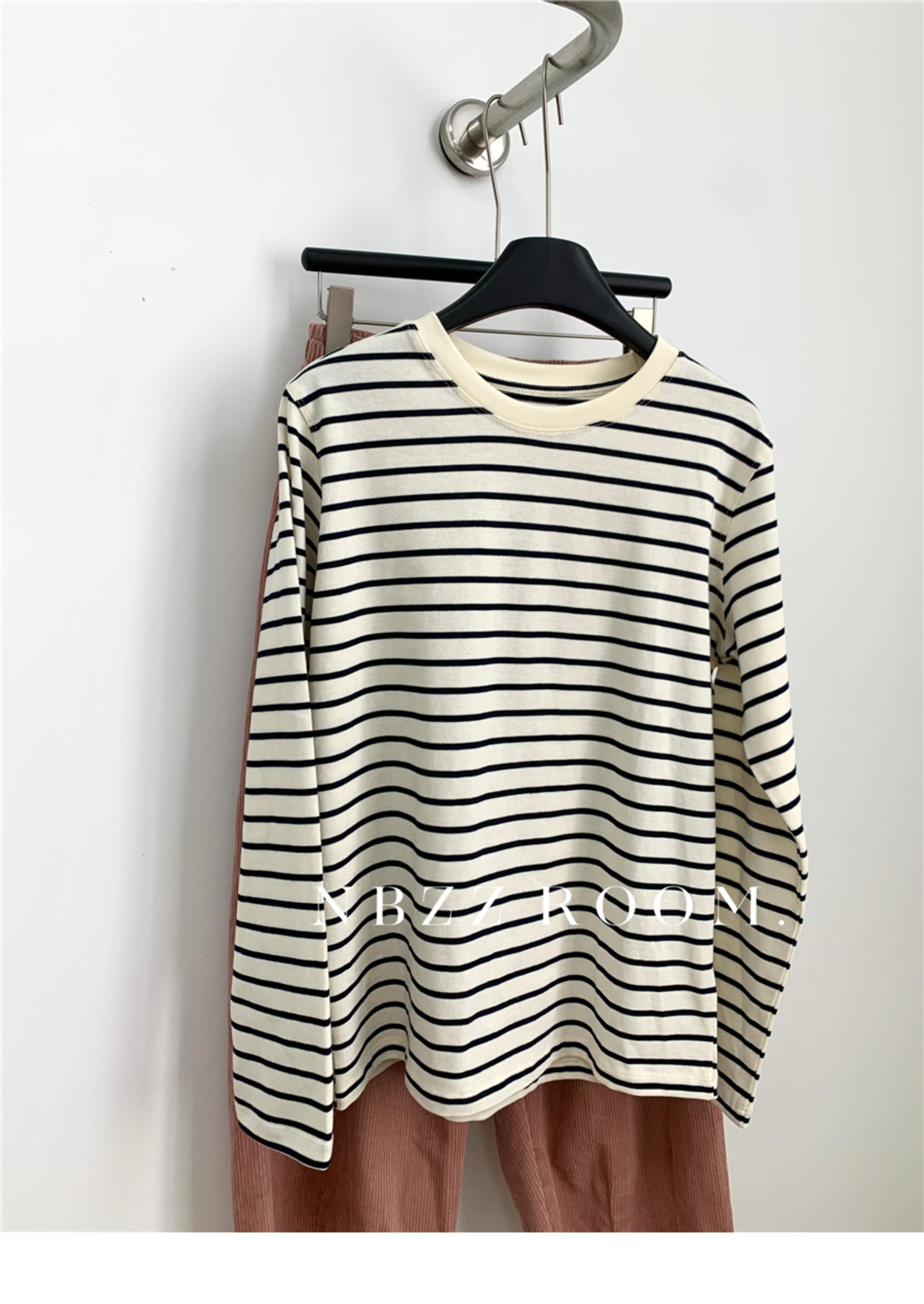 2024 Otoño e Invierno/Estilo Retro Occidental Camiseta de Manga Larga a Rayas de Color en Contraste para Mujer Coreana Casual Suelta Cuello Redondo Camiseta Básica Top