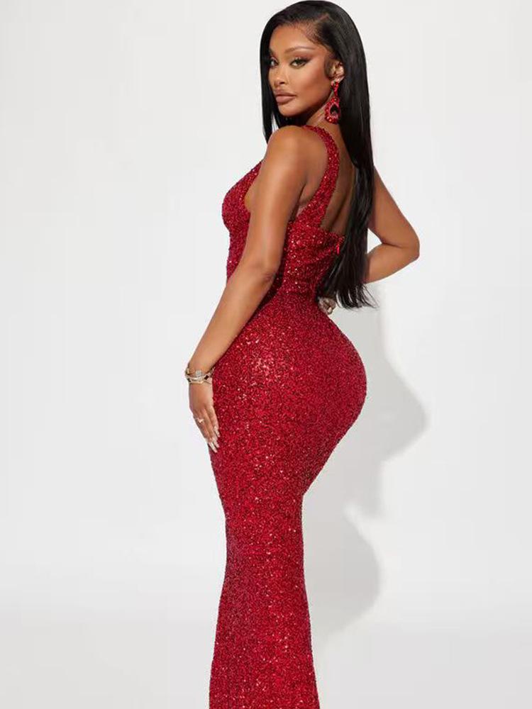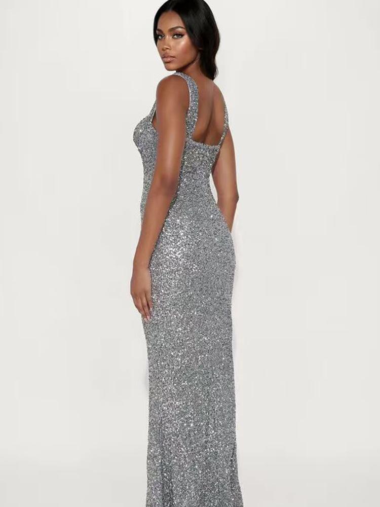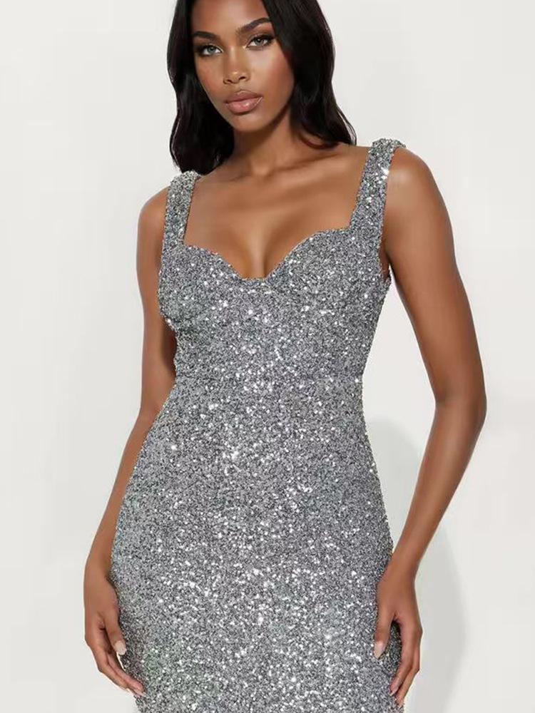 Nuevos Tirantes Europeos y Americanos Lentejuelas Cuentas Envolvente de Cadera Lentejuelas Hermoso Vestido Fiesta Estilo Socialité Ropa de Mujer Vestido Bodycon