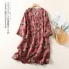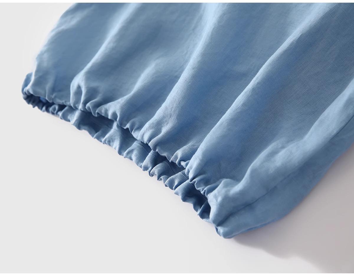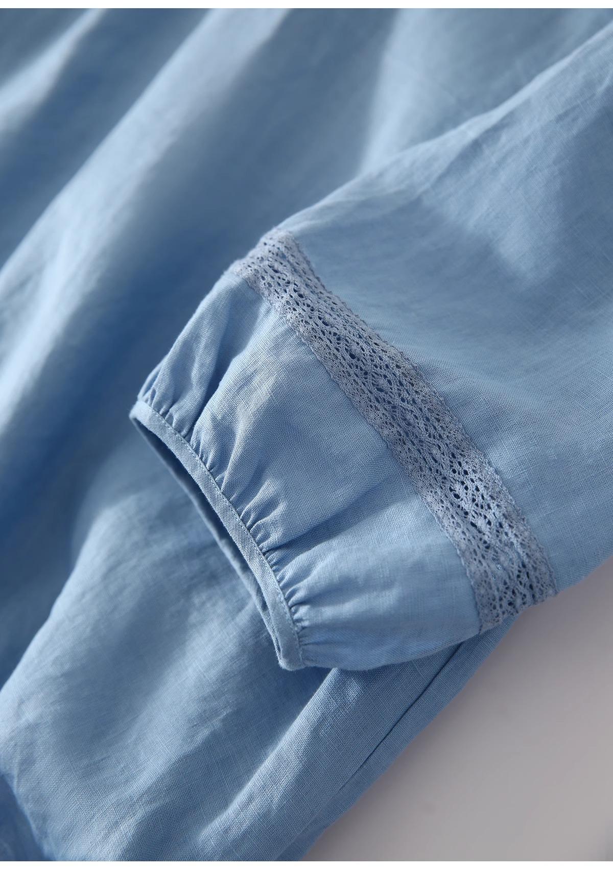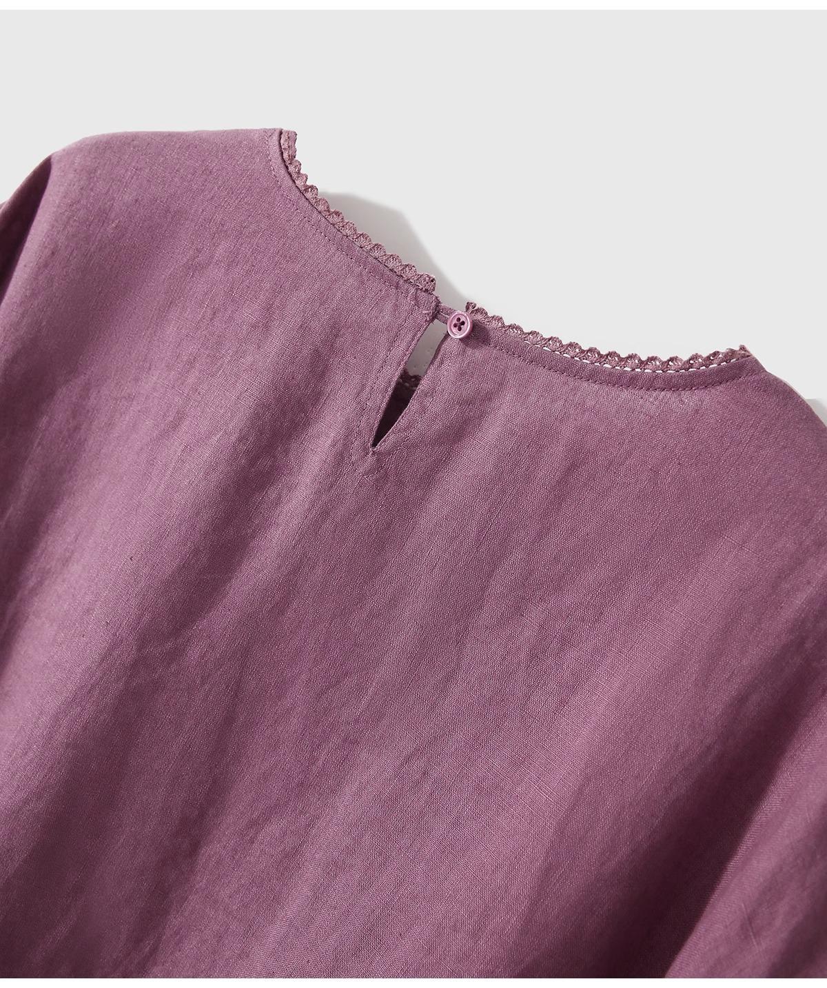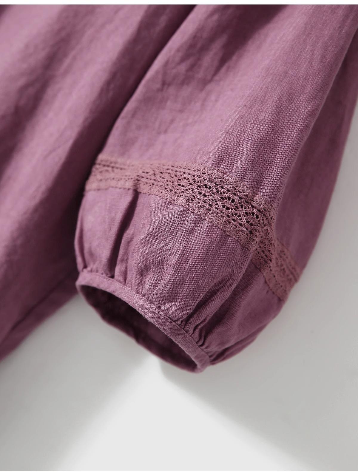 Camiseta pequeña de lino fresco y suave con arte, manga abullonada siete, cuello redondo, top, camiseta, ropa nueva de verano para mujer 2025