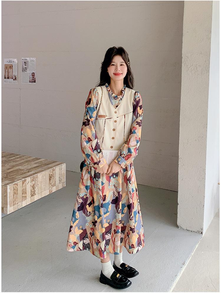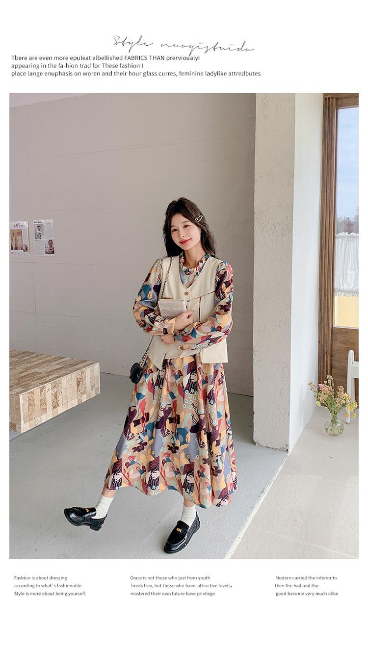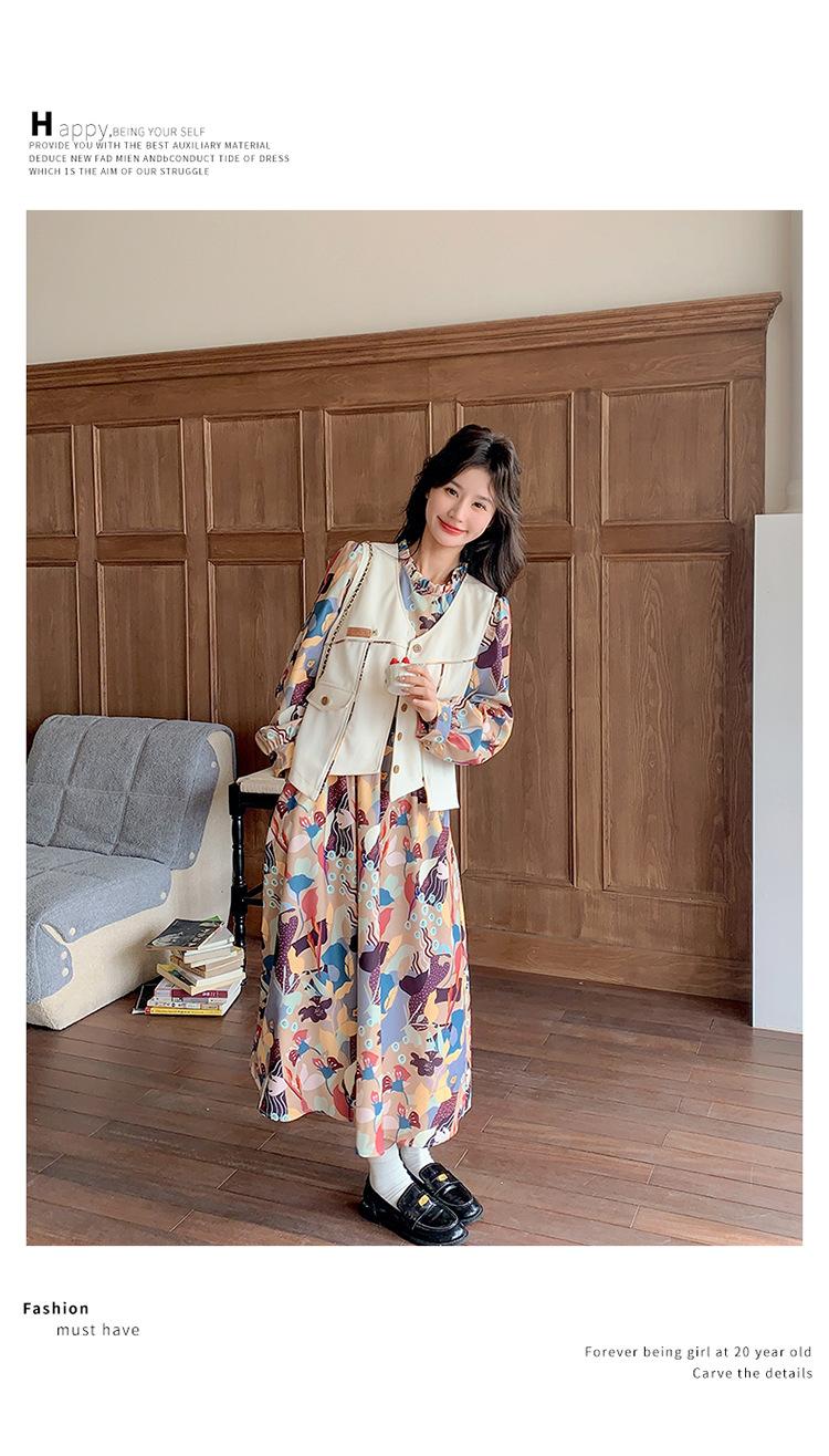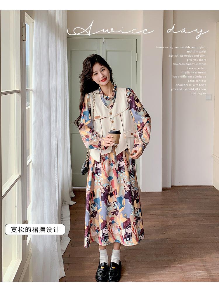 Vestido de dos piezas para mujer estilo primavera y otoño 2025 nuevo estilo reductor de edad versátil cómodo vestido chaleco de dos piezas moderno