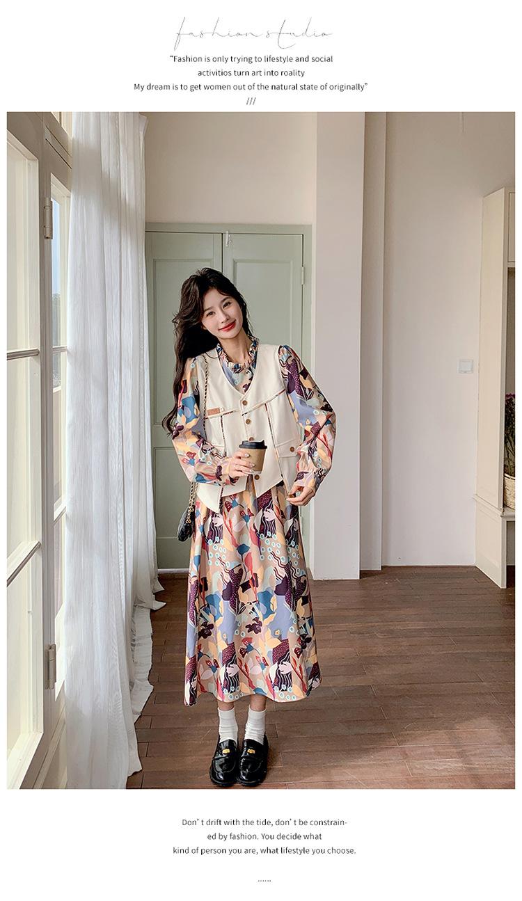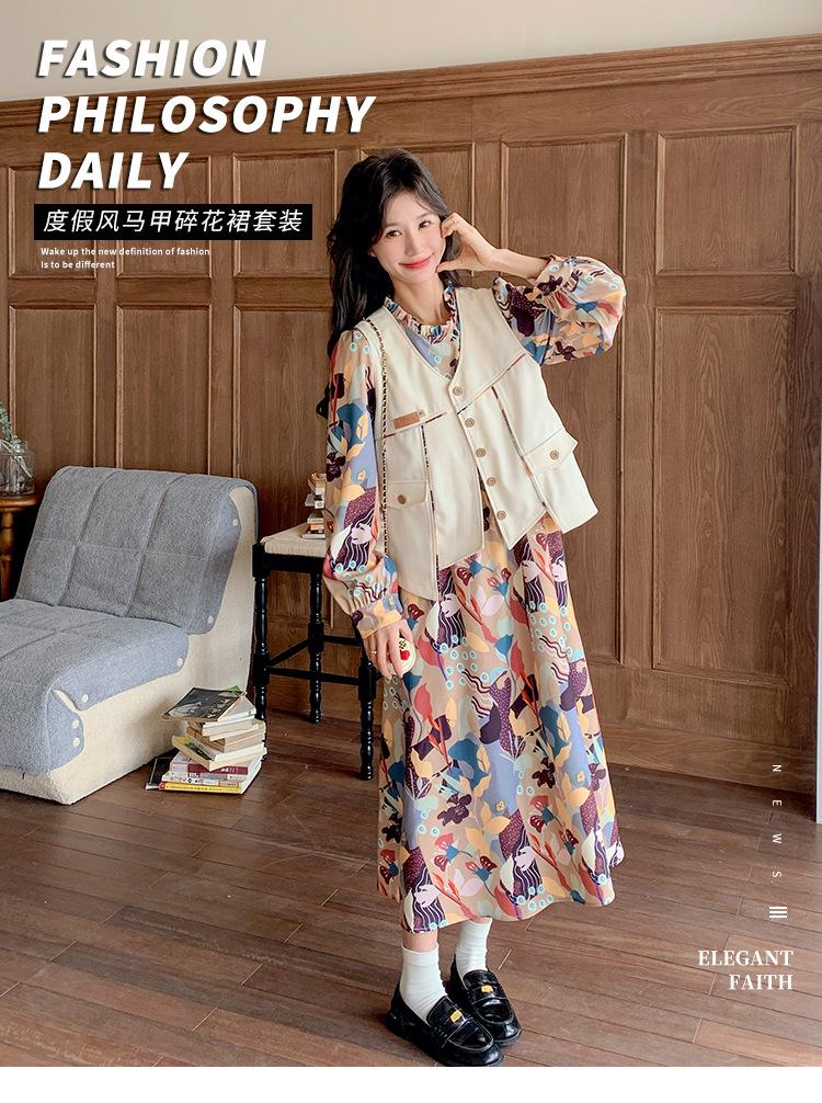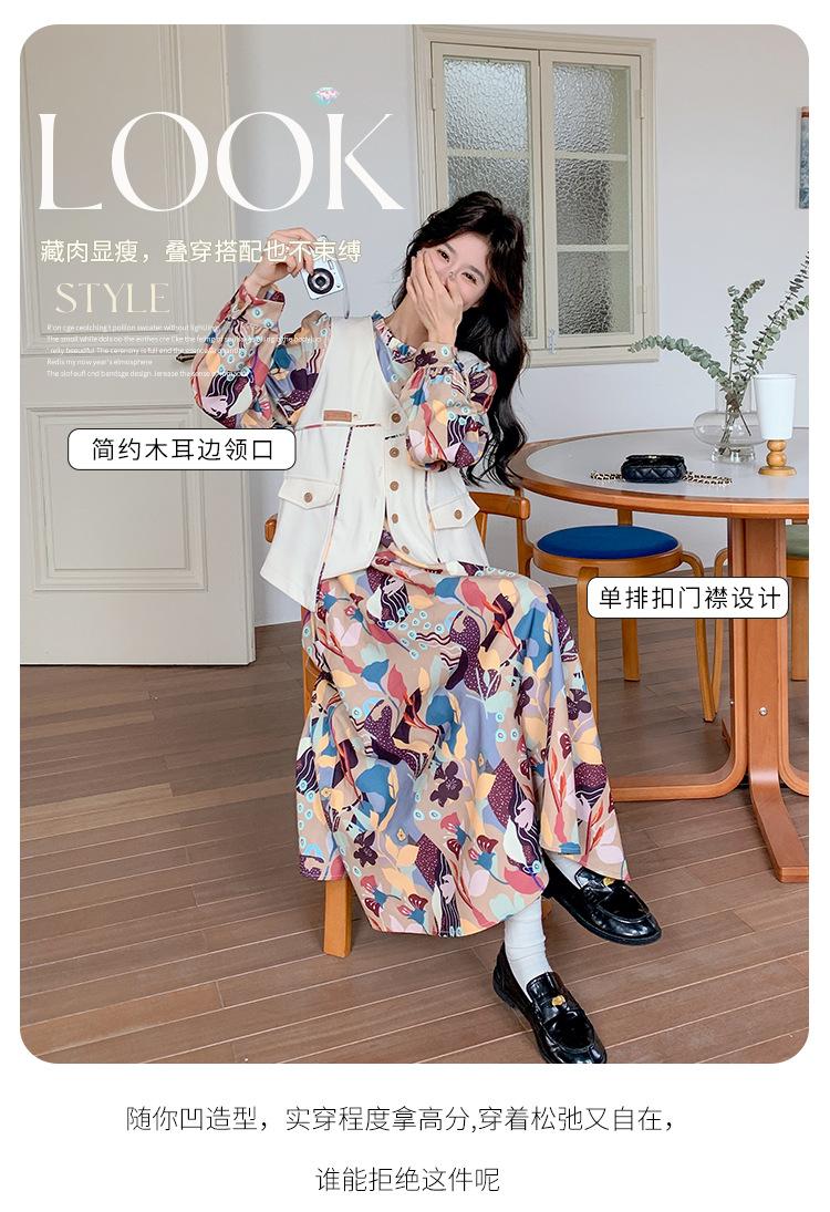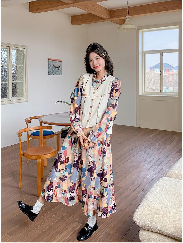 Vestido de dos piezas para mujer estilo primavera y otoño 2025 nuevo estilo reductor de edad versátil cómodo vestido chaleco de dos piezas moderno