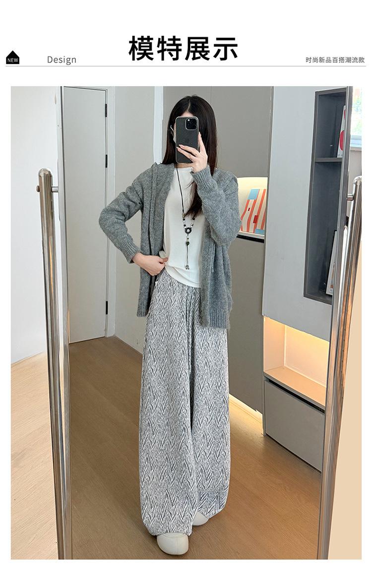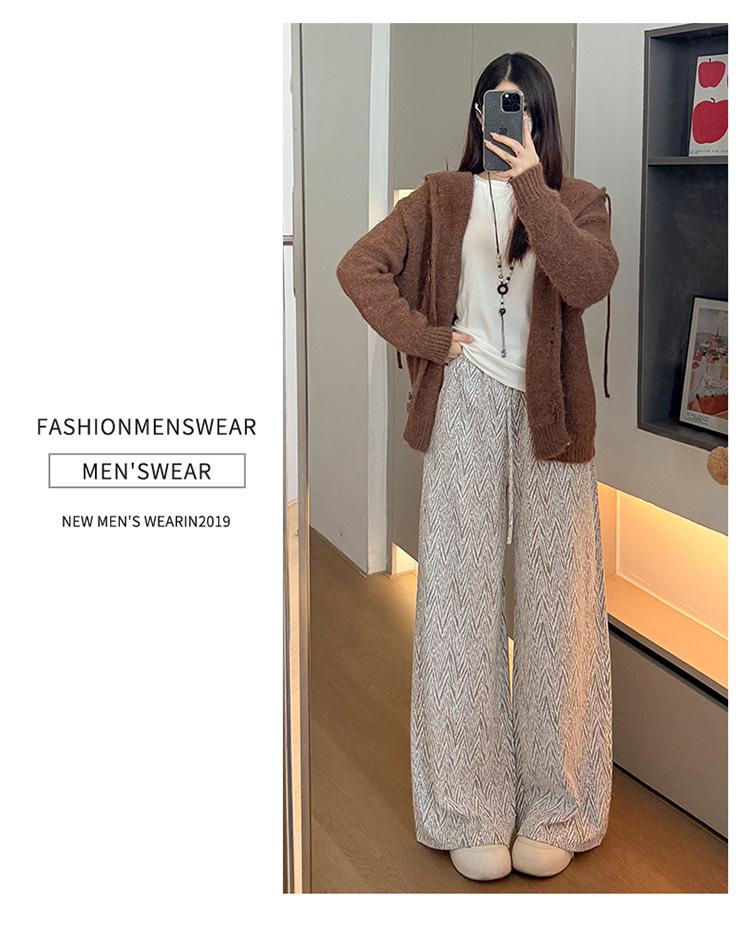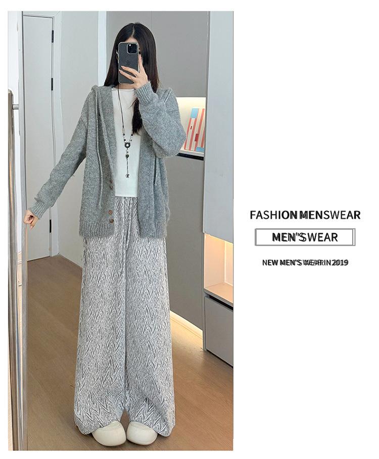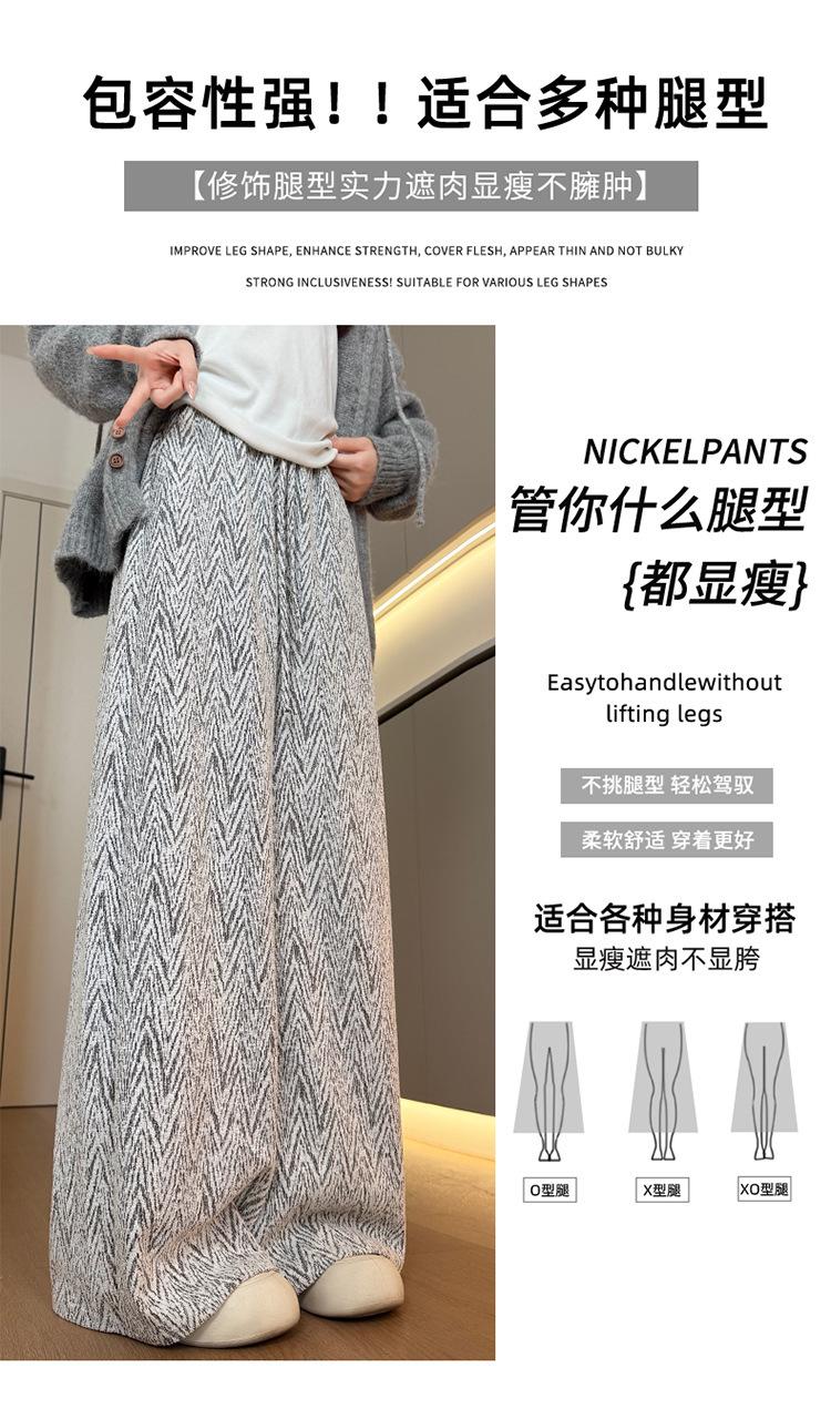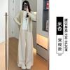 Pantalones grises de pierna ancha estilo Chanel para mujer otoño 2025 nuevos petite de talle alto adelgazantes casuales estilo holgazán de pierna recta