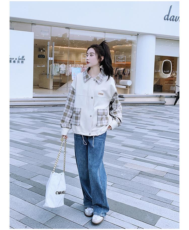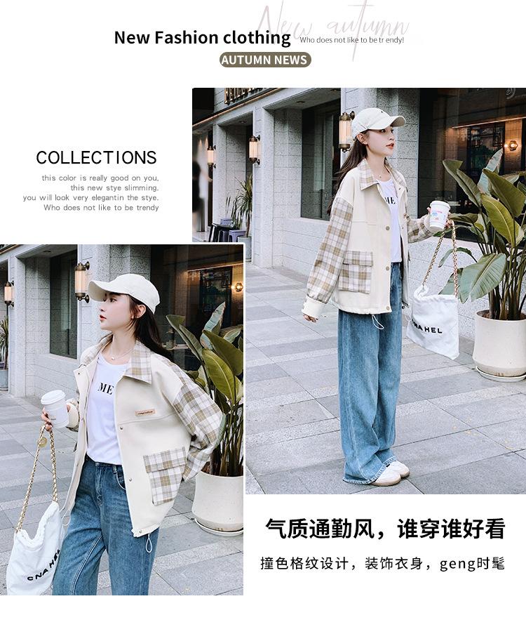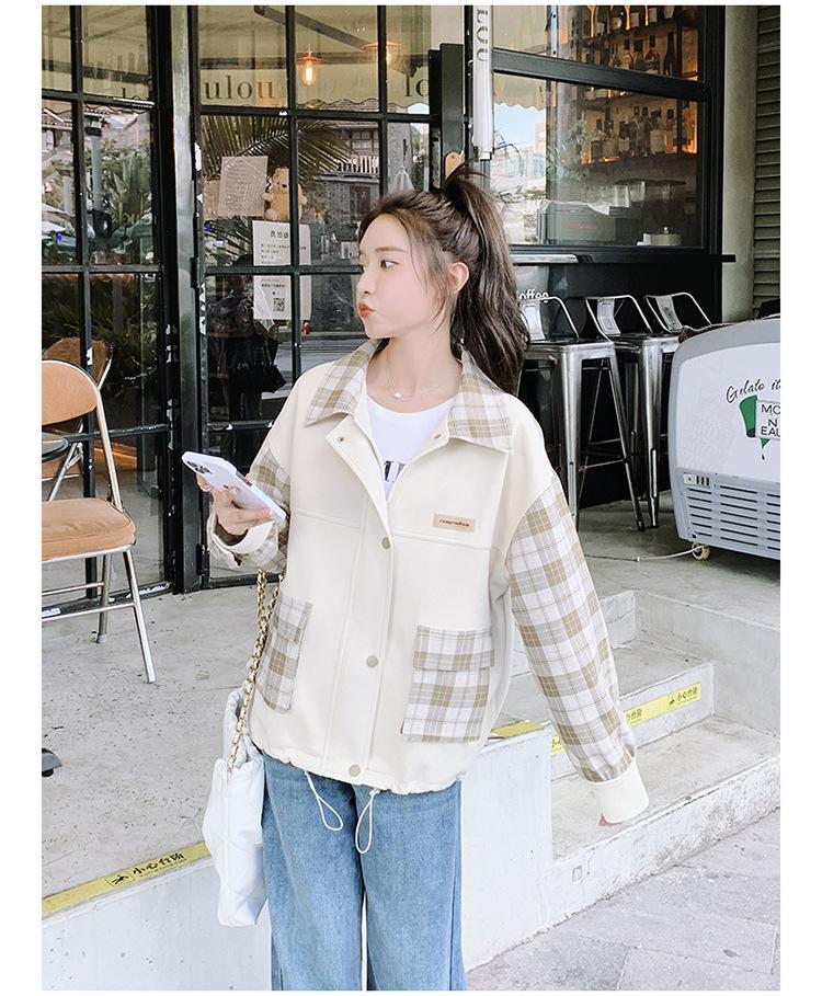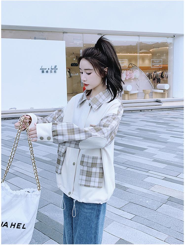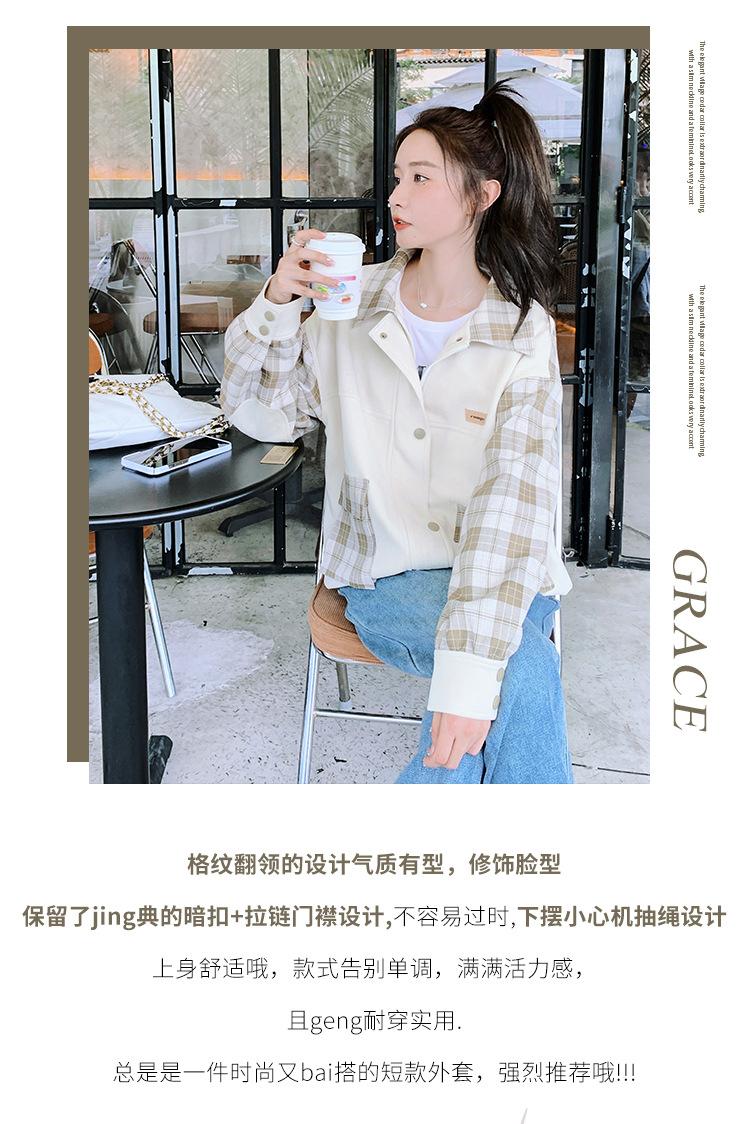 Novedades Primavera y Otoño 2025 Reductor de Edad Versátil Cómodo y Respetuoso con la Piel Mejora de la Calidad Chaqueta Corta de Retazos a Cuadros Tendencia