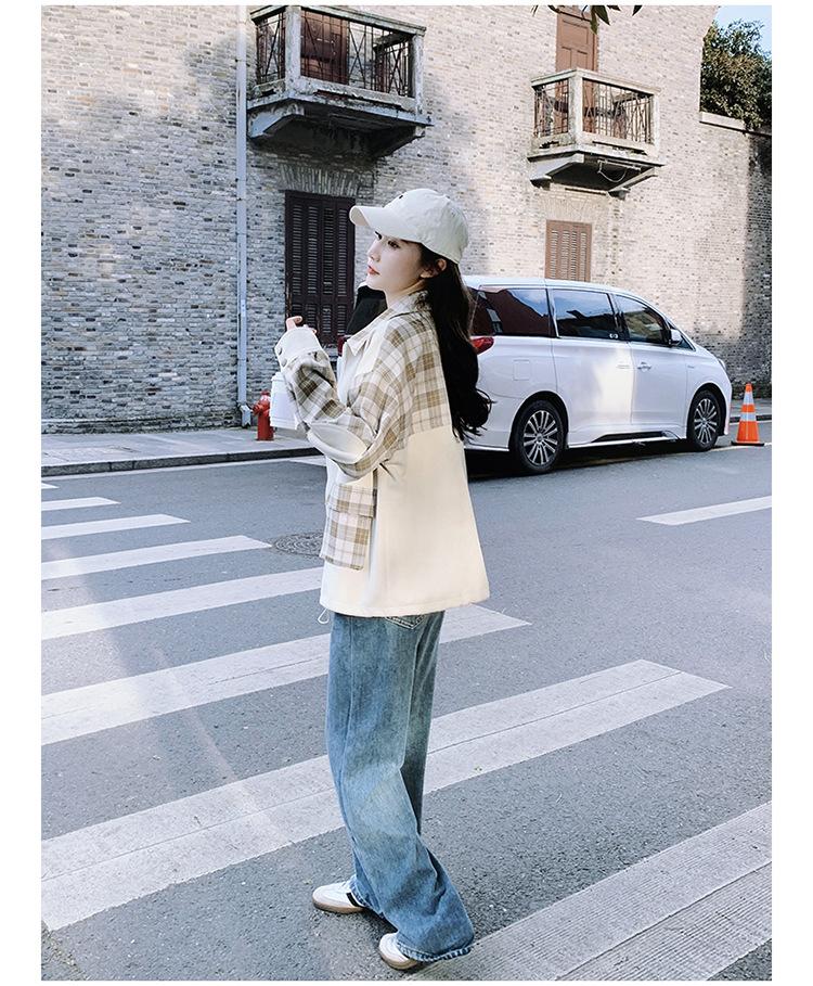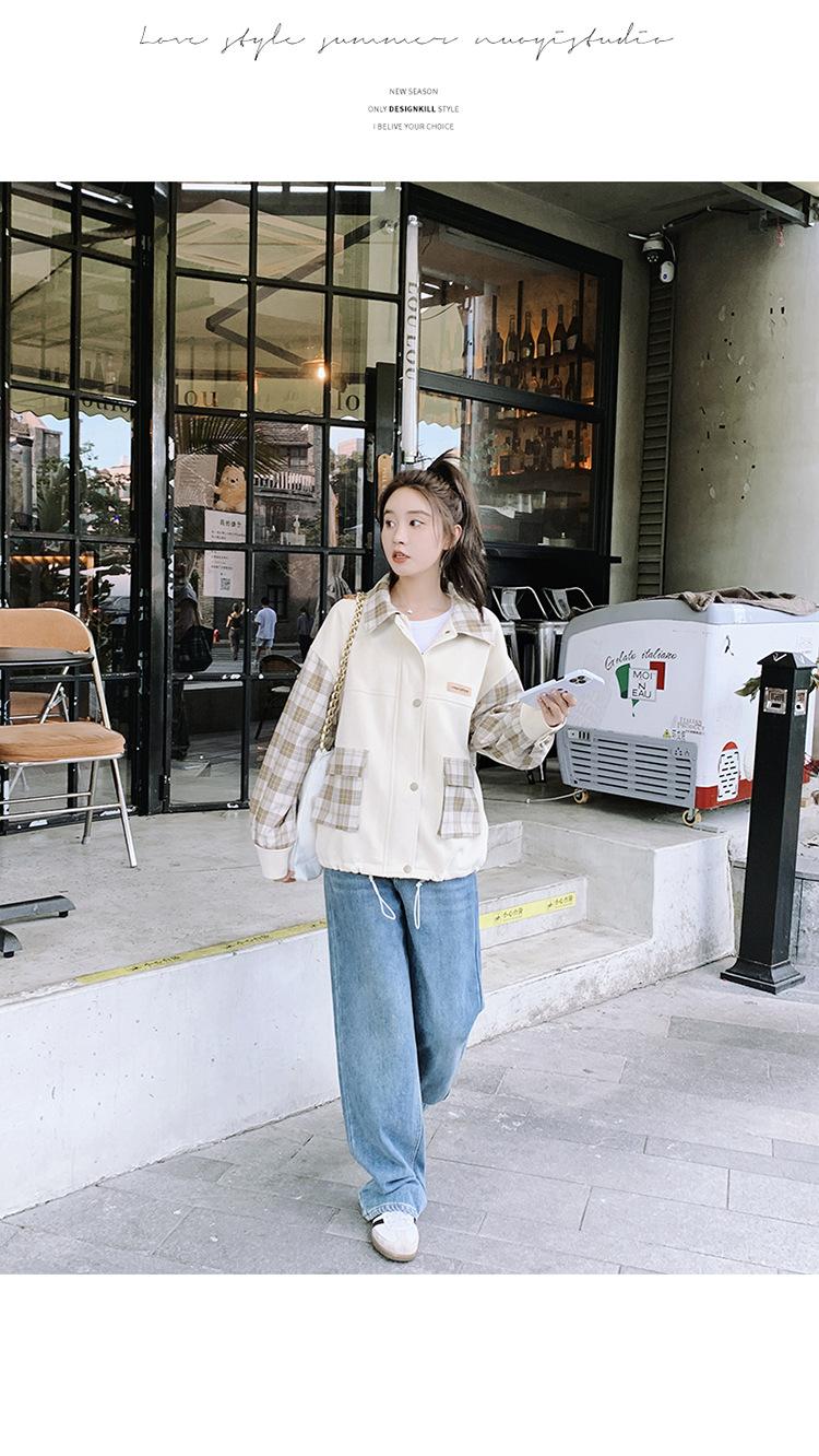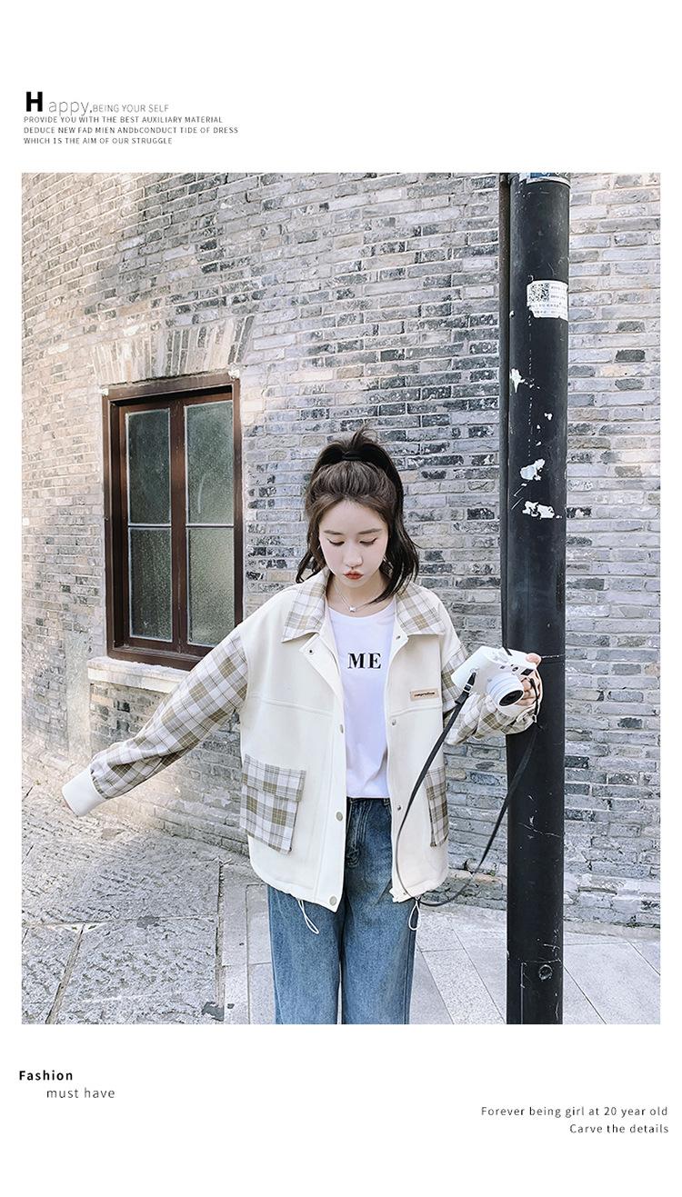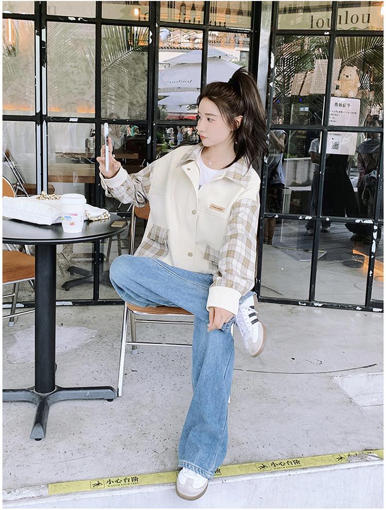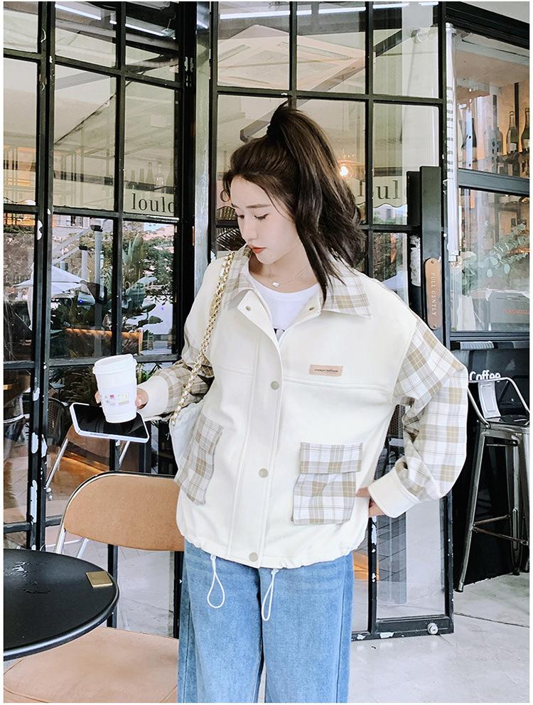 Novedades Primavera y Otoño 2025 Reductor de Edad Versátil Cómodo y Respetuoso con la Piel Mejora de la Calidad Chaqueta Corta de Retazos a Cuadros Tendencia