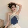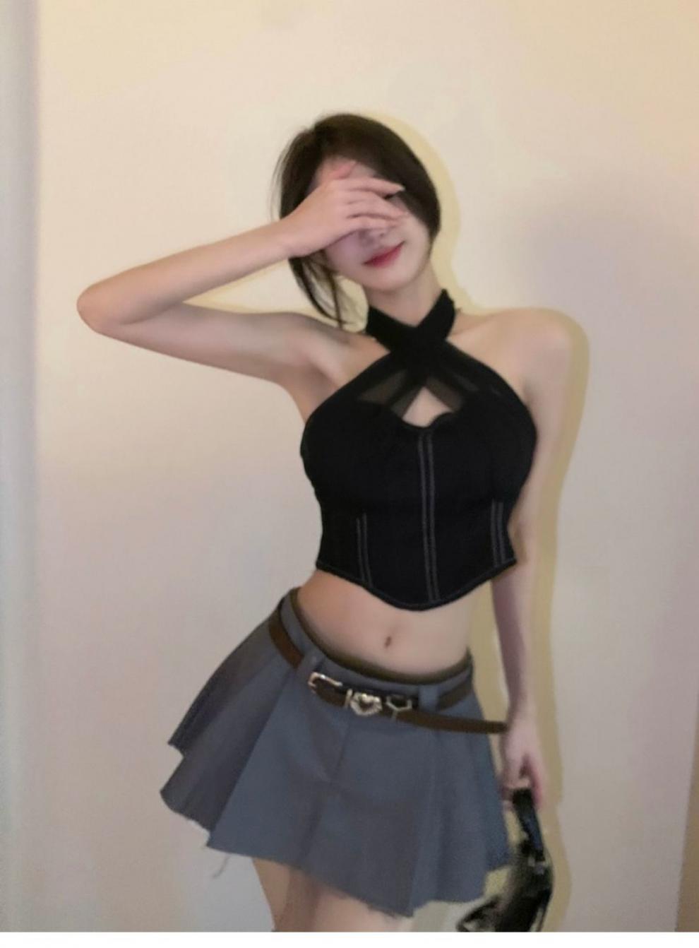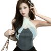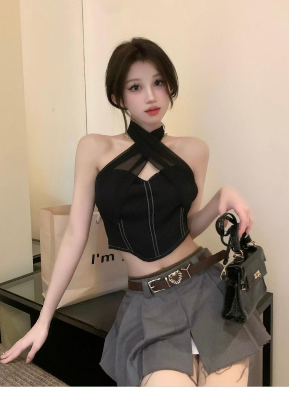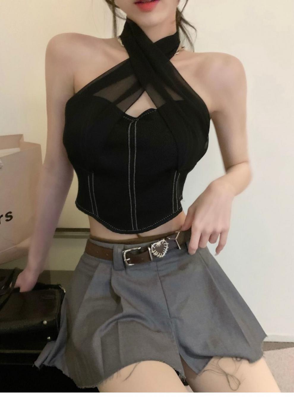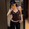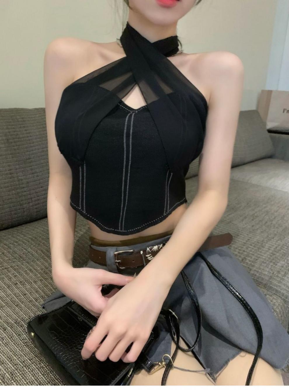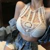 Camisola halter de malla estilo occidental para mujer, verano, deseo puro, dulce, sexy, top corto de tubo