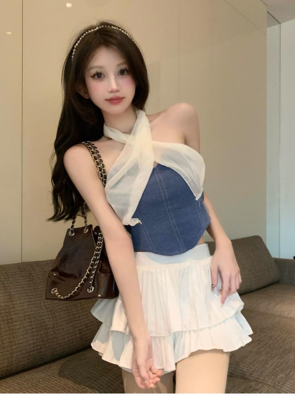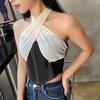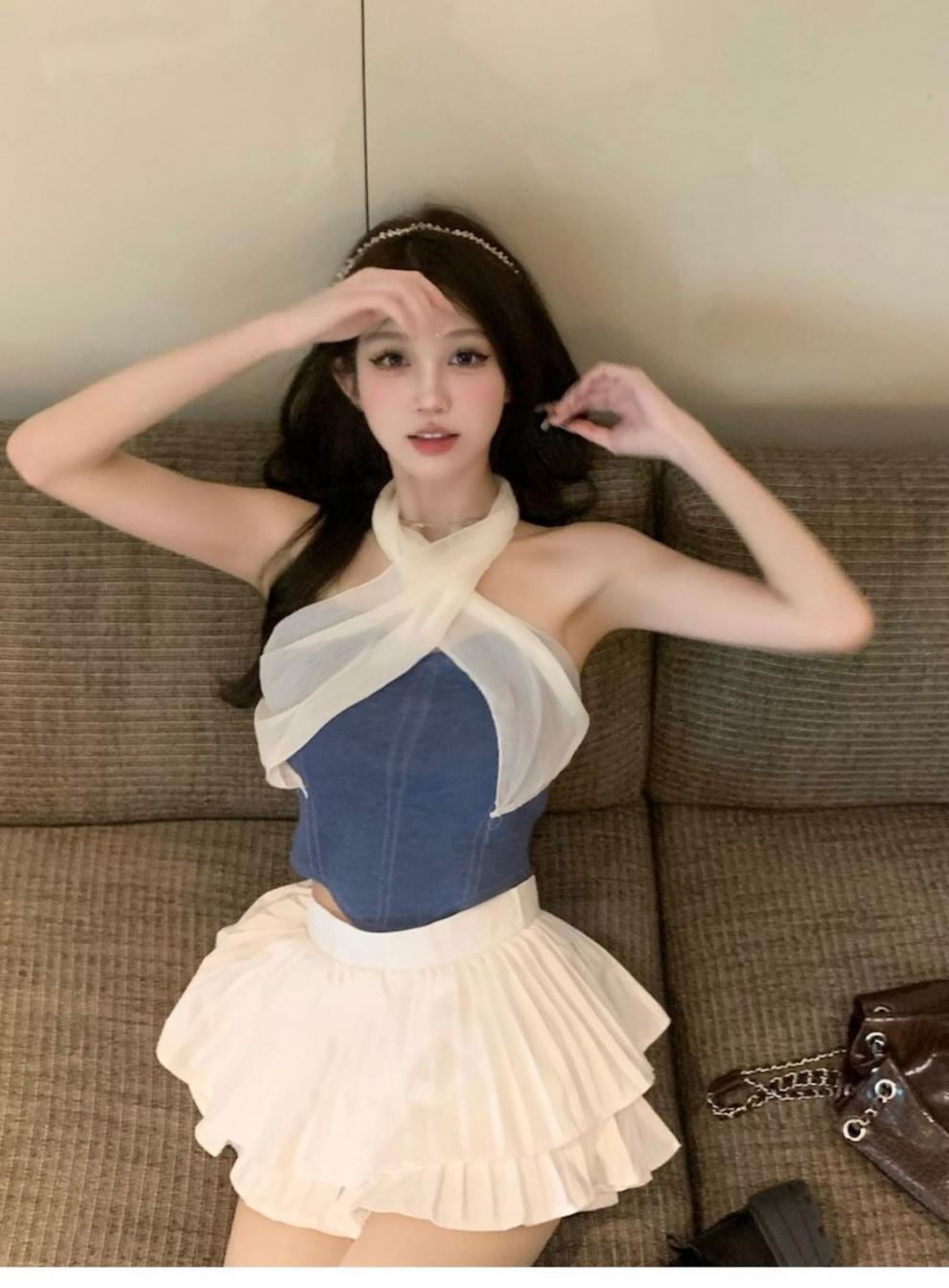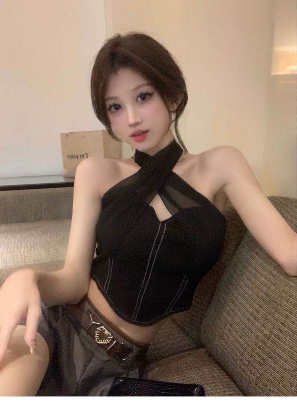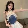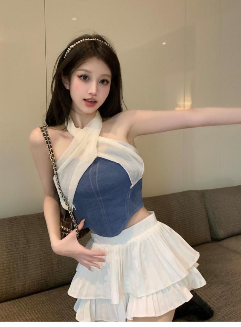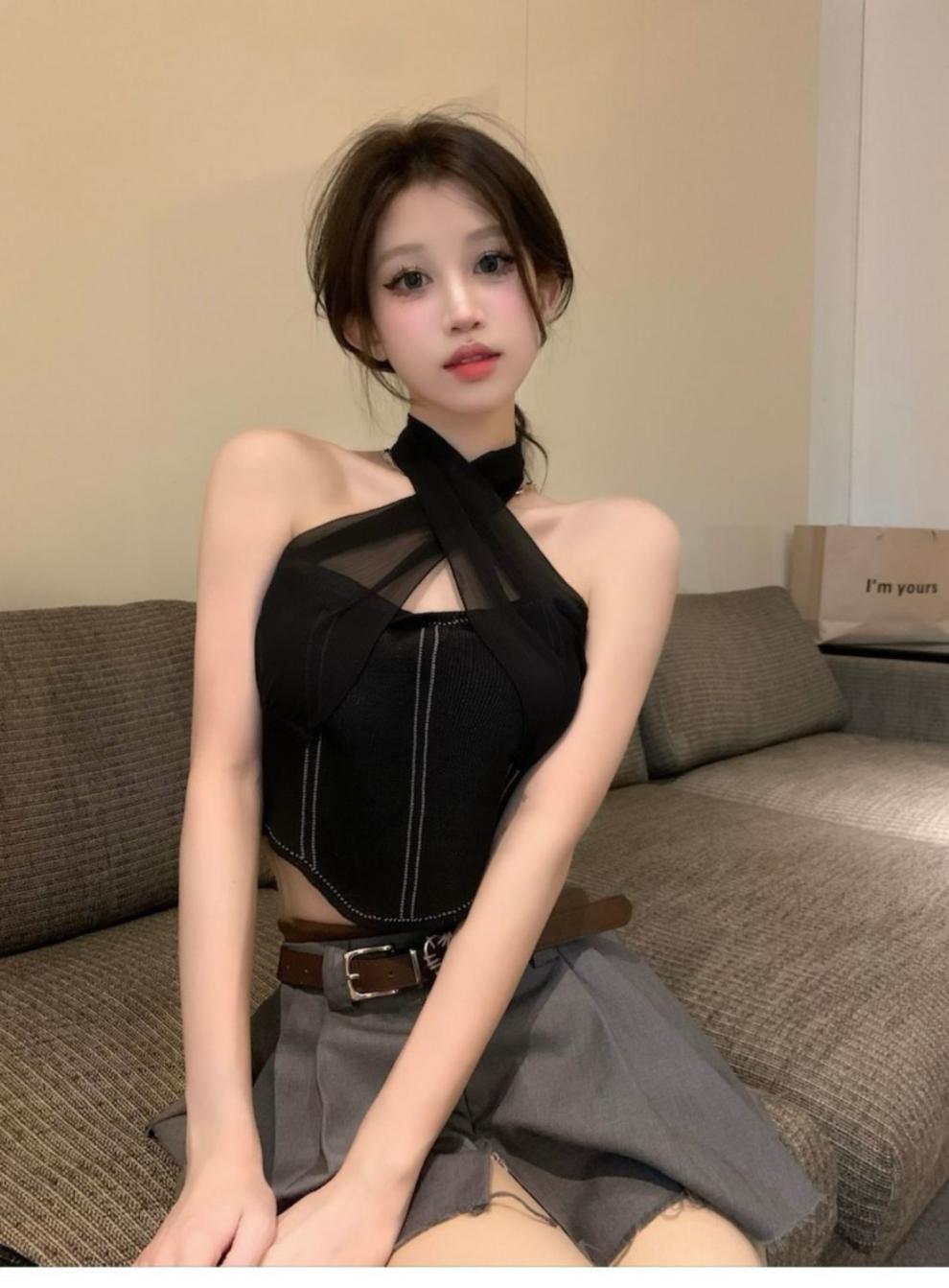 Camisola halter de malla estilo occidental para mujer, verano, deseo puro, dulce, sexy, top corto de tubo