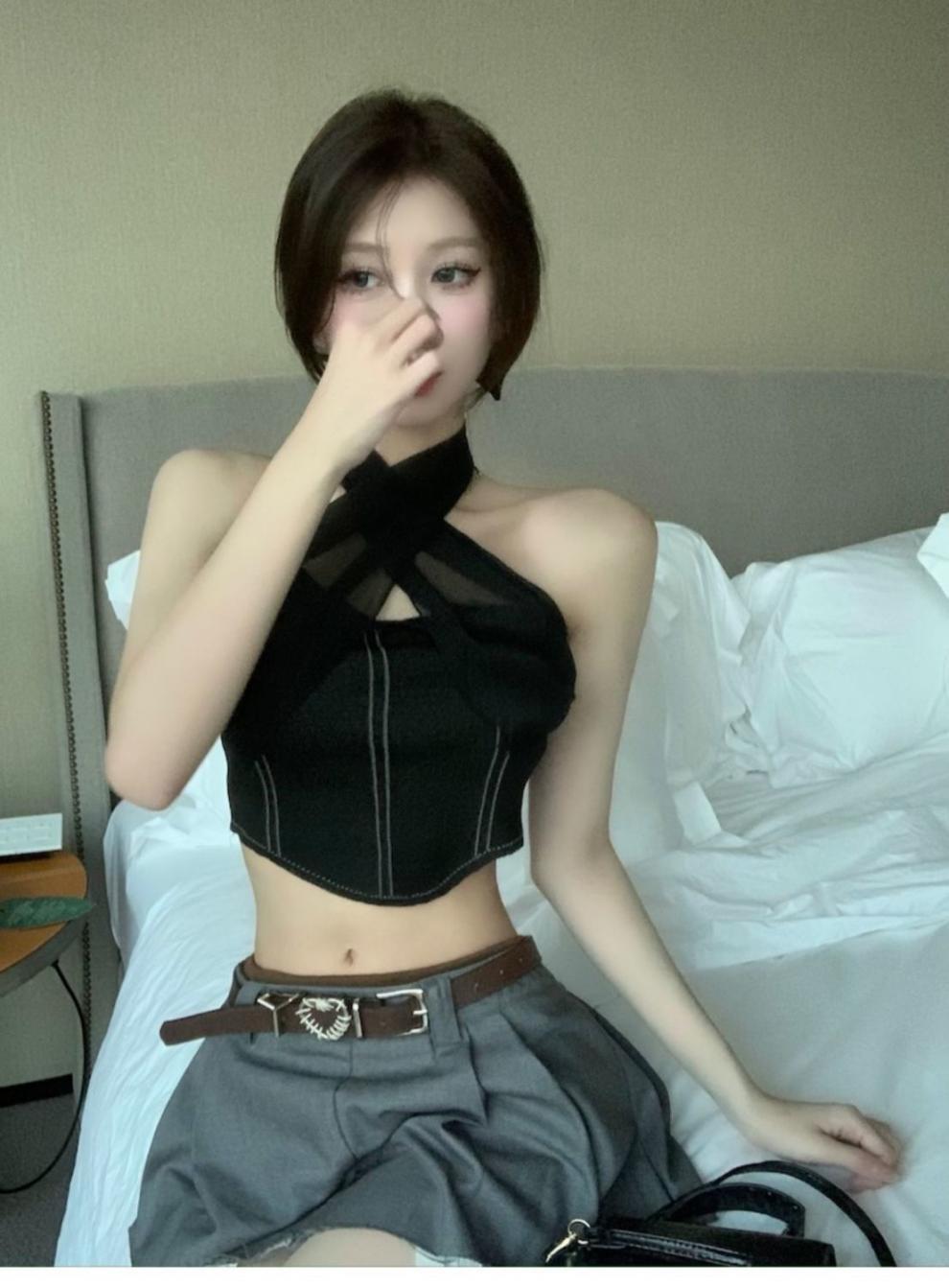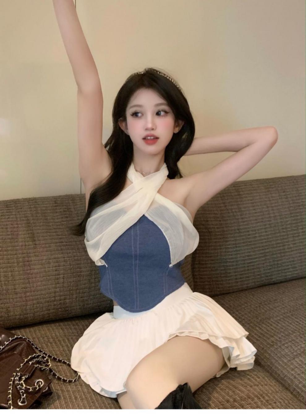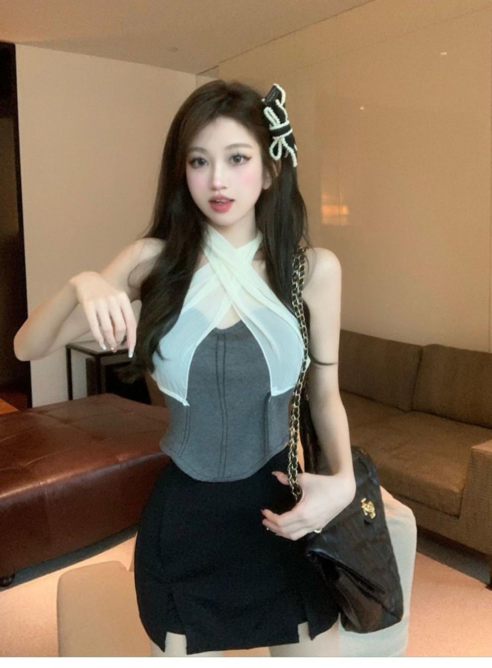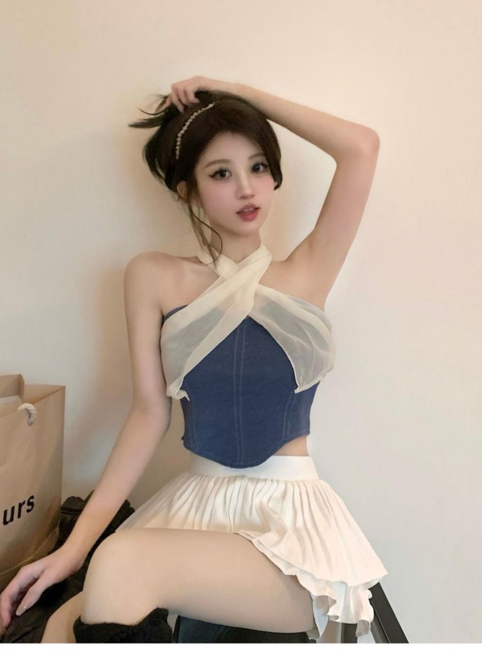 Camisola halter de malla estilo occidental para mujer, verano, deseo puro, dulce, sexy, top corto de tubo