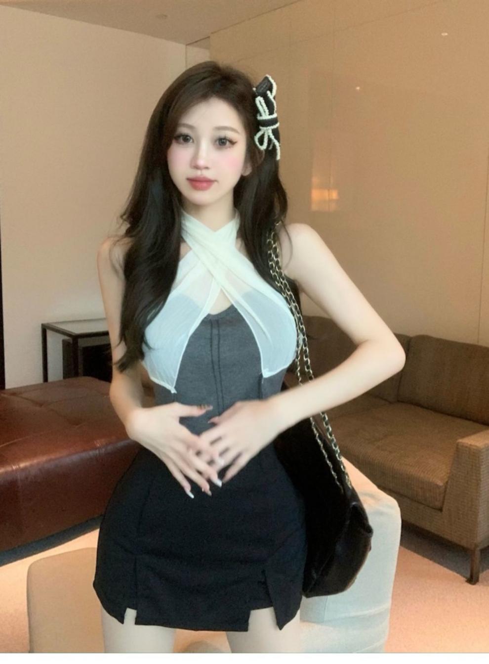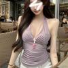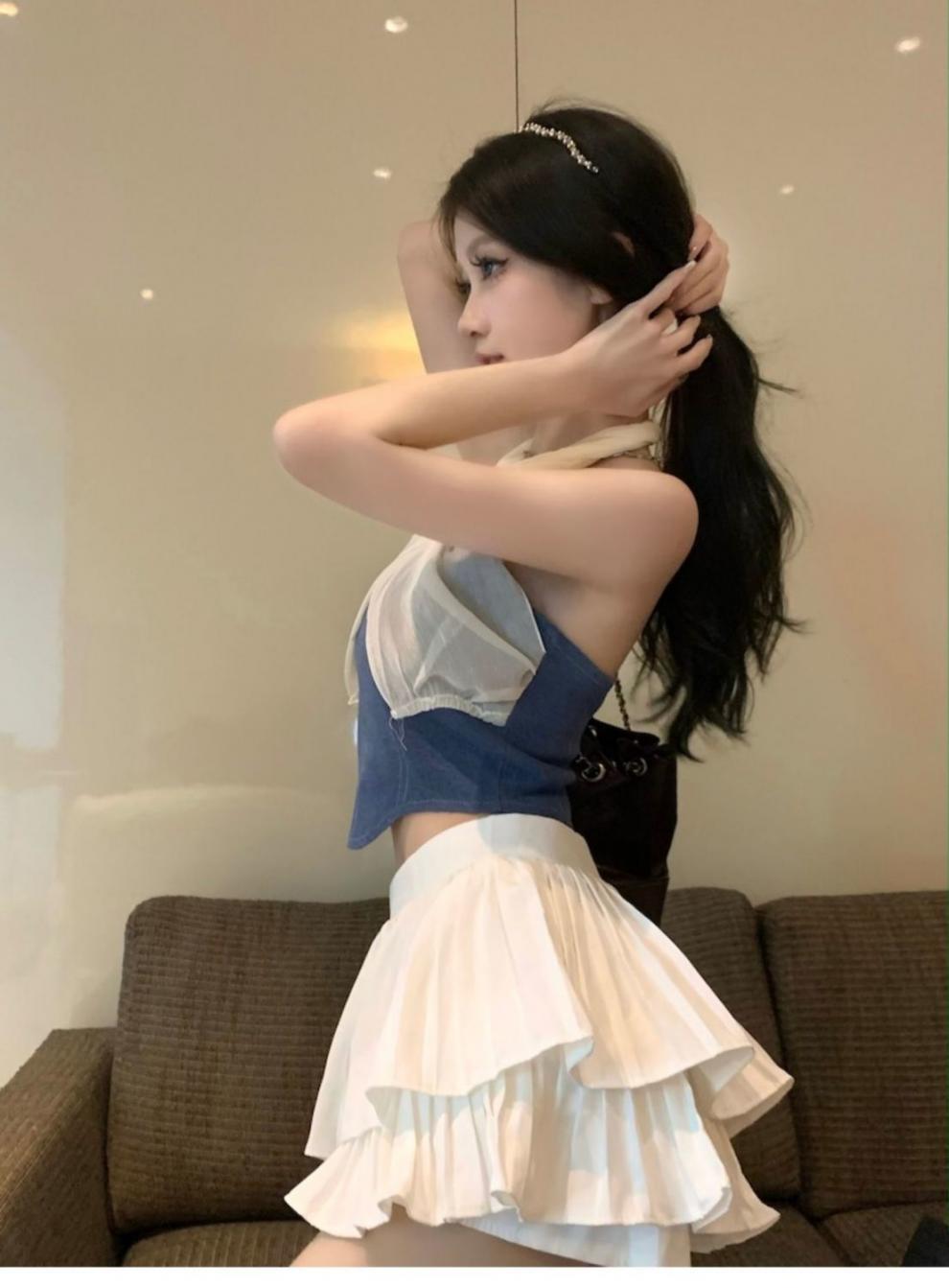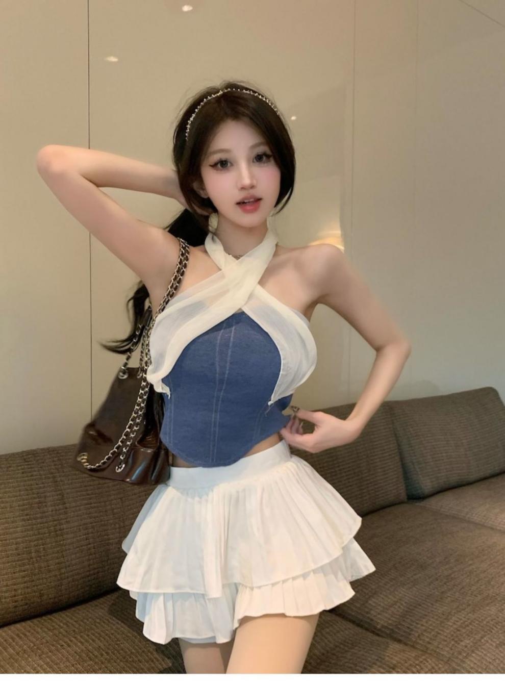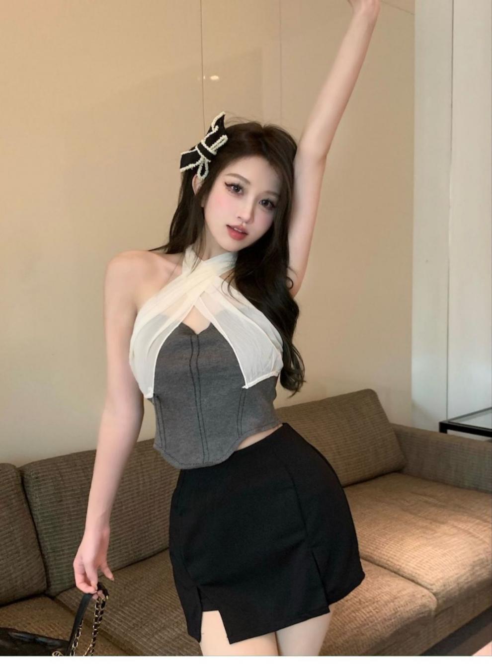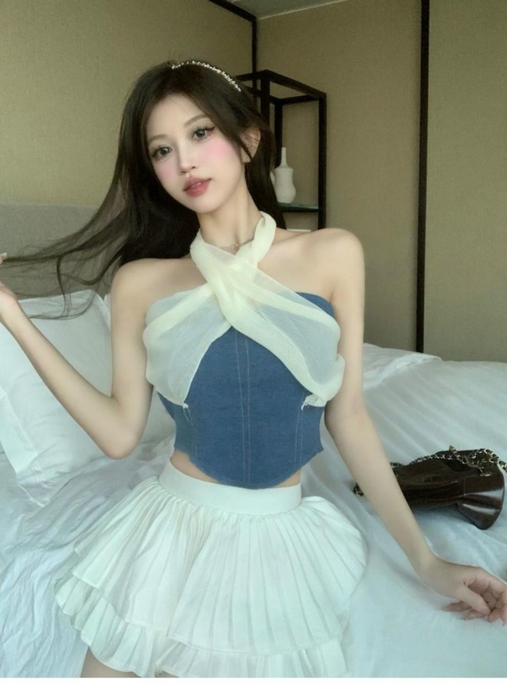 Camisola halter de malla estilo occidental para mujer, verano, deseo puro, dulce, sexy, top corto de tubo