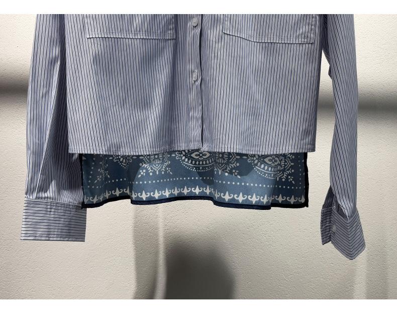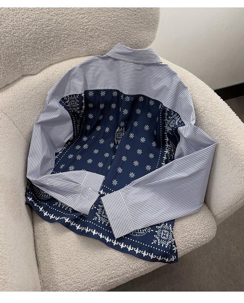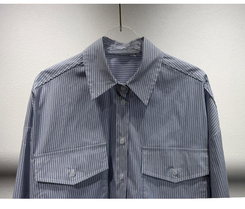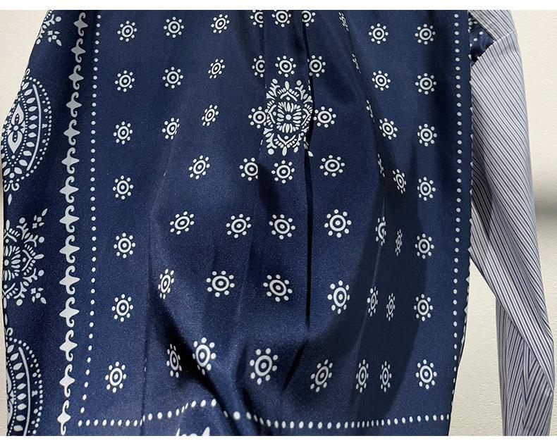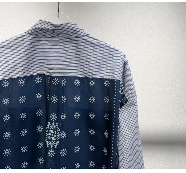 2025 Otoño Nuevo Nicho Rayado Cuello Vuelto Empalmado Camisa Manga Larga Suelta Versátil Moderna Top Mujer