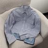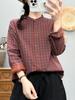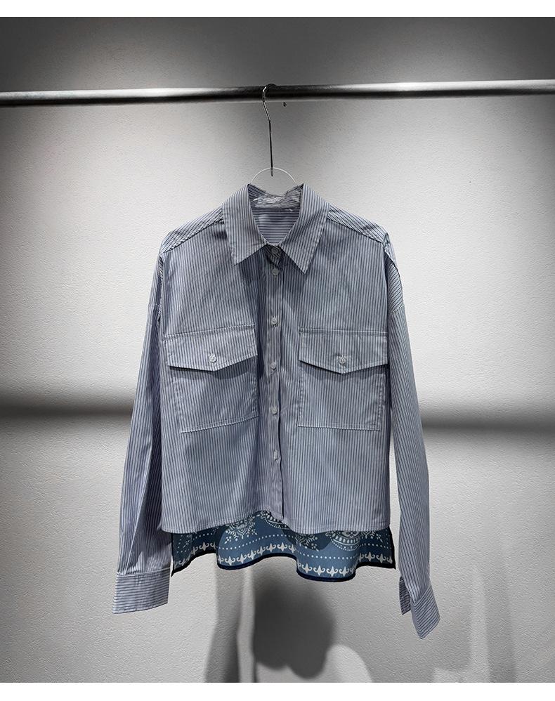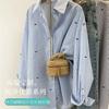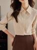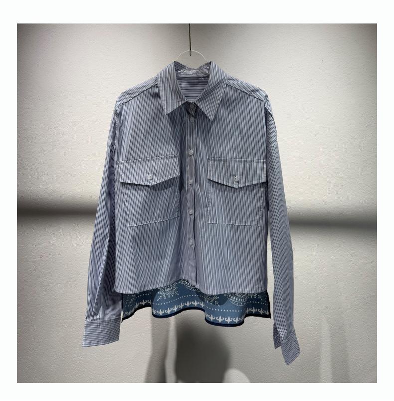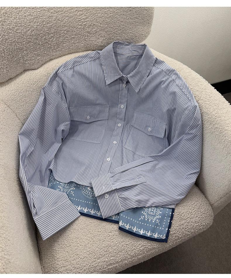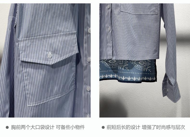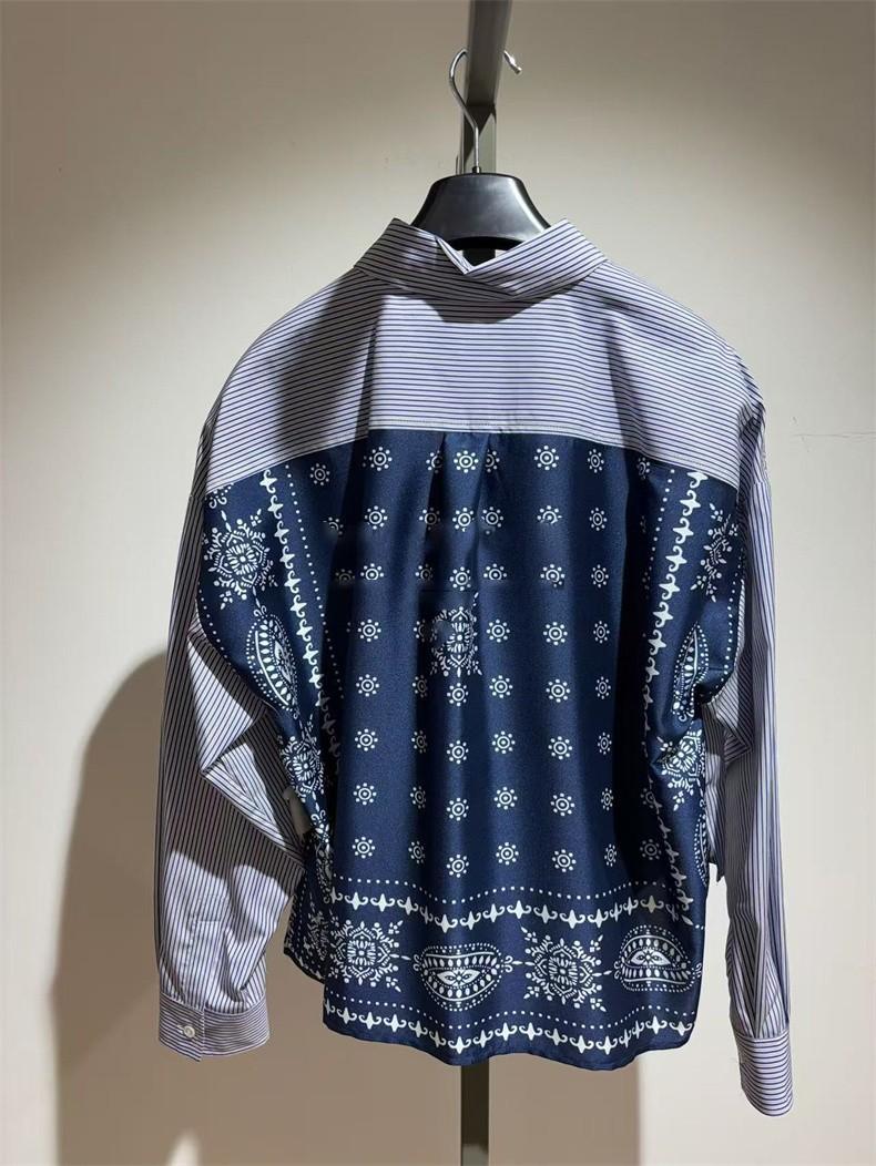 2025 Otoño Nuevo Nicho Rayado Cuello Vuelto Empalmado Camisa Manga Larga Suelta Versátil Moderna Top Mujer
